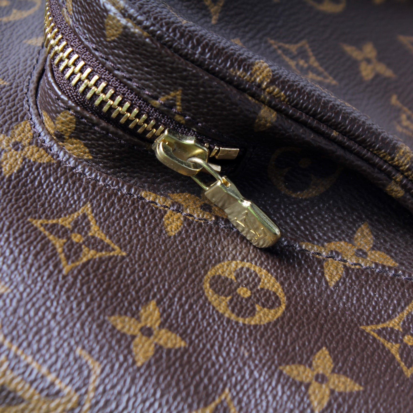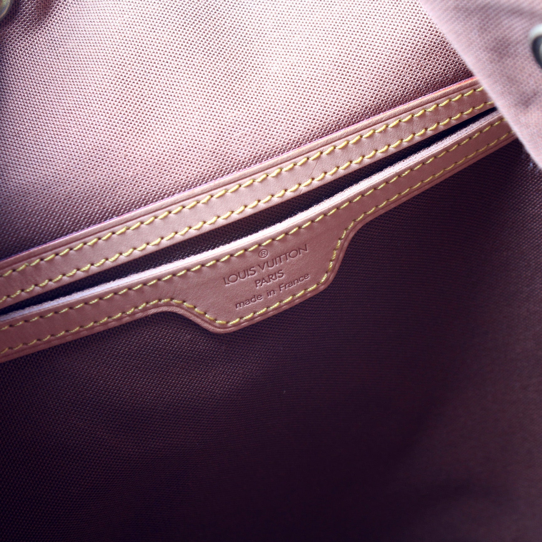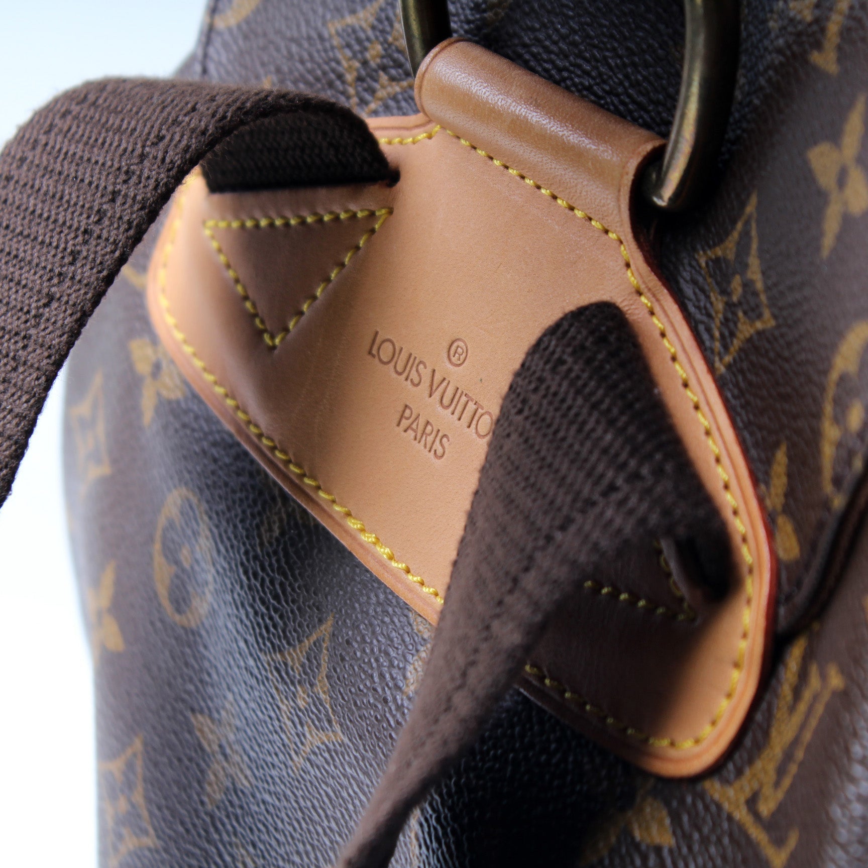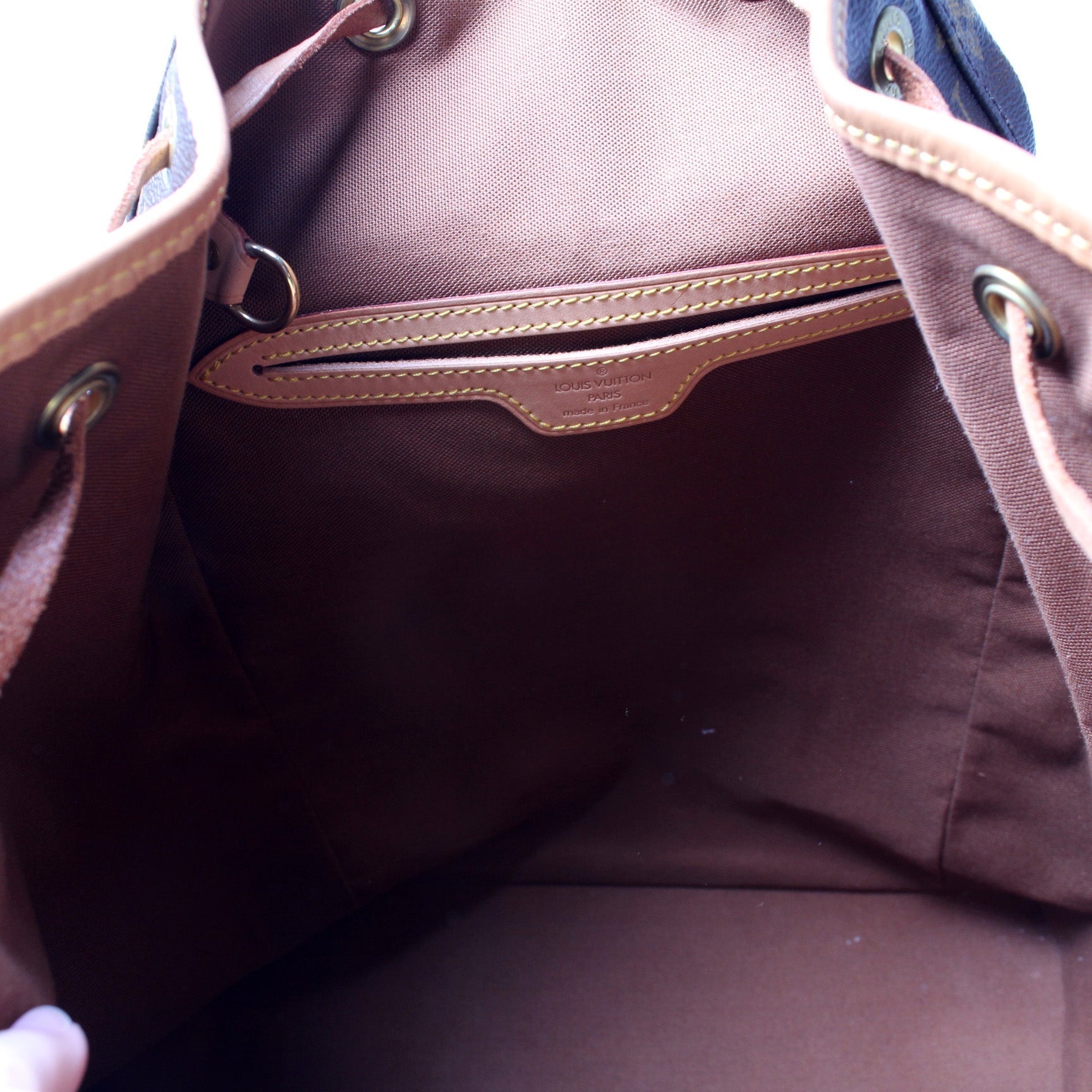 This Louis Vuitton Montsouris GM is guaranteed 100% . The exterior is in the classic Louis Vuitton Monogram coated canvas.