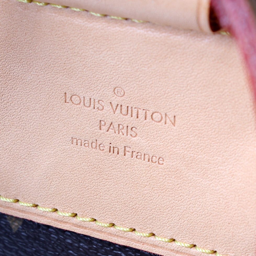 This Louis Vuitton Montsouris MM NM is guaranteed 100% . The exterior is in the classic Louis Vuitton Monogram coated canvas.