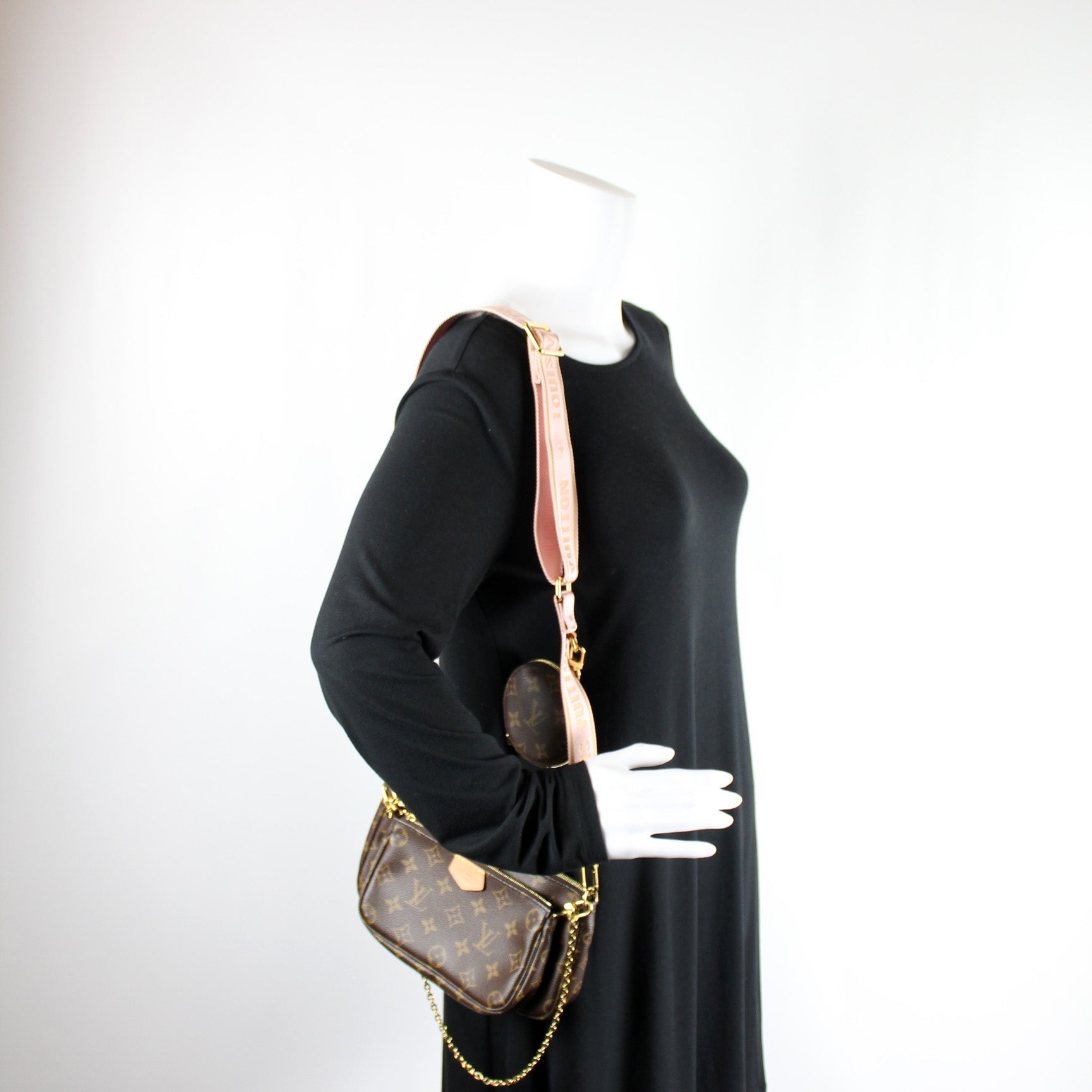 This Louis Vuitton Multi Pochette is guaranteed 100% . The exterior is in the classic Louis Vuitton Monogram coated canvas.