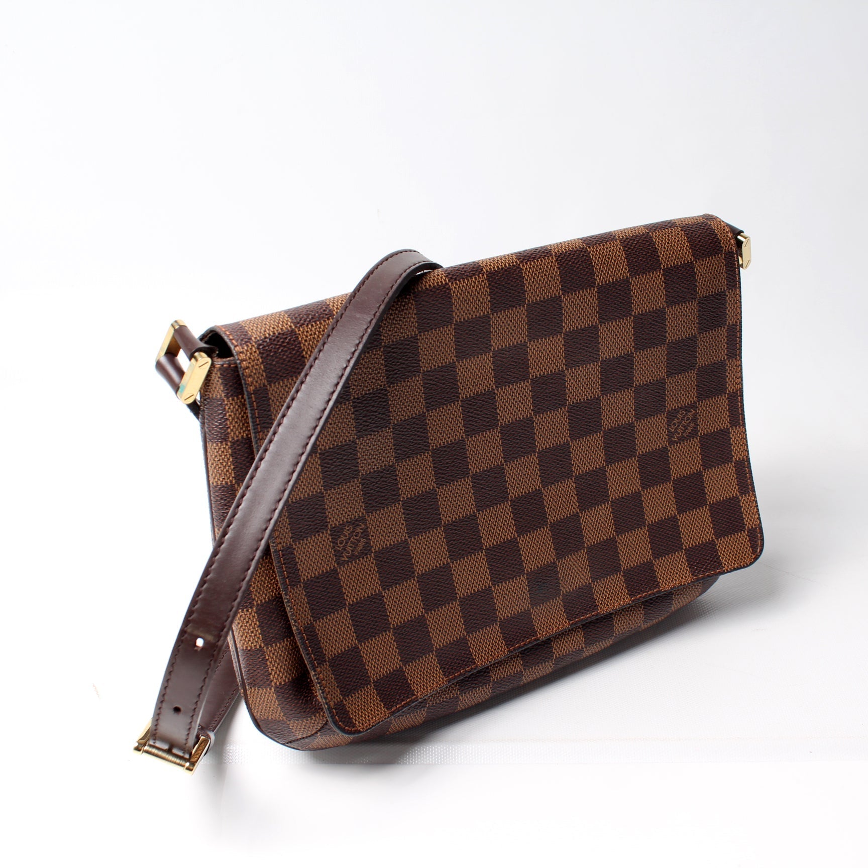 This Louis Vuitton Musette Tango Long is guaranteed 100% . The exterior is in the classic Louis Vuitton Damier Ebene coated canvas.