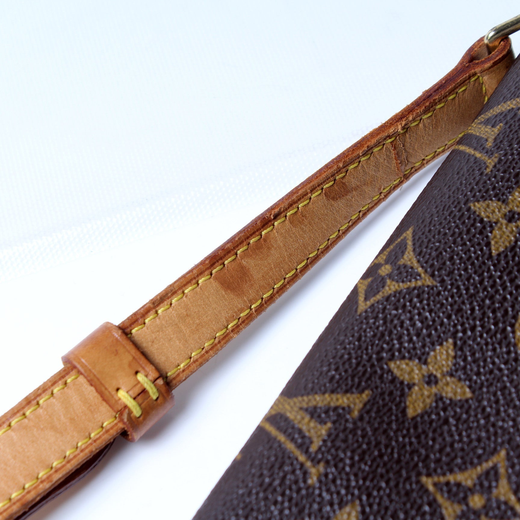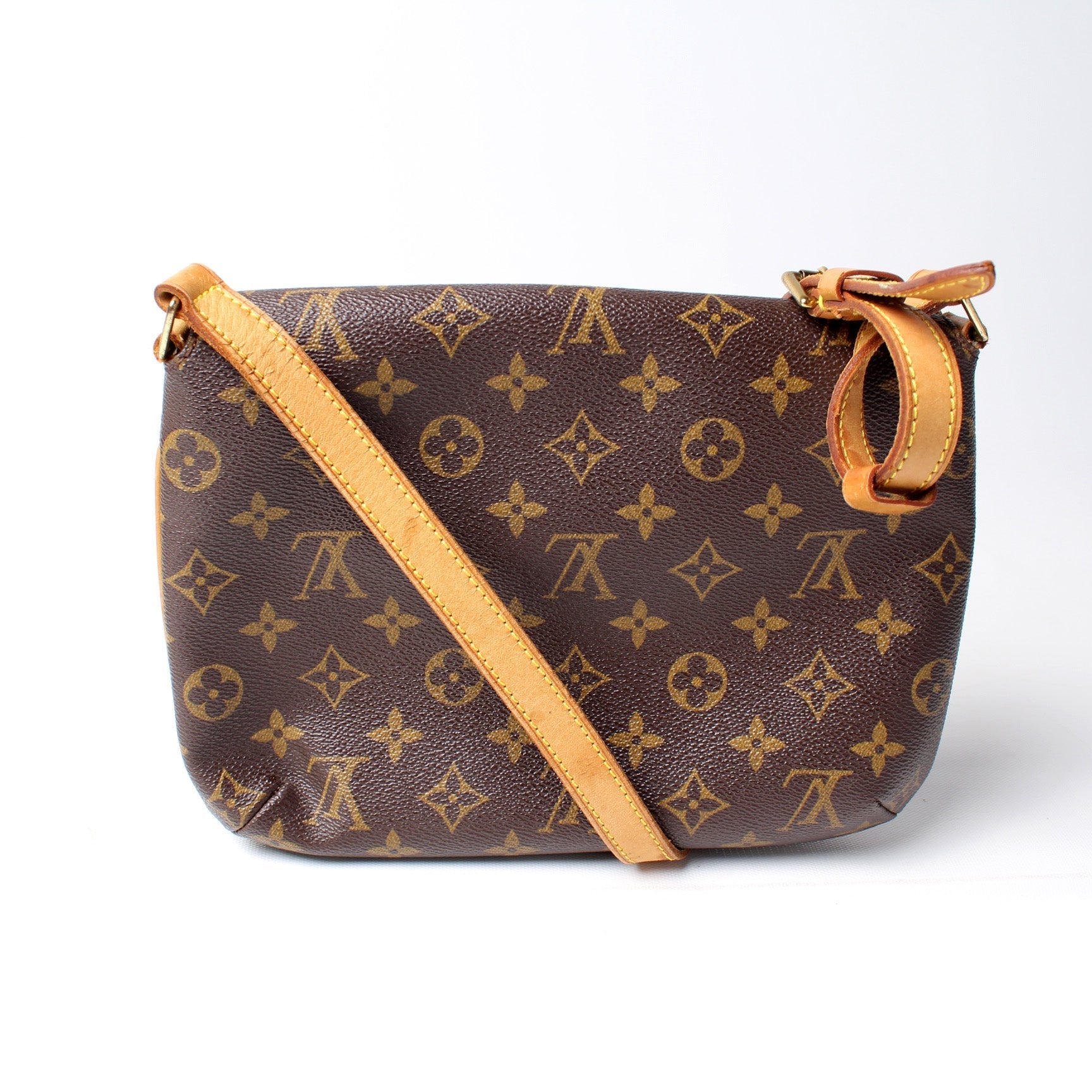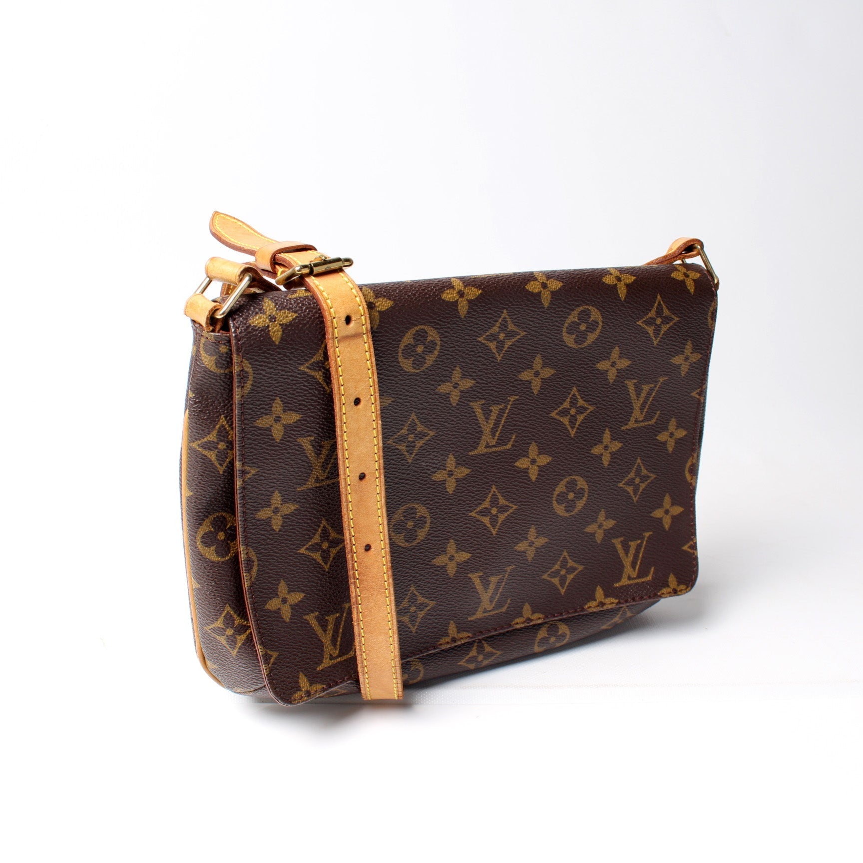 This Louis Vuitton Musette Tango Short is guaranteed 100% . The exterior is in the classic Louis Vuitton Monogram coated canvas.