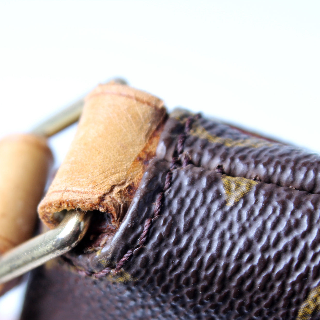 Exterior: The exterior coated canvas is free of any rips or cracks. The corners and leather details show minor wear.