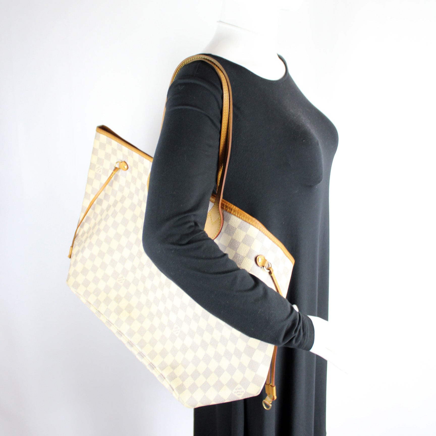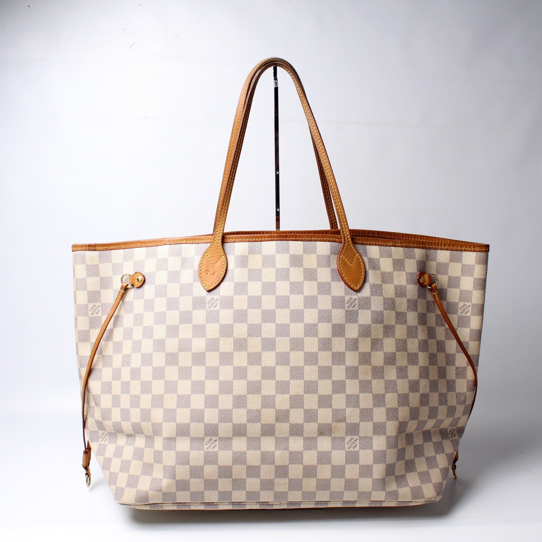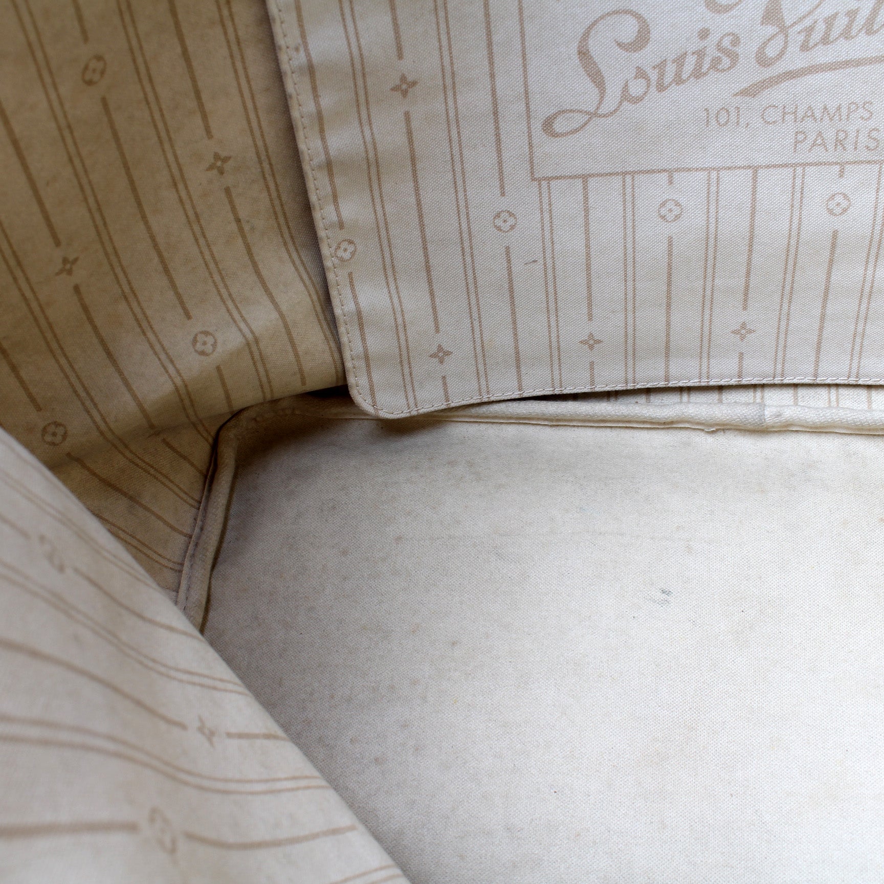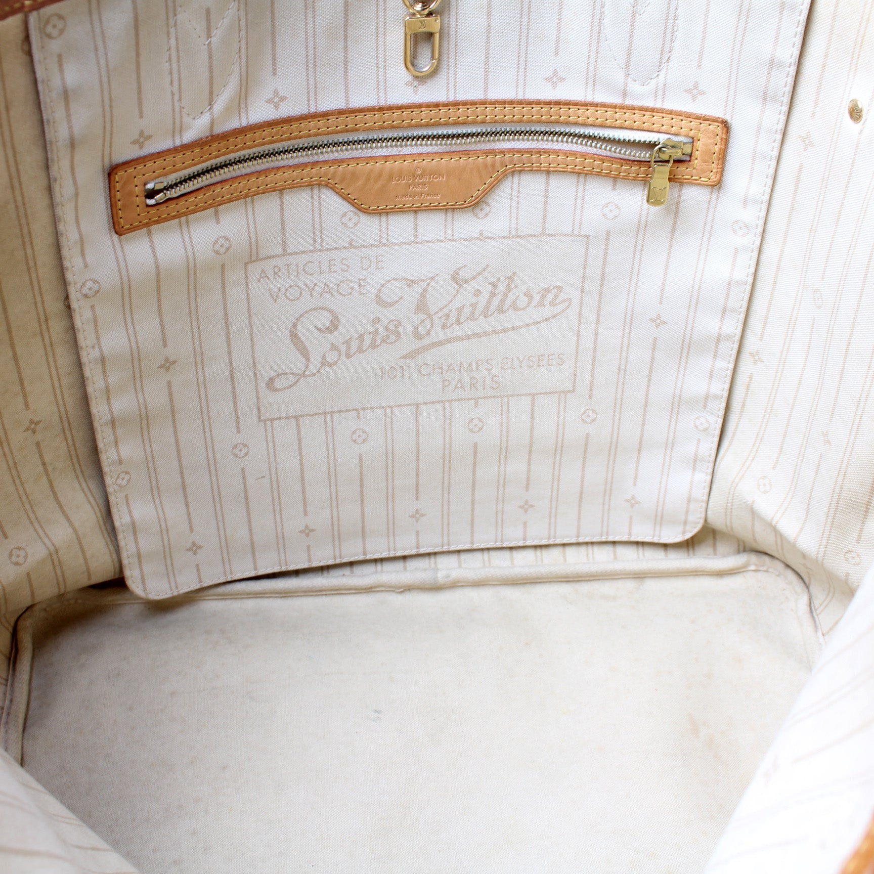 This Louis Vuitton Neverfull GM is guaranteed 100% . The exterior is in the classic Louis Vuitton Damier Azur coated canvas.