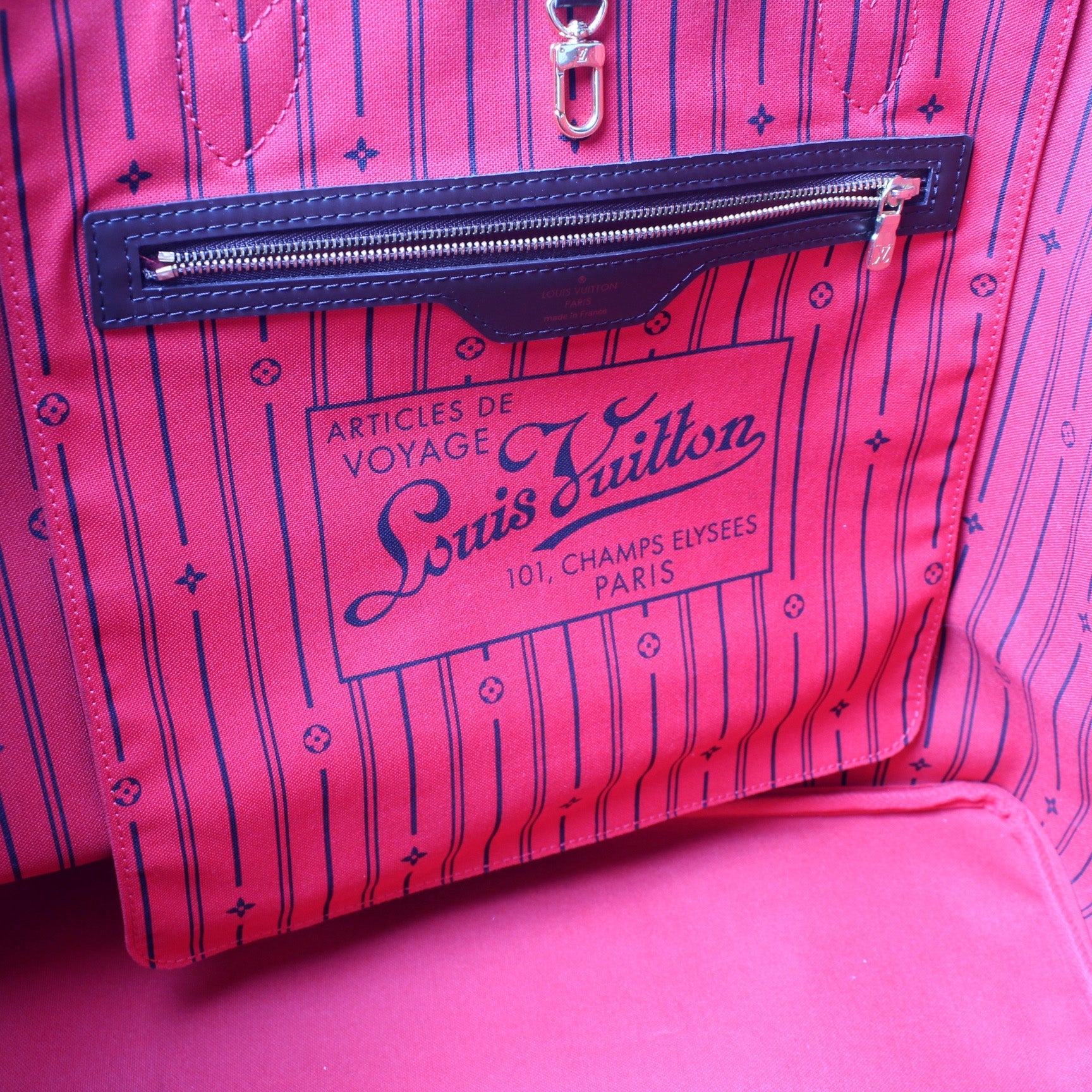 This Louis Vuitton Neverfull GM is guaranteed 100% . The exterior is in the classic Louis Vuitton Damier Ebene coated canvas.