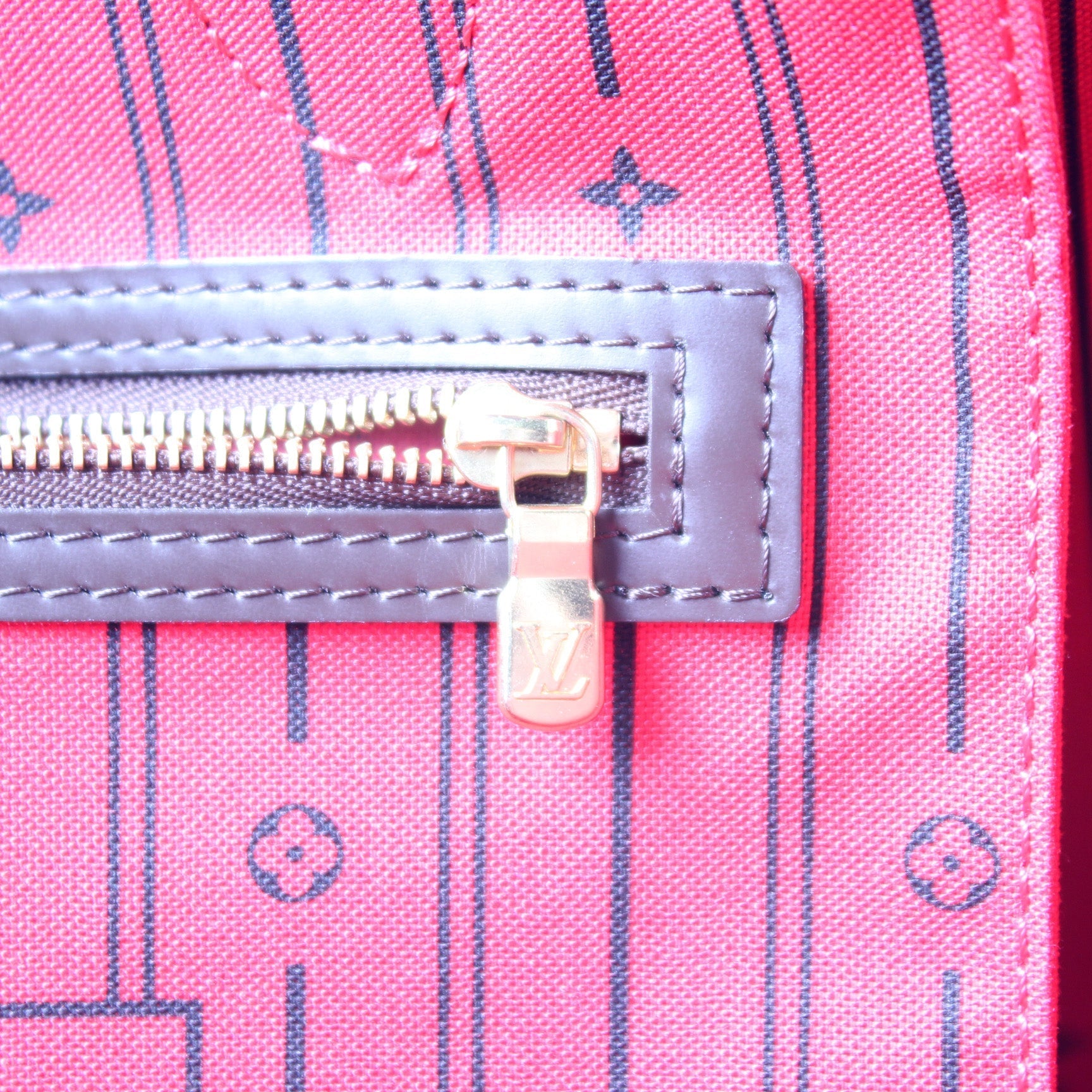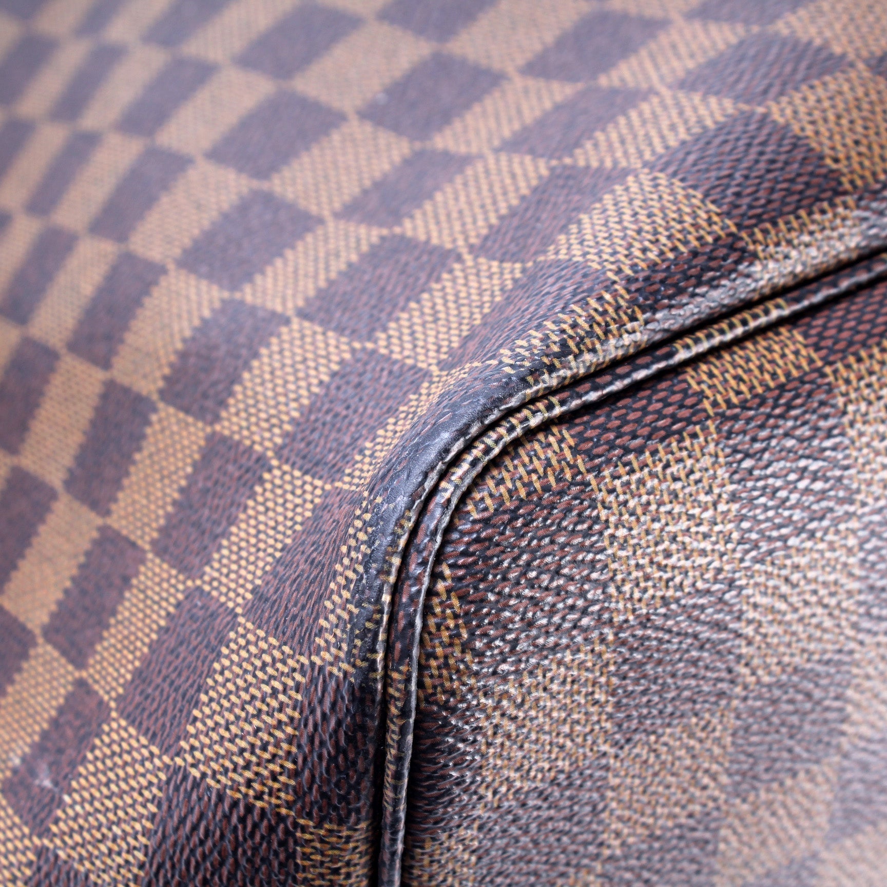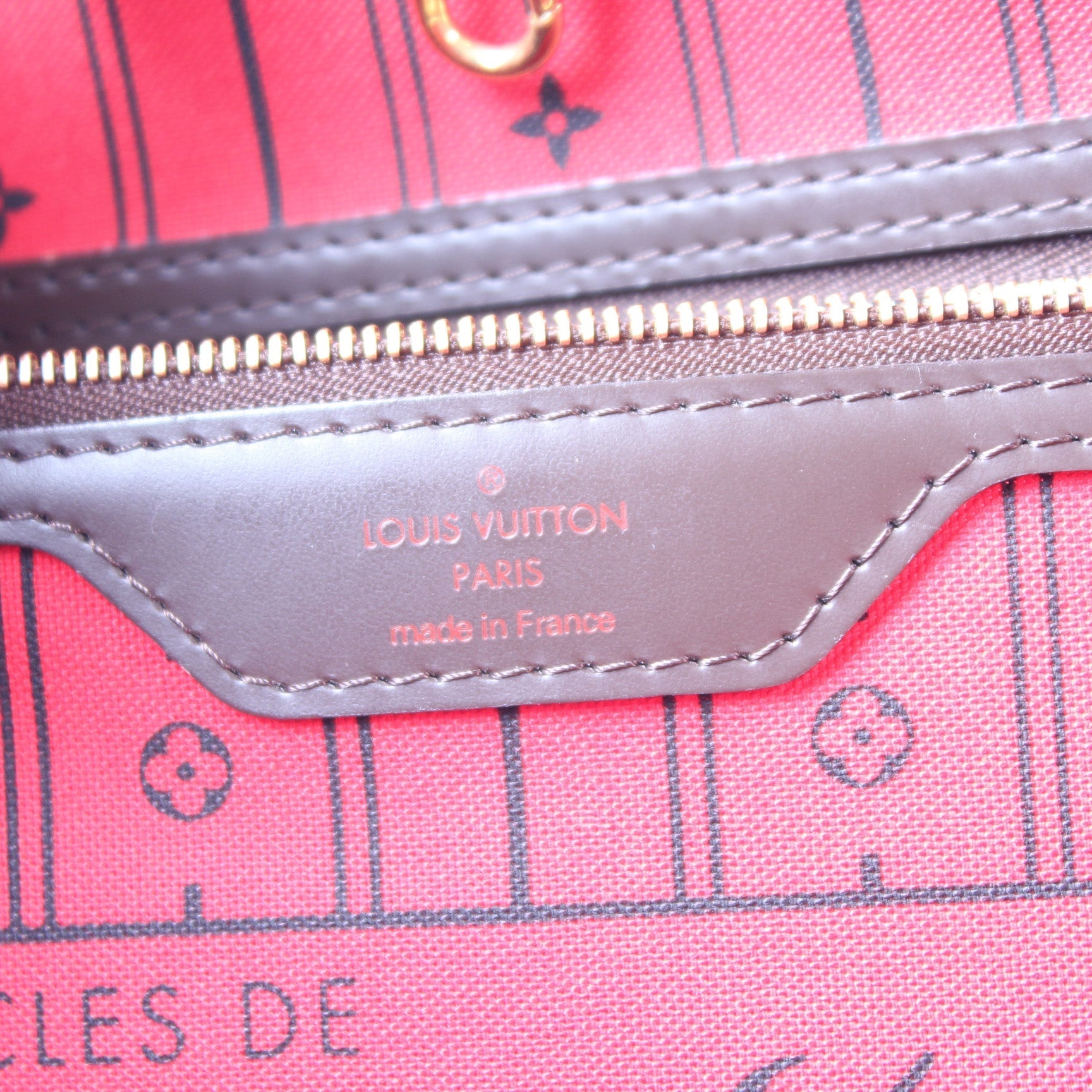 This Louis Vuitton Neverfull GM is guaranteed 100% . The exterior is in the classic Louis Vuitton Damier Ebene coated canvas.