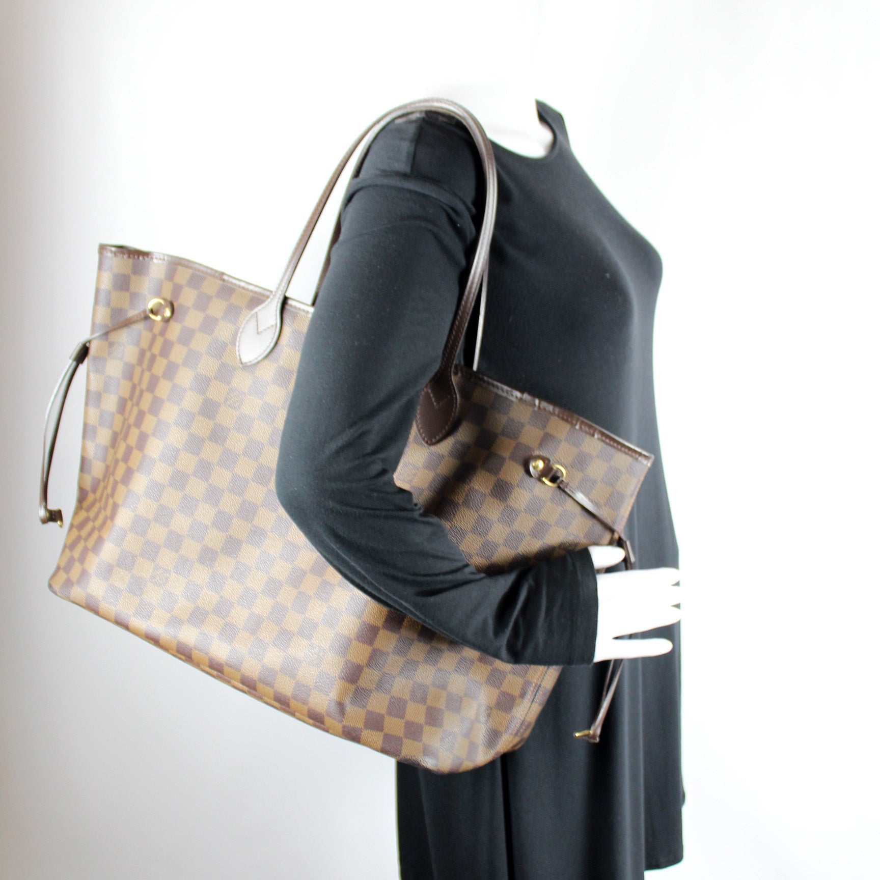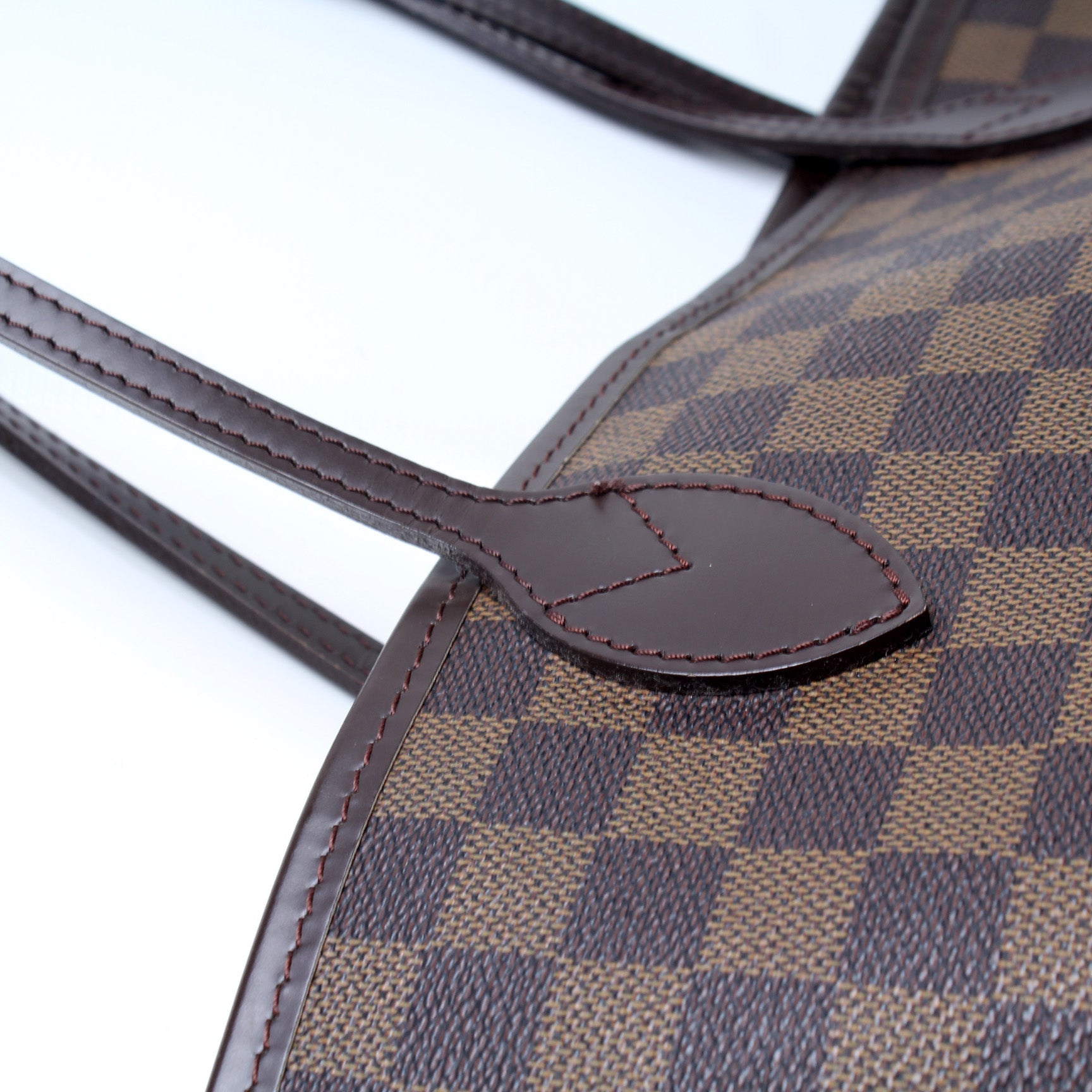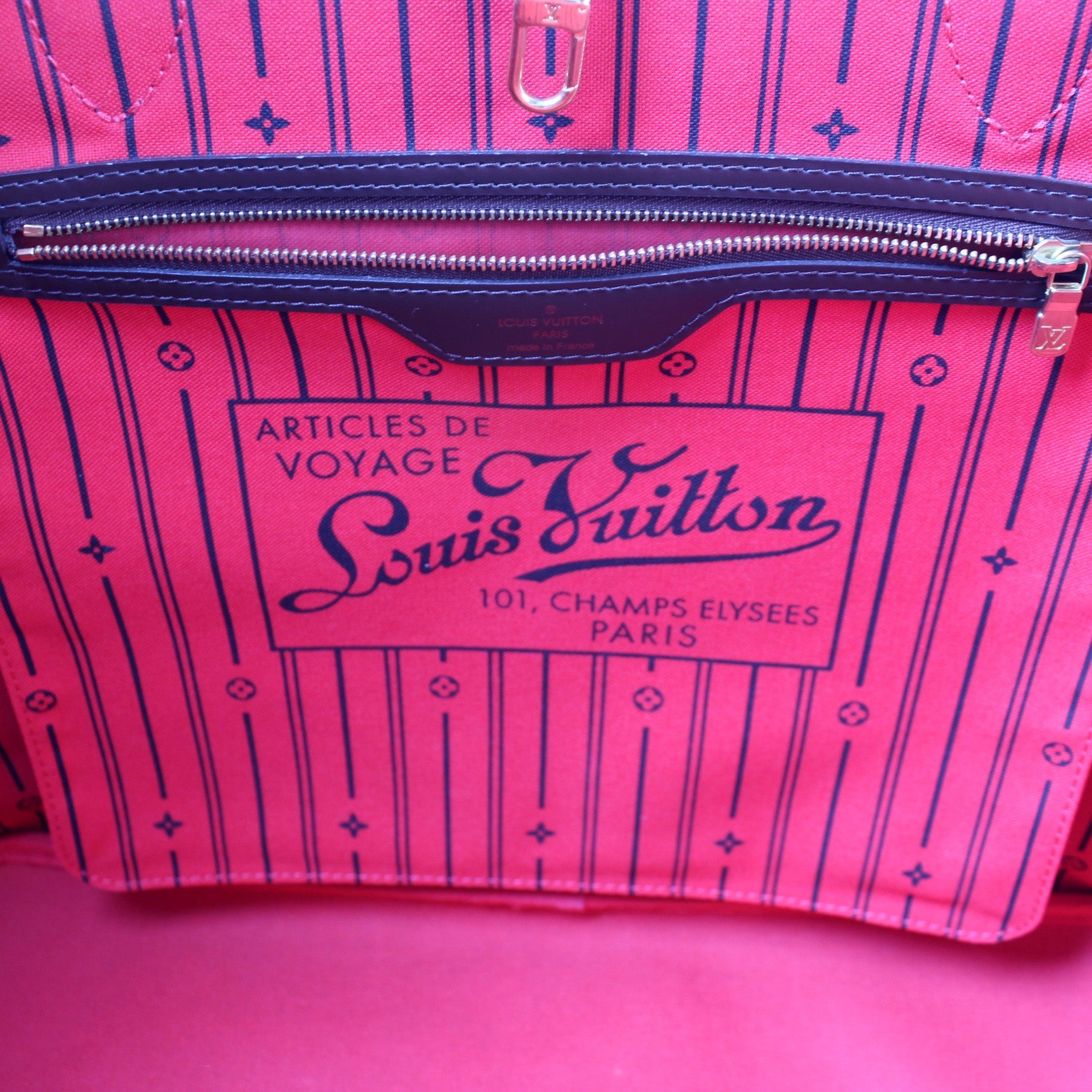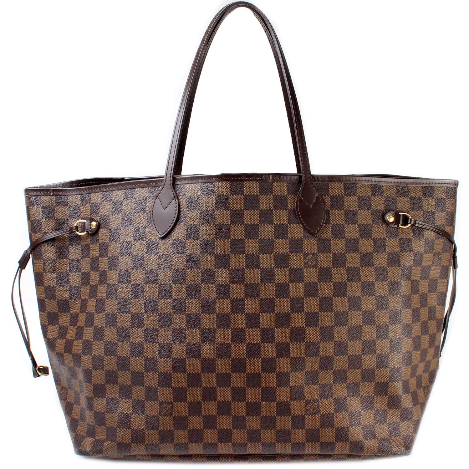 This Louis Vuitton Neverfull GM is guaranteed 100% . The exterior is in the classic Louis Vuitton Damier Ebene coated canvas.