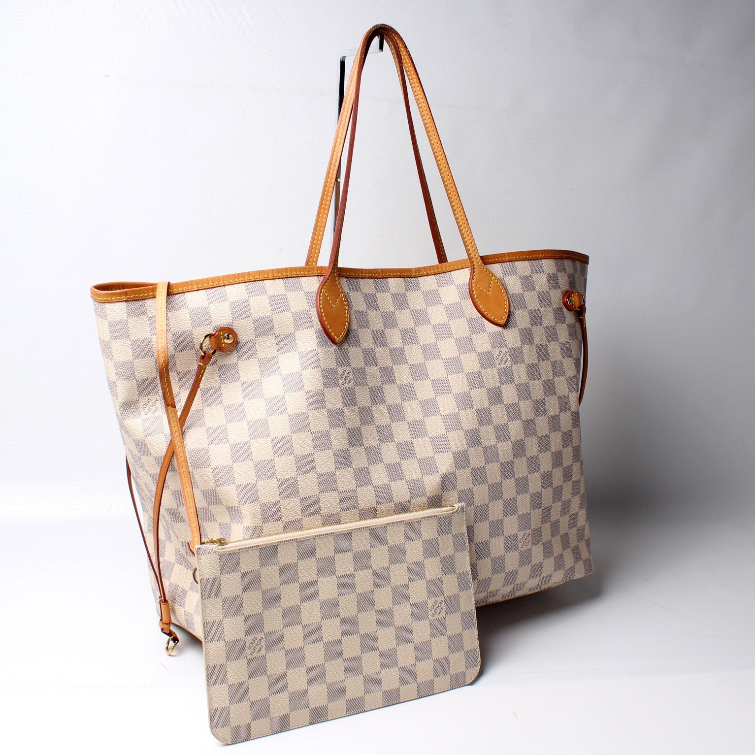 This Louis Vuitton Neverfull GM is guaranteed 100% . The exterior is in the classic Louis Vuitton Damier Azur coated canvas.