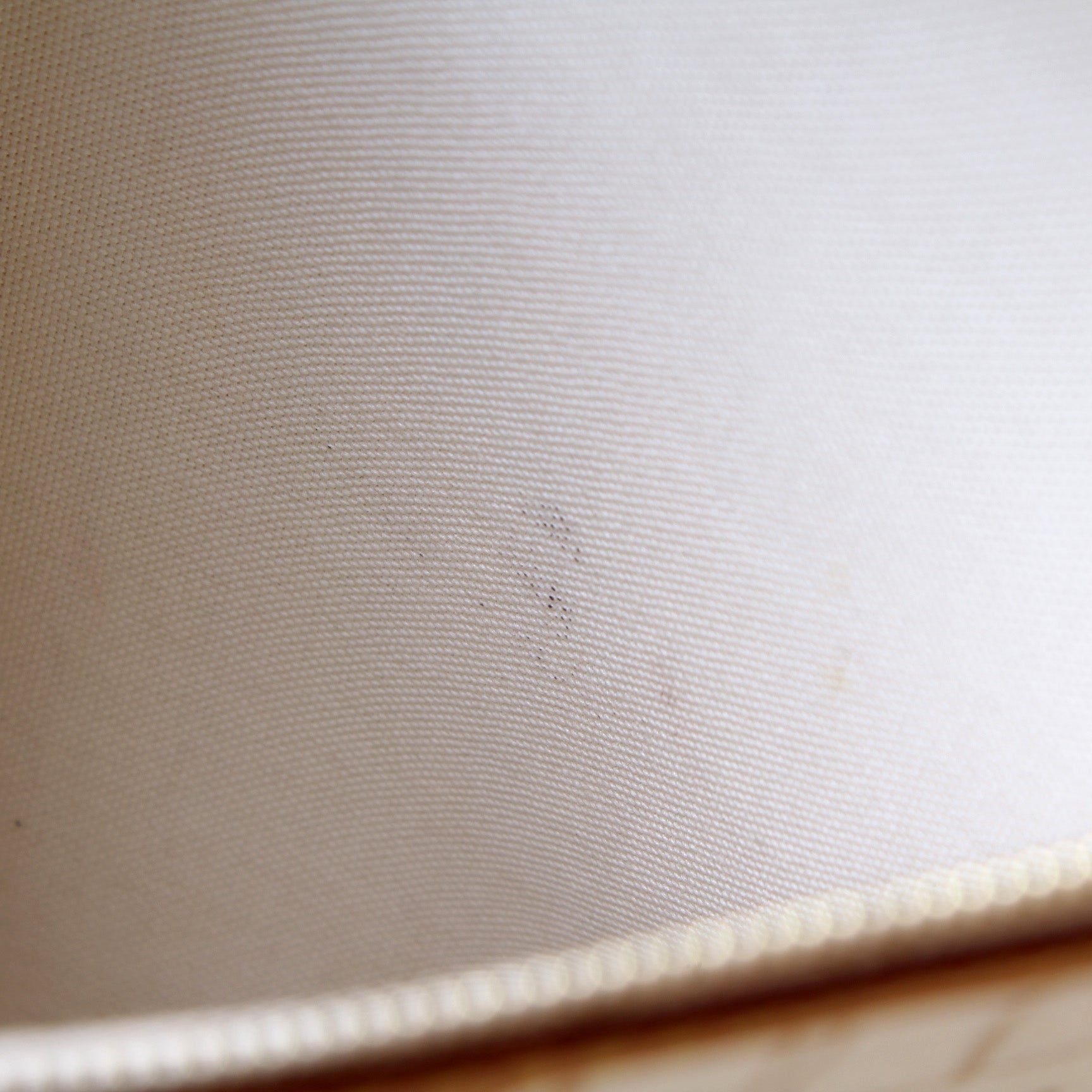 Interior: The interior is free of rips or tears. The interior features one zip closure pocket and detachable pochette. The interior fabric has discoloration.