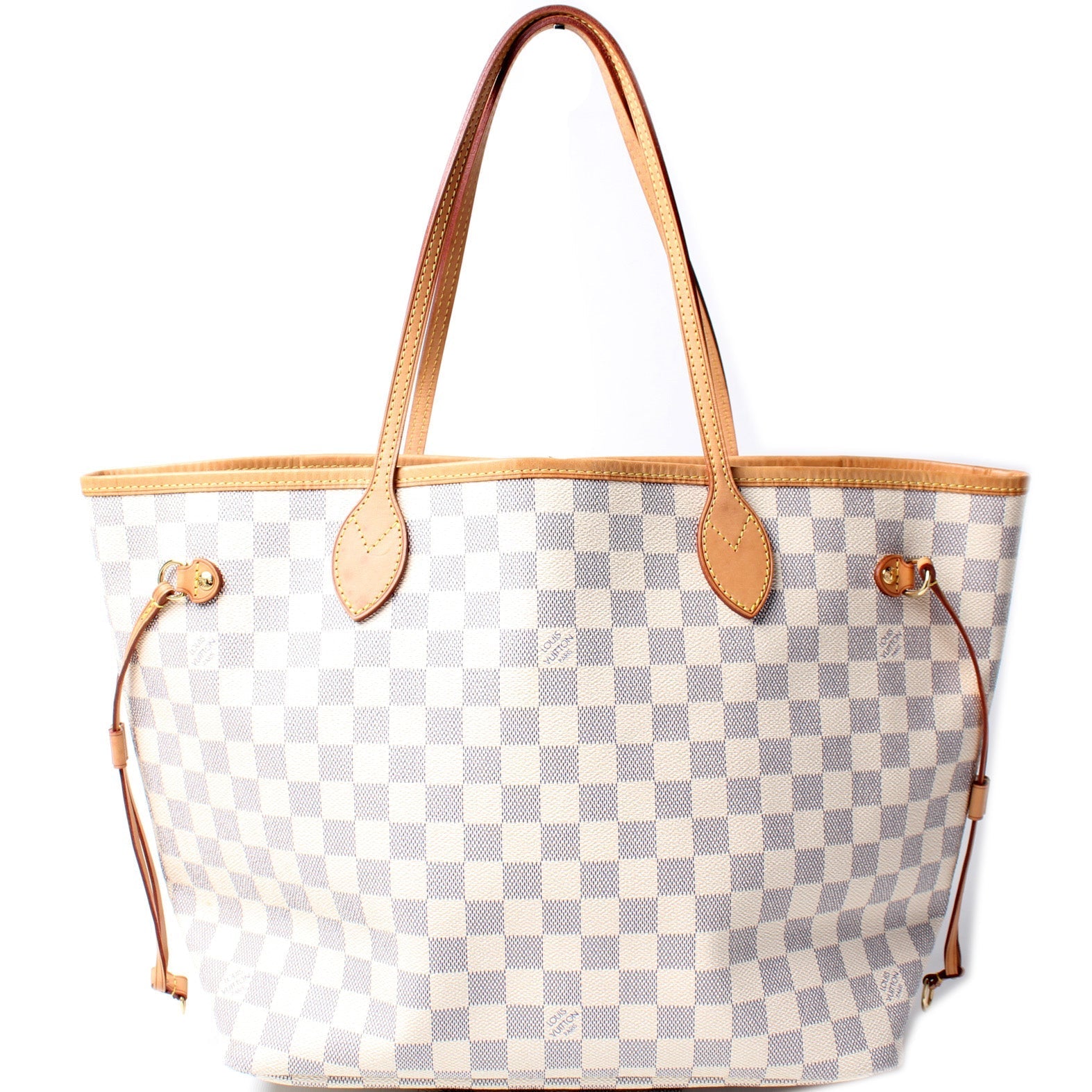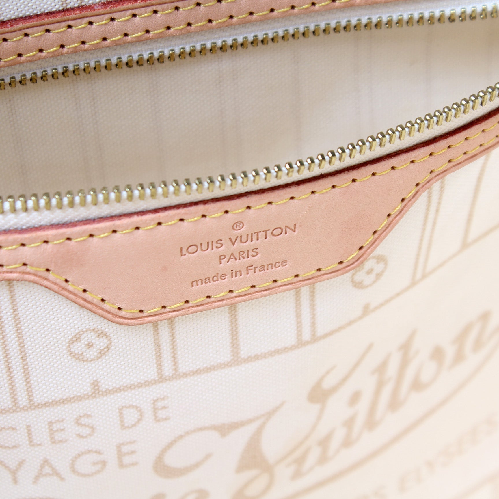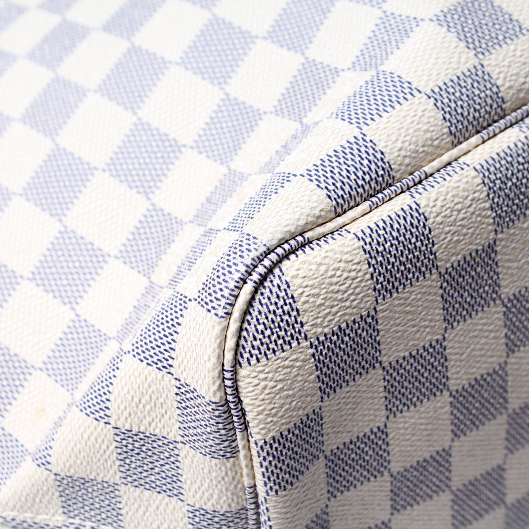 This Louis Vuitton Neverfull MM is guaranteed 100% . The exterior is in the classic Louis Vuitton Damier Azur coated canvas.