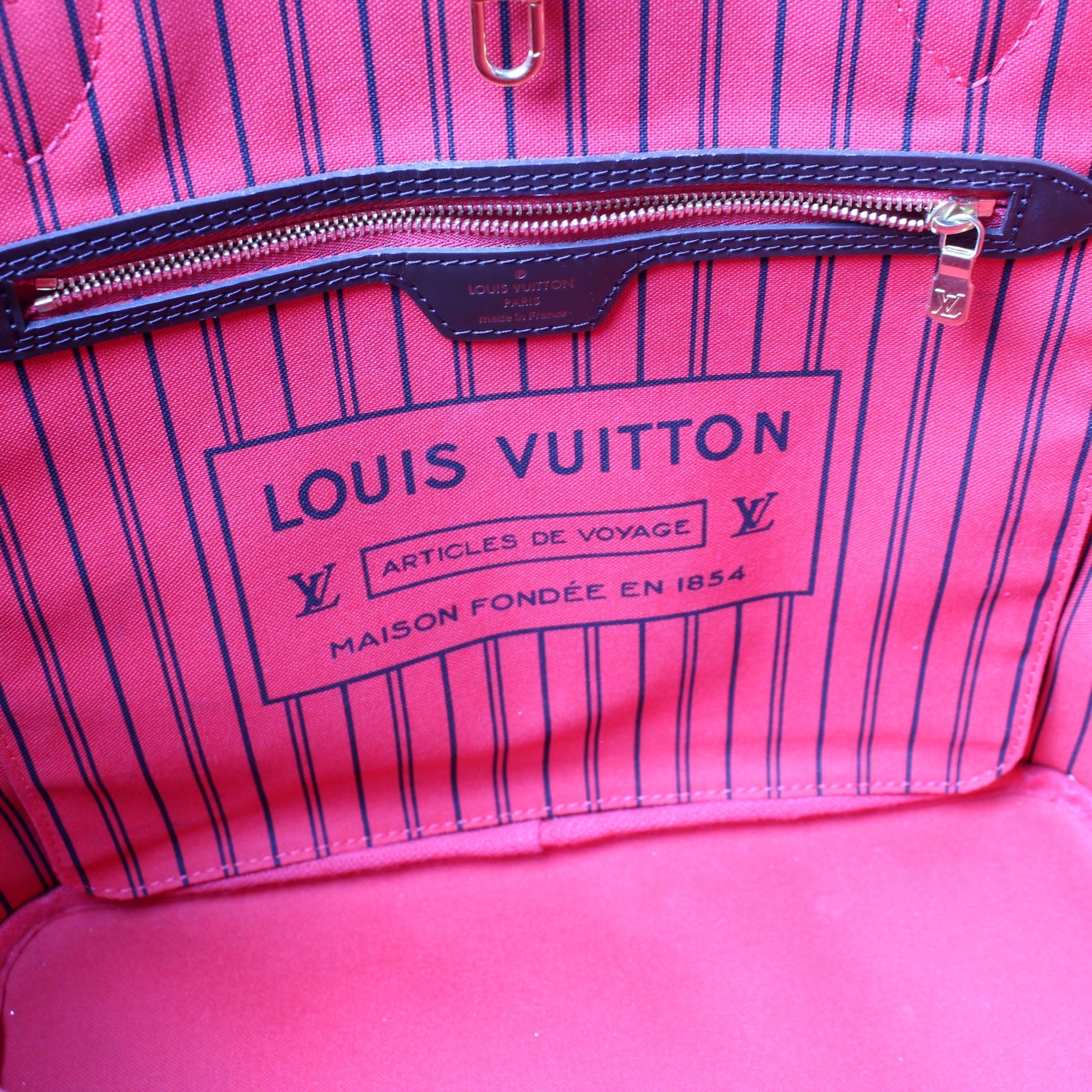 This Louis Vuitton Neverfull MM is guaranteed 100% . The exterior is in the classic Louis Vuitton Damier Ebene coated canvas.