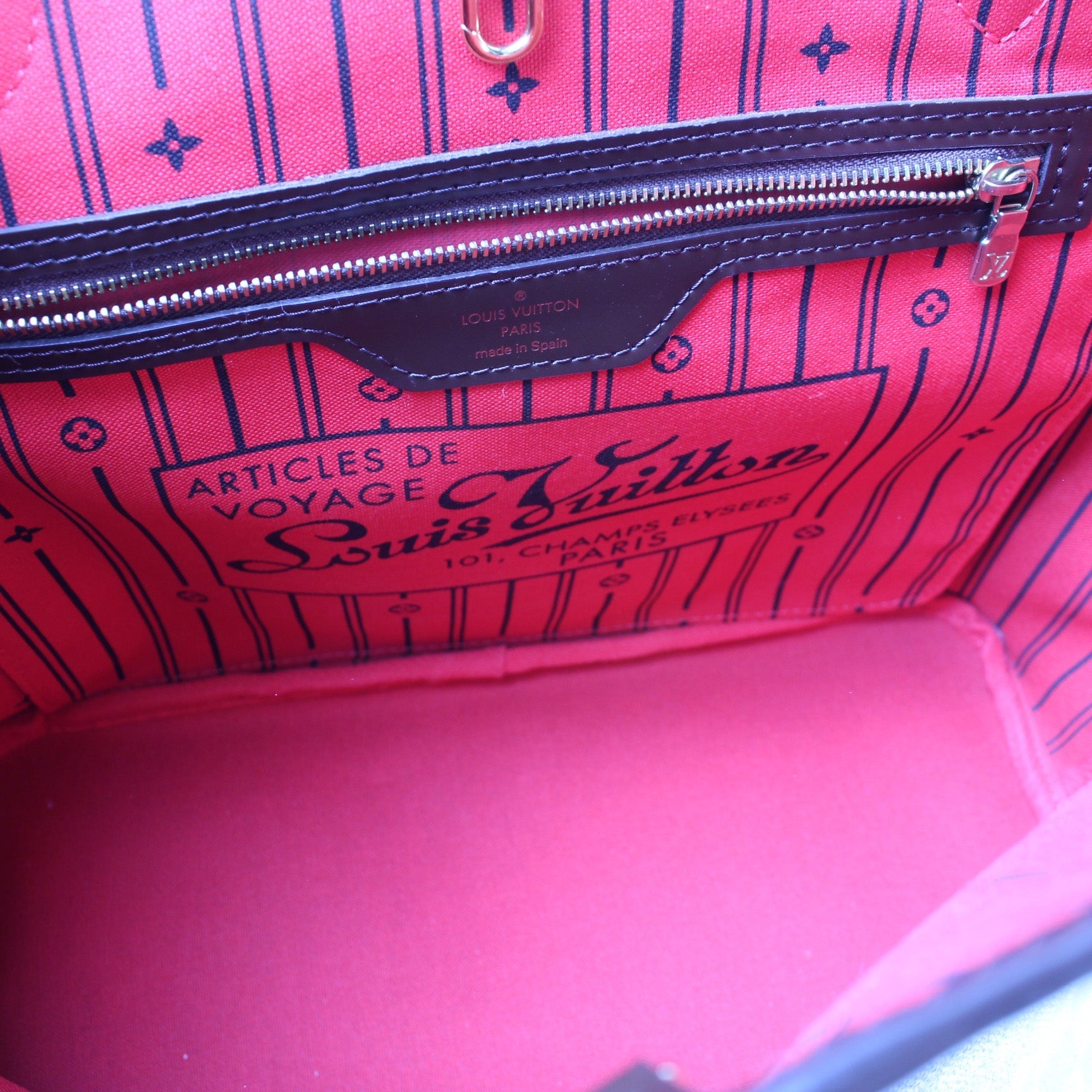 This Louis Vuitton Neverfull MM is guaranteed 100% . The exterior is in the classic Louis Vuitton Damier Ebene coated canvas.