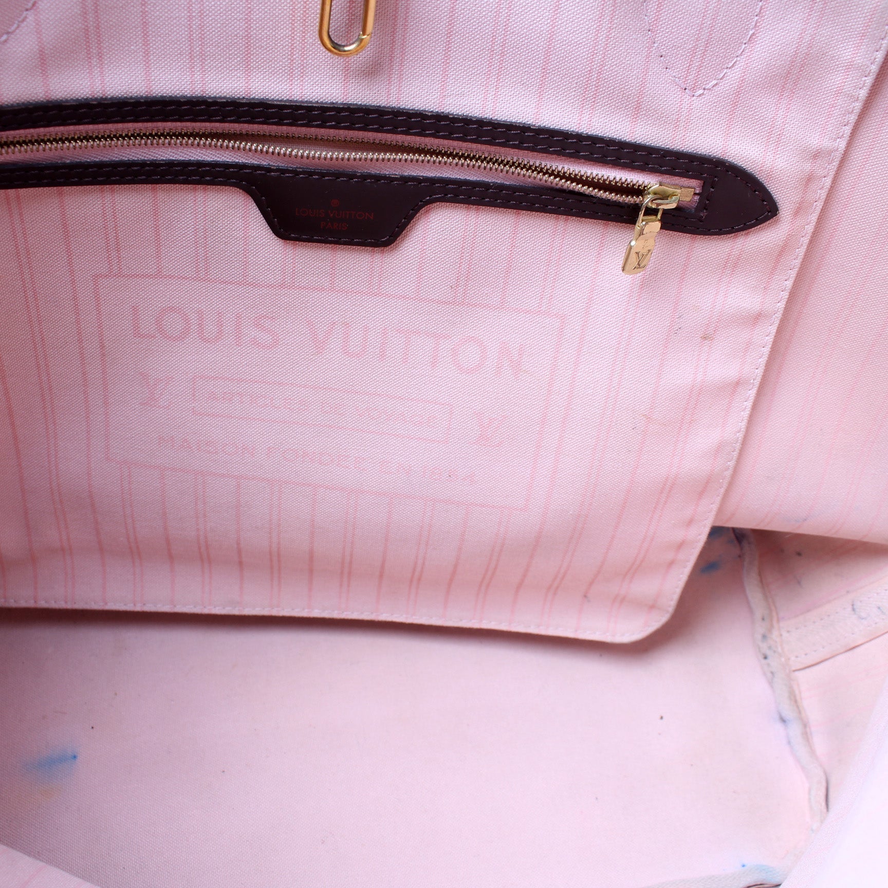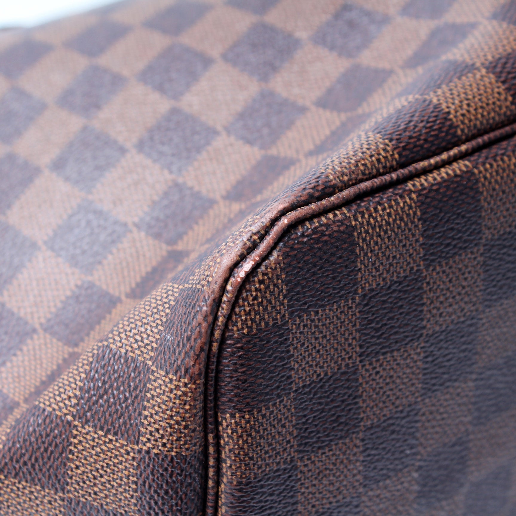 This Louis Vuitton Neverfull MM is guaranteed 100% . The exterior is in the classic Louis Vuitton Damier Ebene coated canvas.