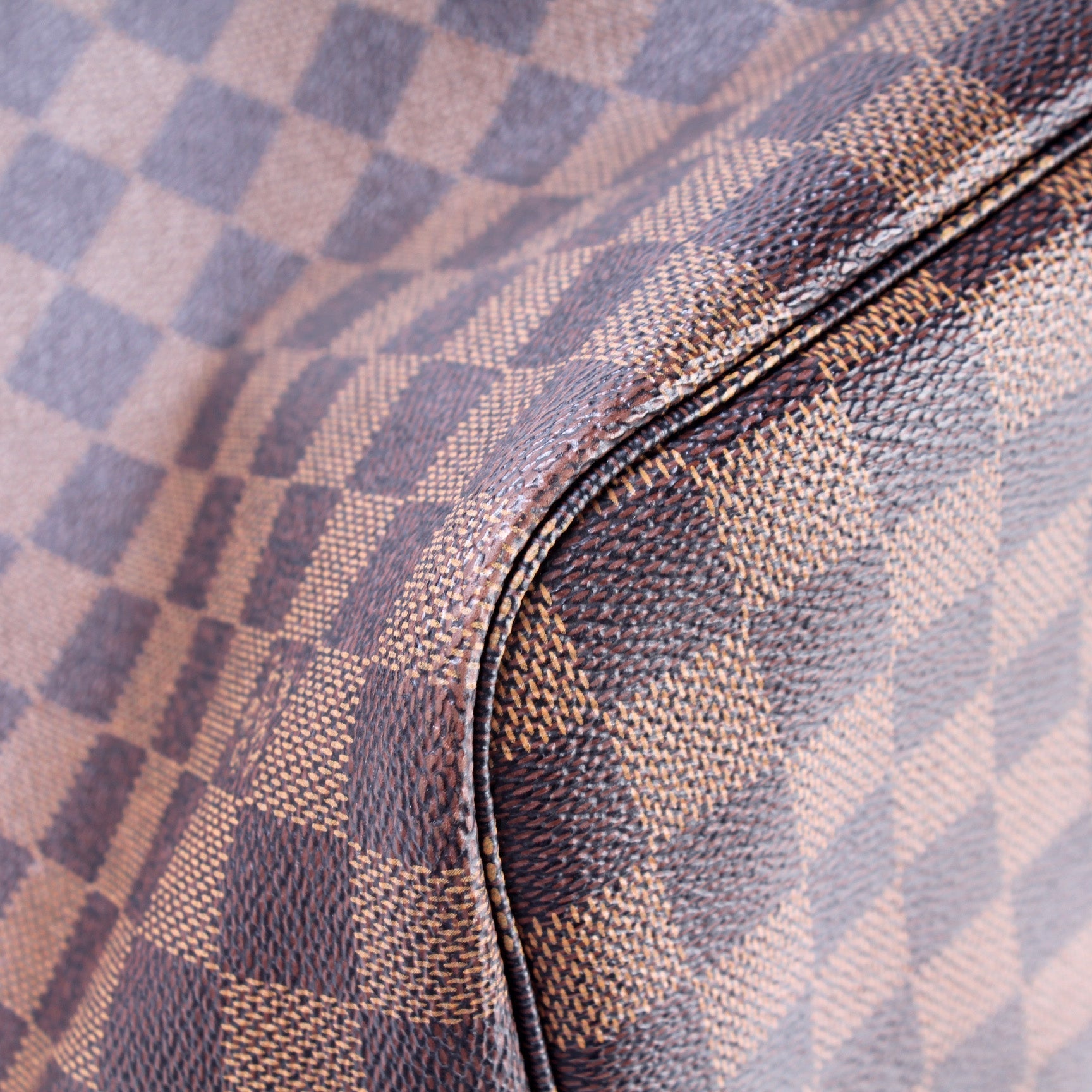 This Louis Vuitton Neverfull MM is guaranteed 100% . The exterior is in the classic Louis Vuitton Damier Ebene coated canvas.