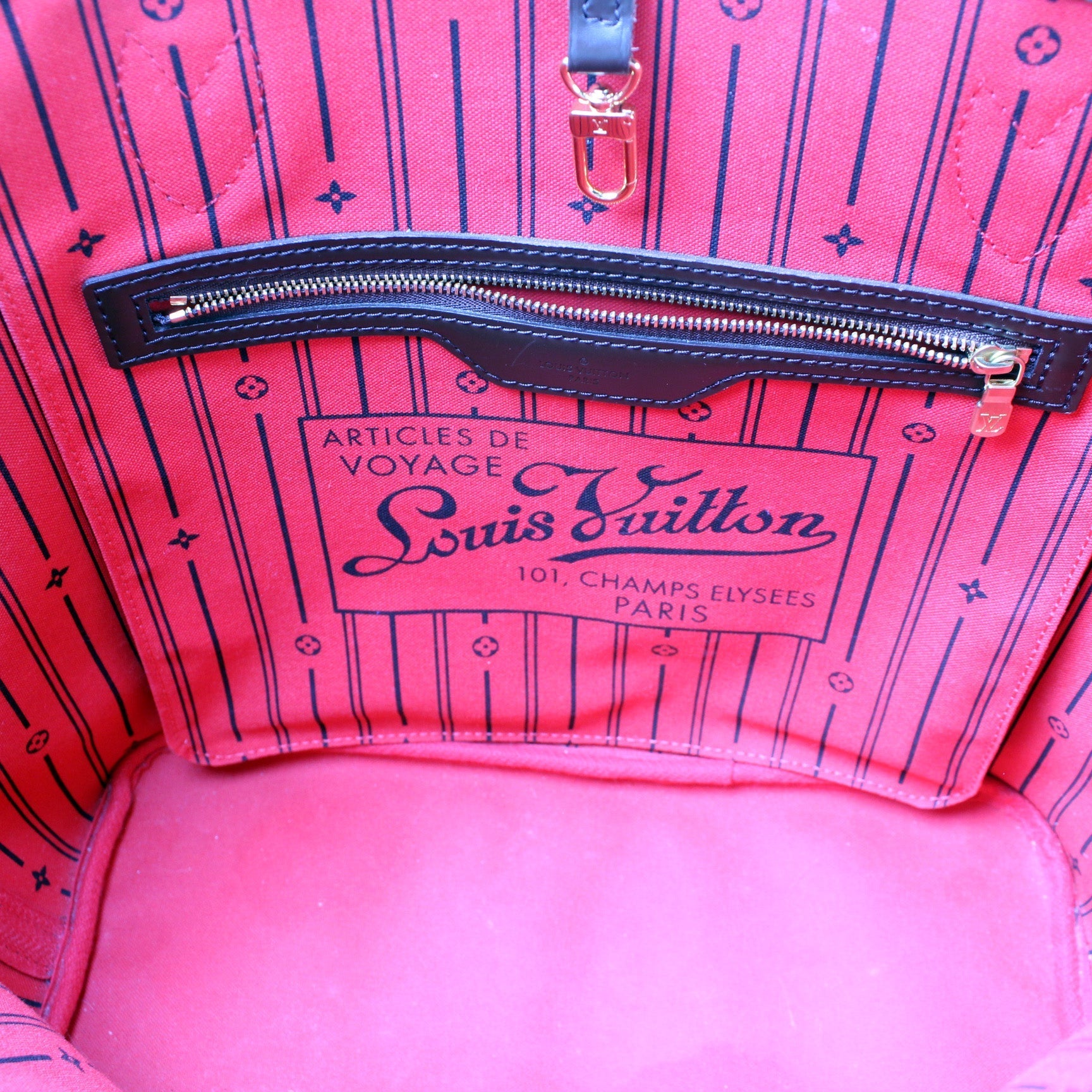This Louis Vuitton Neverfull MM is guaranteed 100% . The exterior is in the classic Louis Vuitton Damier Ebene coated canvas.