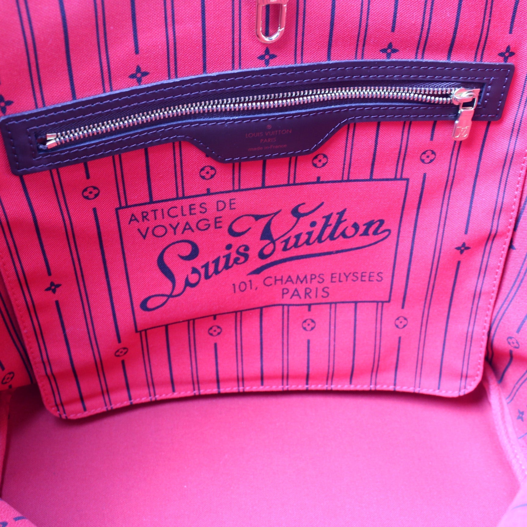 This Louis Vuitton Neverfull MM is guaranteed 100% . The exterior is in the classic Louis Vuitton Damier Ebene coated canvas.