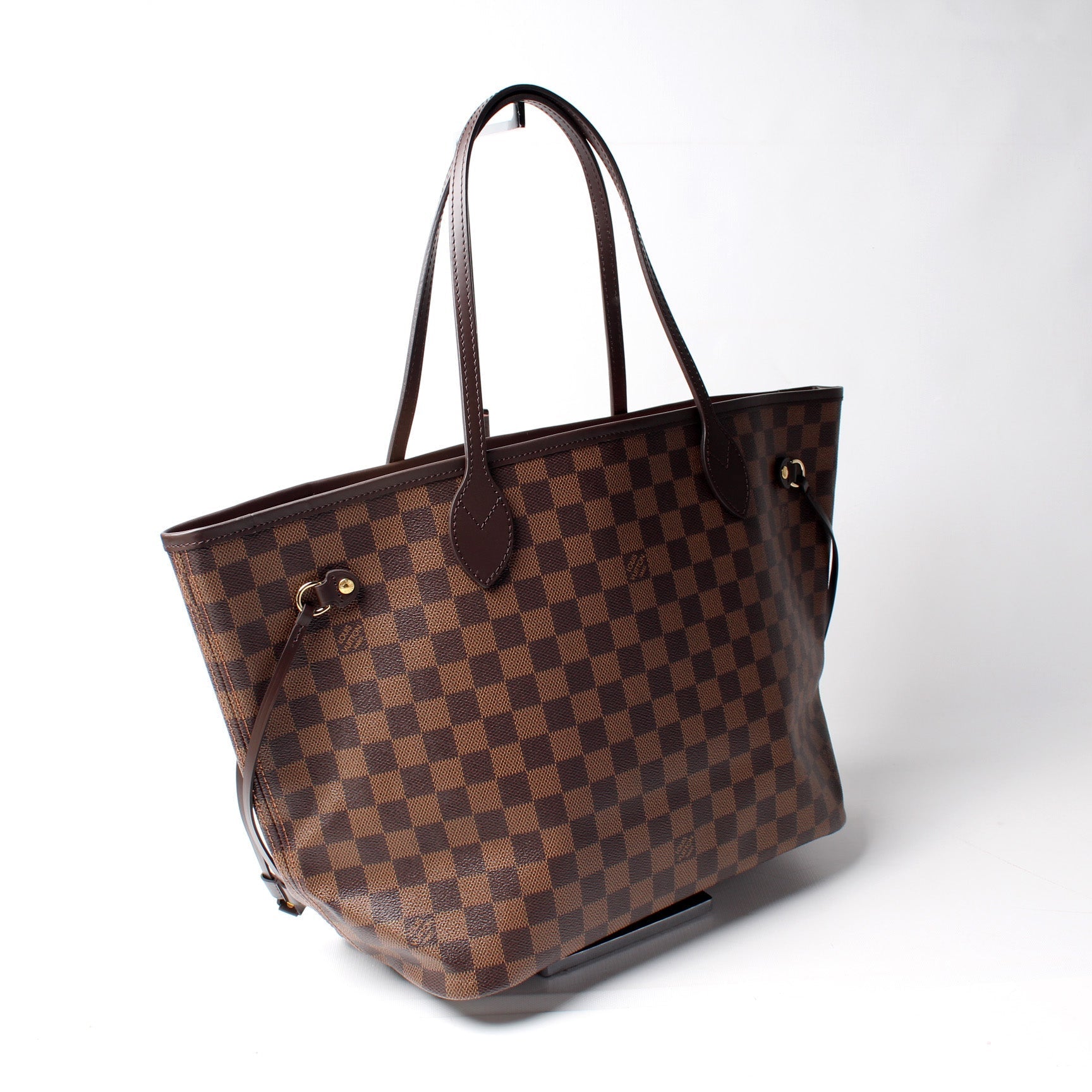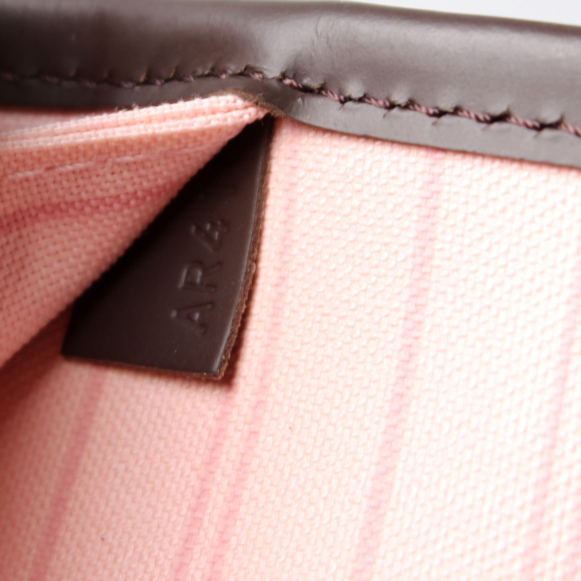 This Louis Vuitton Neverfull MM is guaranteed 100% . The exterior is in the classic Louis Vuitton Damier Ebene coated canvas.