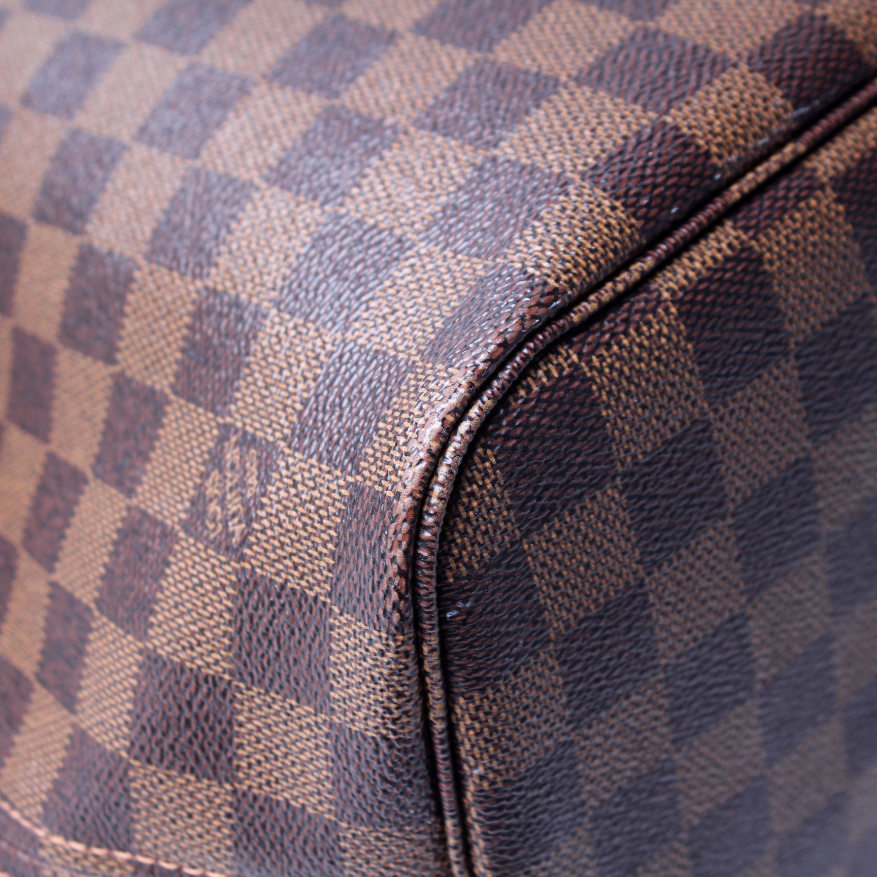 This Louis Vuitton Neverfull MM is guaranteed 100% . The exterior is in the classic Louis Vuitton Damier Ebene coated canvas.