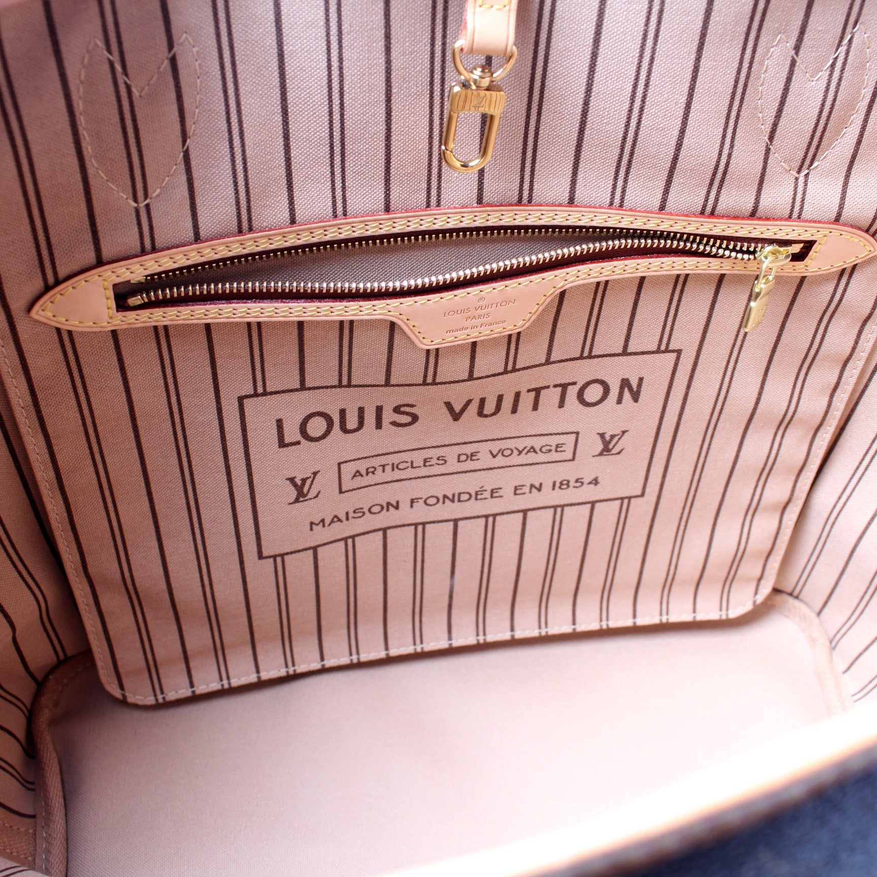 This Louis Vuitton Neverfull MM is guaranteed 100% . The exterior is in the classic Louis Vuitton Monogram coated canvas.