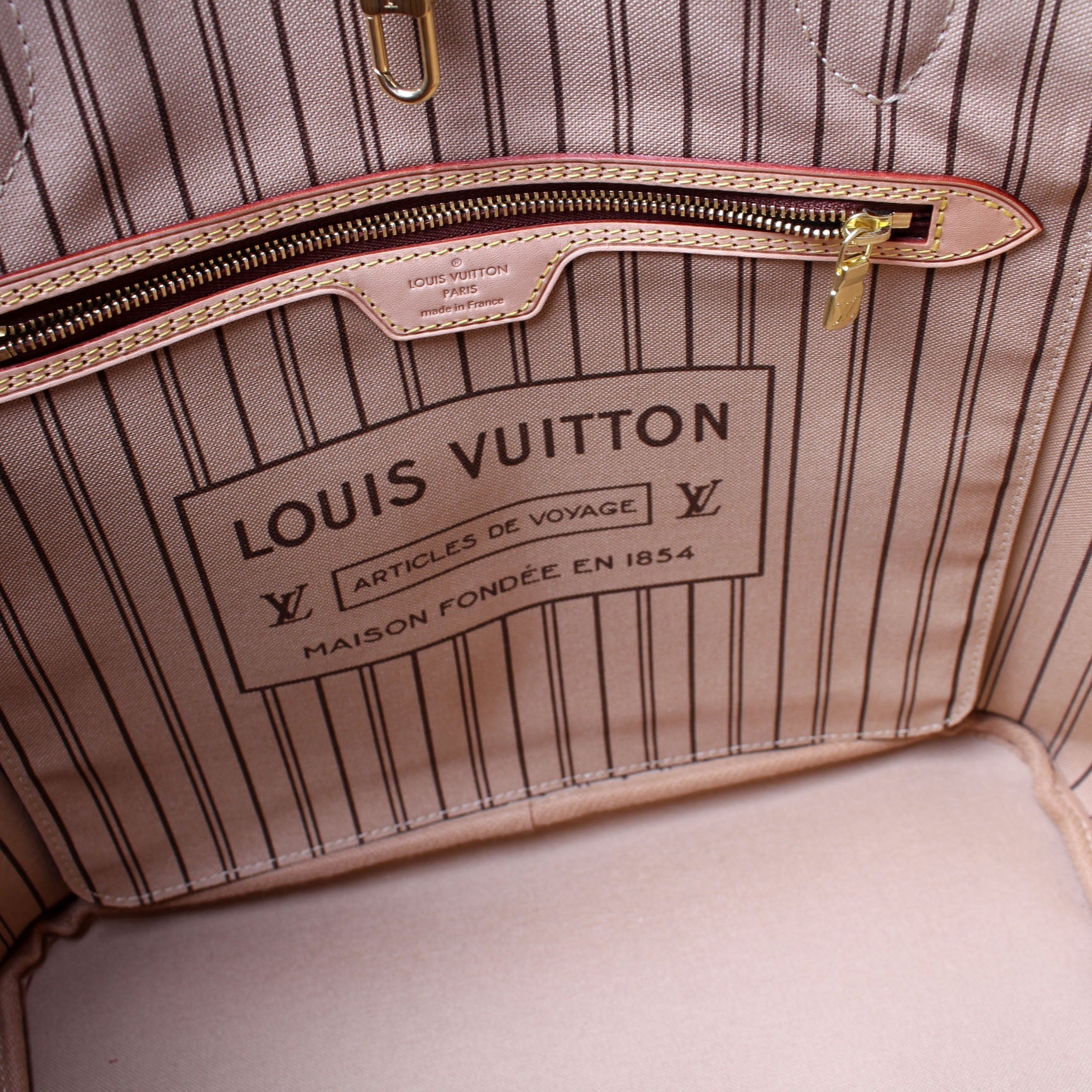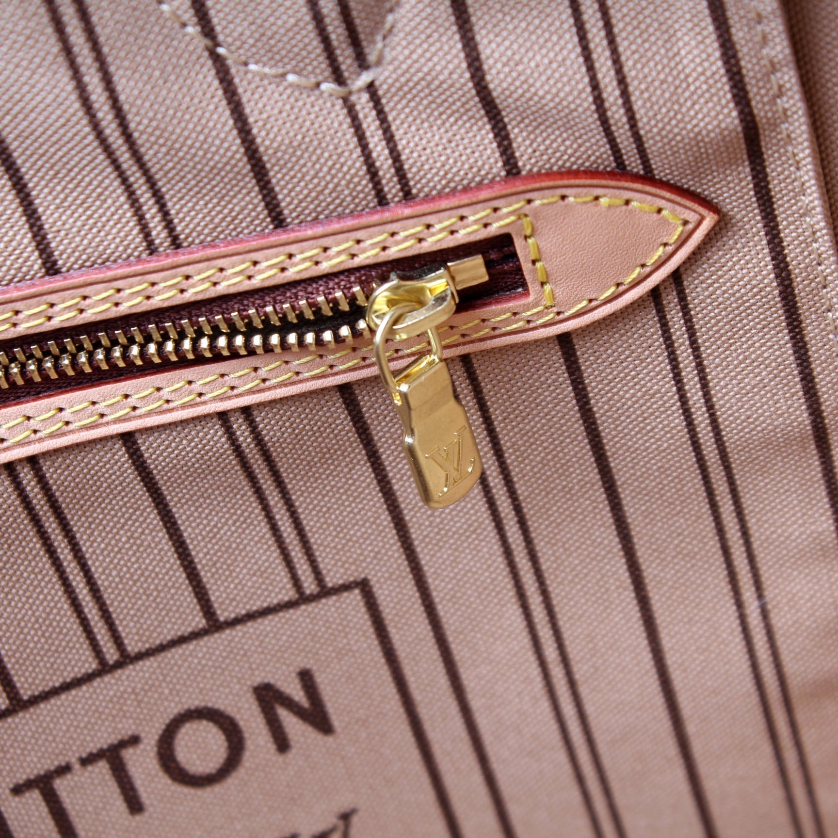 This Louis Vuitton Neverfull MM is guaranteed 100% . The exterior is in the classic Louis Vuitton Monogram coated canvas.