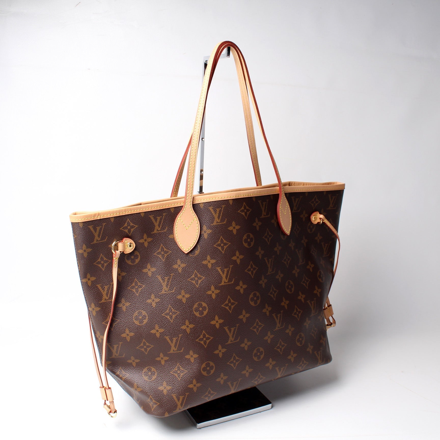This Louis Vuitton Neverfull MM is guaranteed 100% . The exterior is in the classic Louis Vuitton Monogram coated canvas.