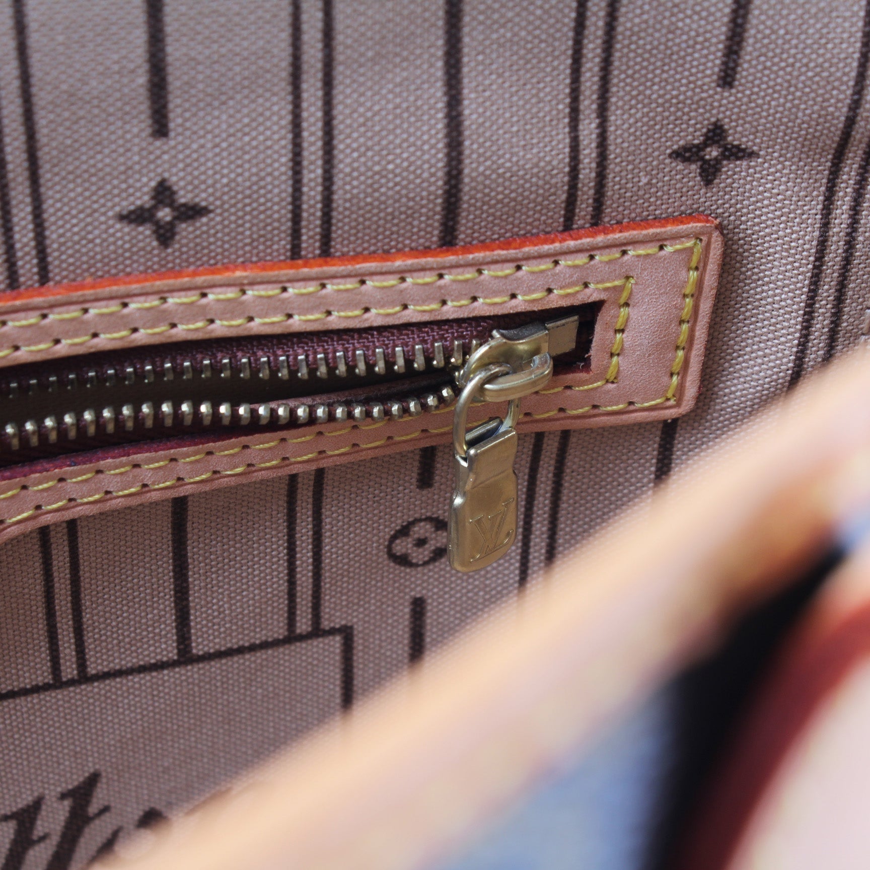 This Louis Vuitton Neverfull MM is guaranteed 100% . The exterior is in the classic Louis Vuitton Monogram coated canvas.