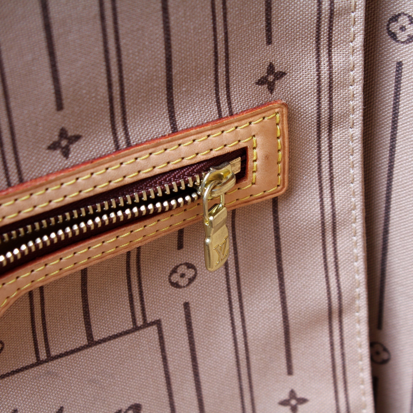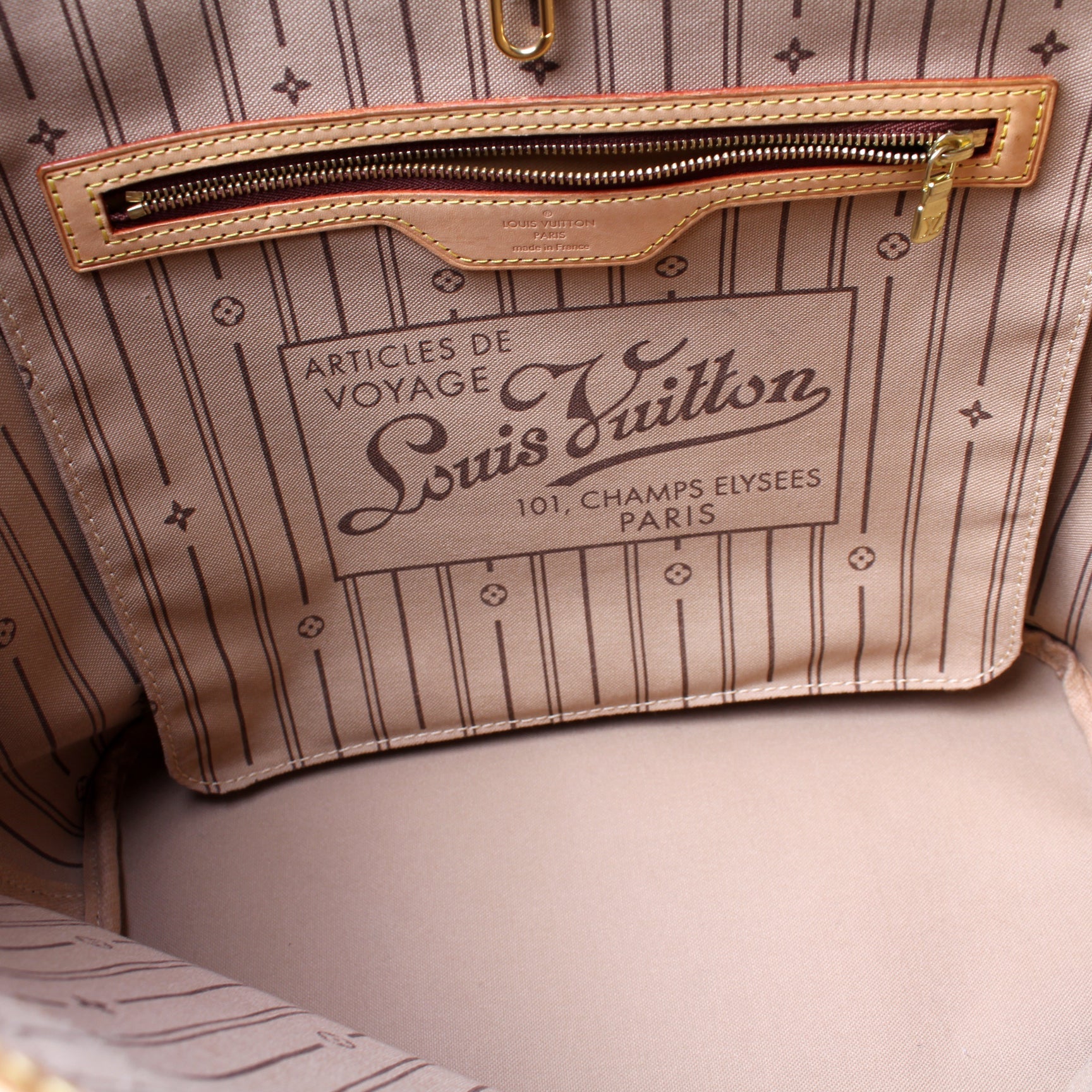 This Louis Vuitton Neverfull MM is guaranteed 100% . The exterior is in the classic Louis Vuitton Monogram coated canvas.