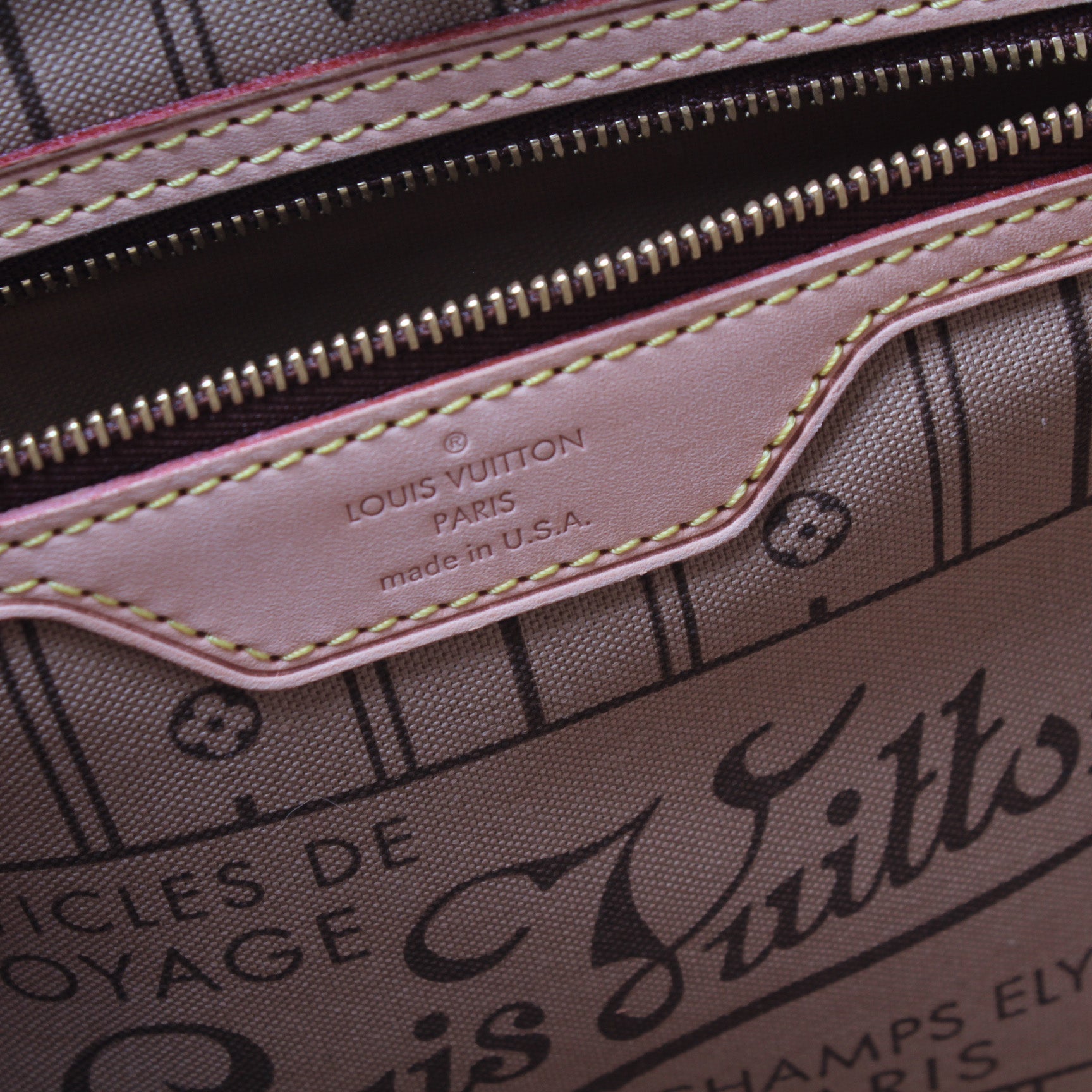 This Louis Vuitton Neverfull MM is guaranteed 100% . The exterior is in the classic Louis Vuitton Monogram coated canvas.