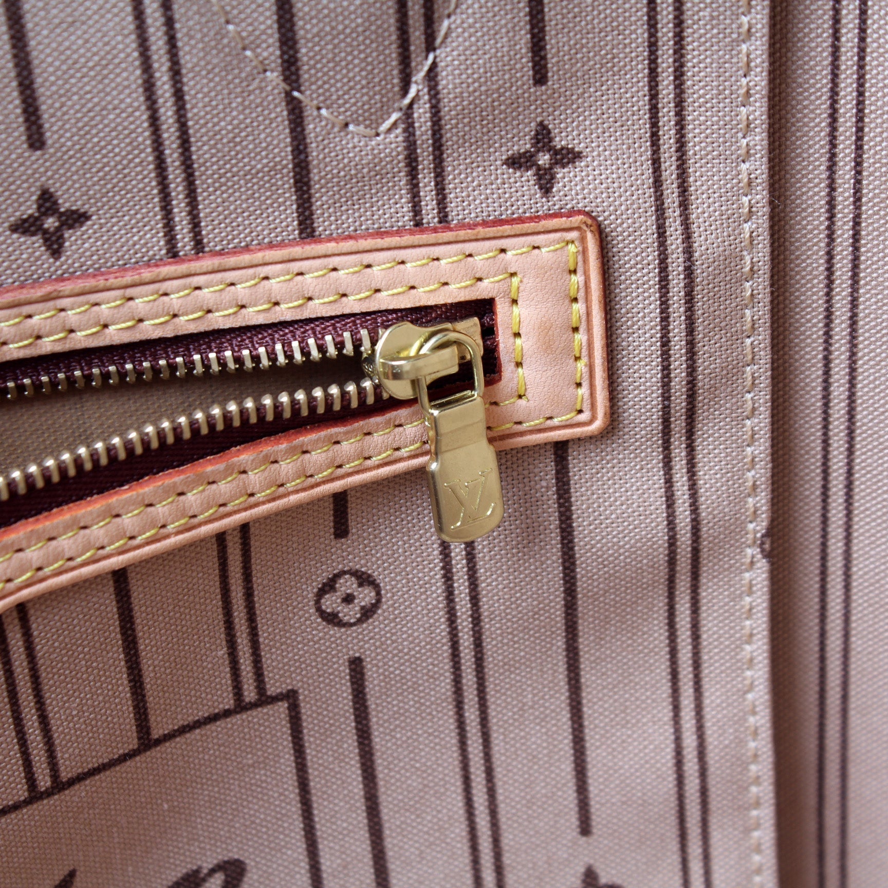This Louis Vuitton Neverfull MM is guaranteed 100% . The exterior is in the classic Louis Vuitton Monogram coated canvas.