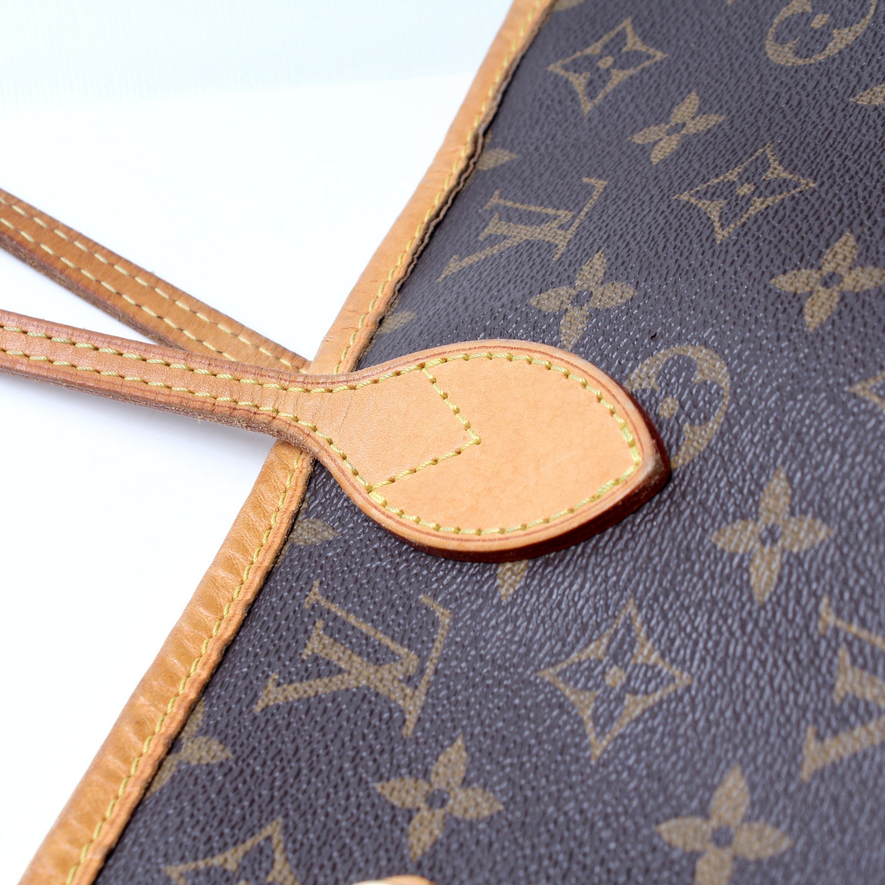 This Louis Vuitton Neverfull MM is guaranteed 100% . The exterior is in the classic Louis Vuitton Monogram coated canvas.