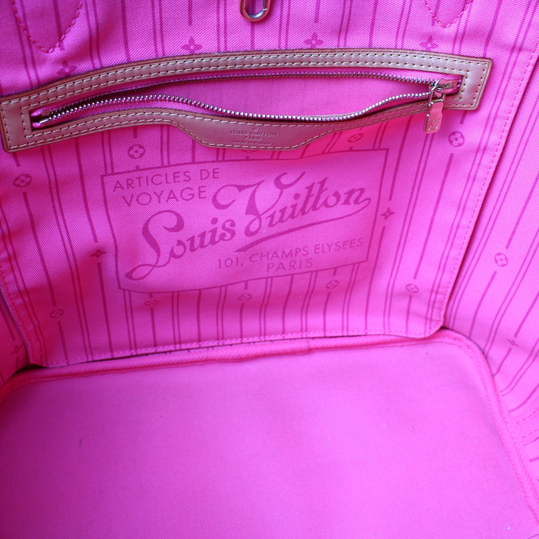 This Louis Vuitton Neverfull MM is guaranteed 100% . The exterior is in the classic Louis Vuitton monogram roses coated canvas.