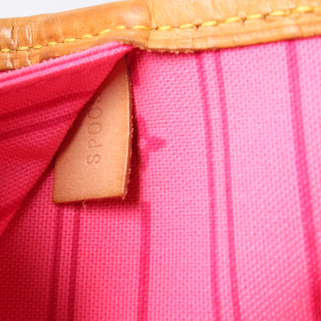 Interior: The interior has light staining. It includes an interior zipper pocket.