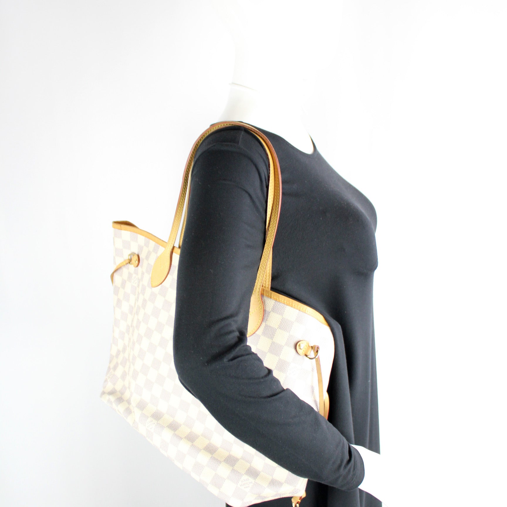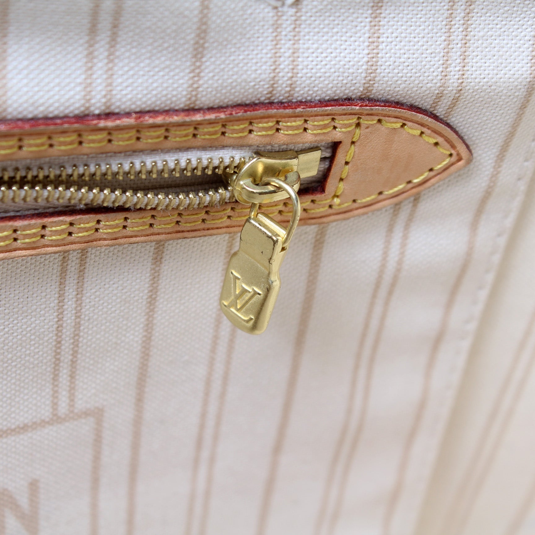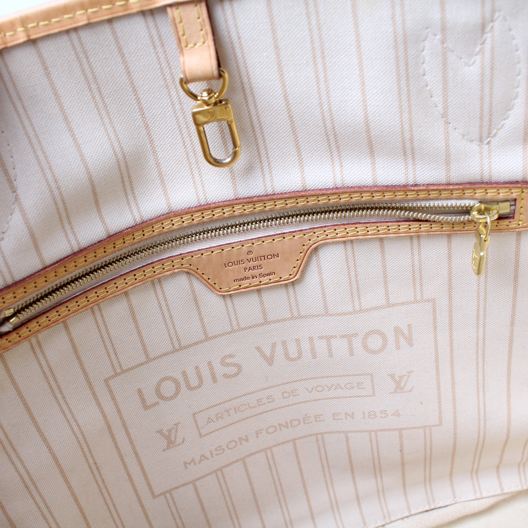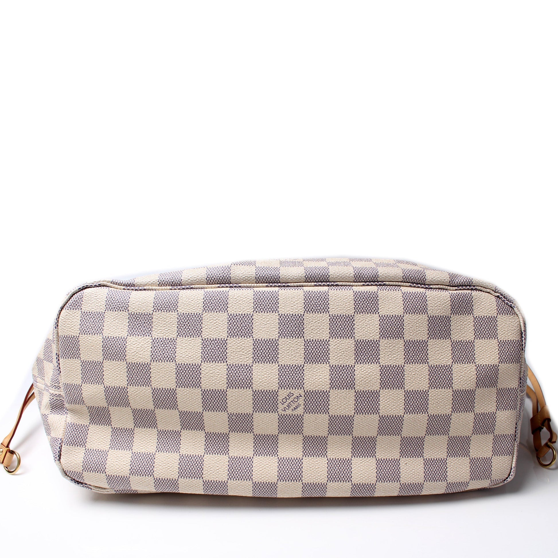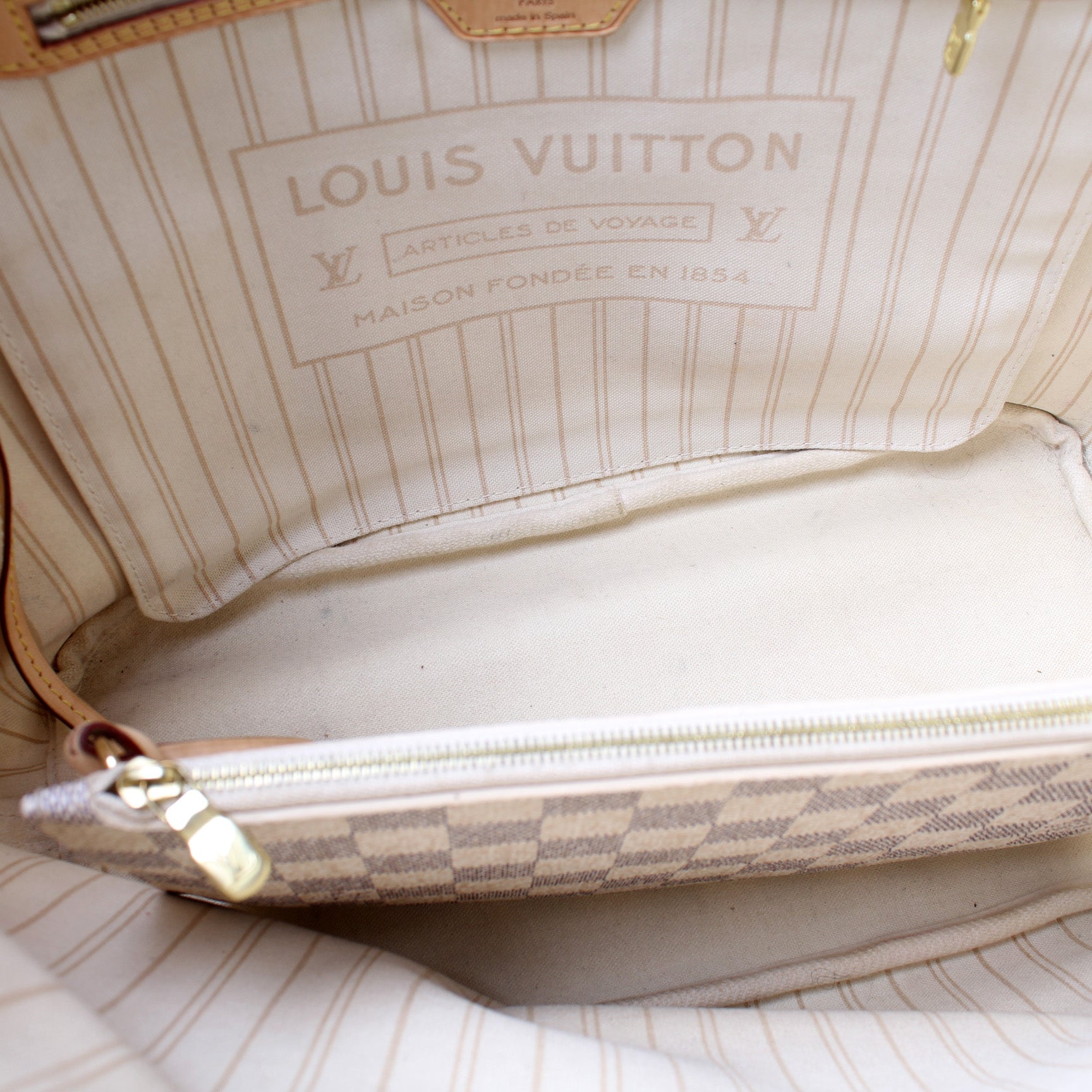 This Louis Vuitton Neverfull MM W/ Wallet is guaranteed 100% . The exterior is in the classic Louis Vuitton Damier Azur coated canvas.