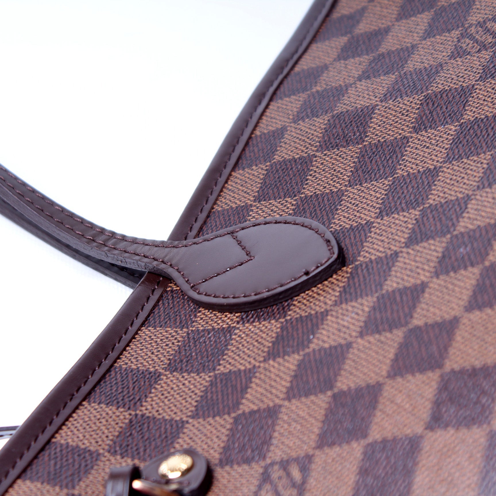 This Louis Vuitton Neverfull MM is guaranteed 100% . The exterior is in the classic Louis Vuitton Damier Ebene coated canvas.