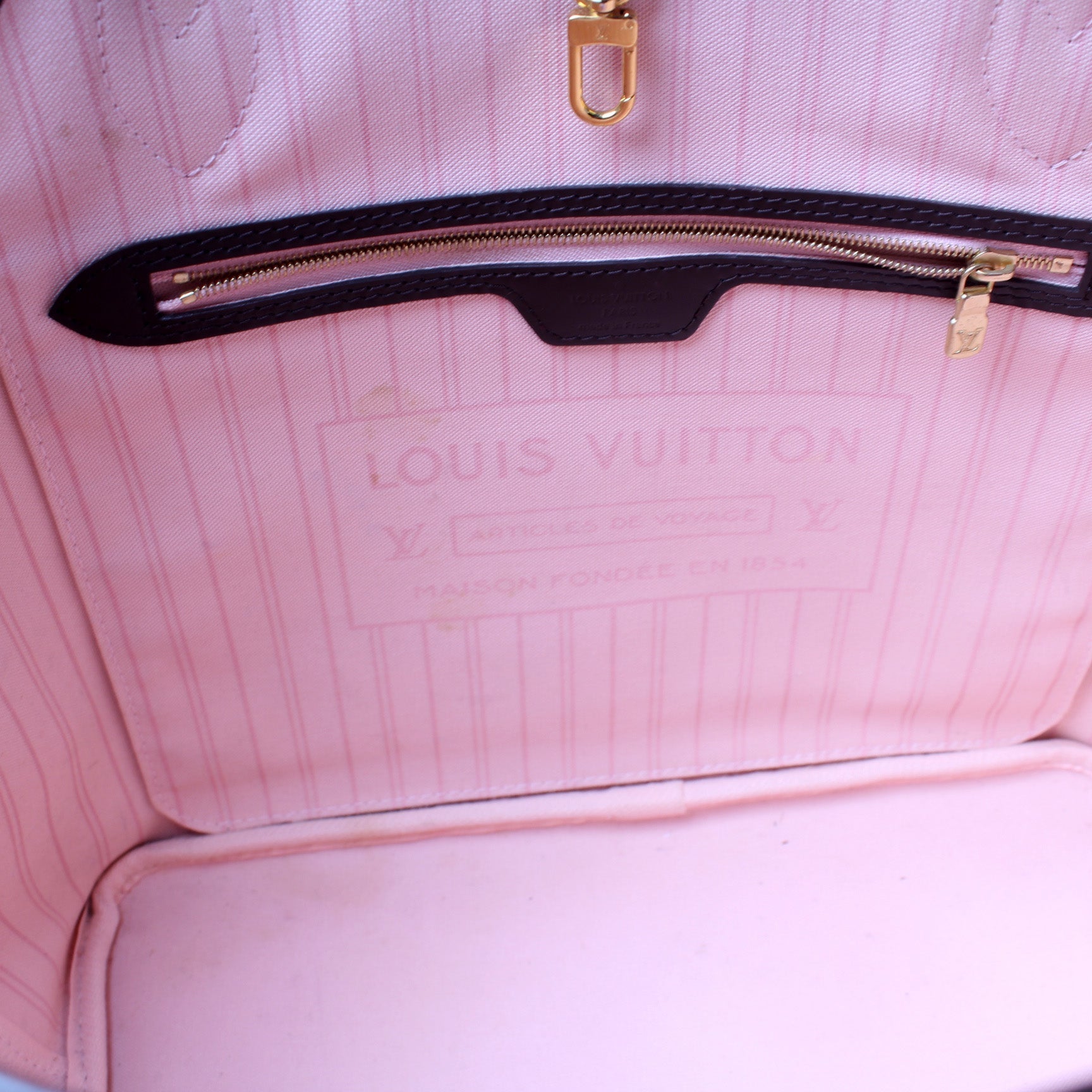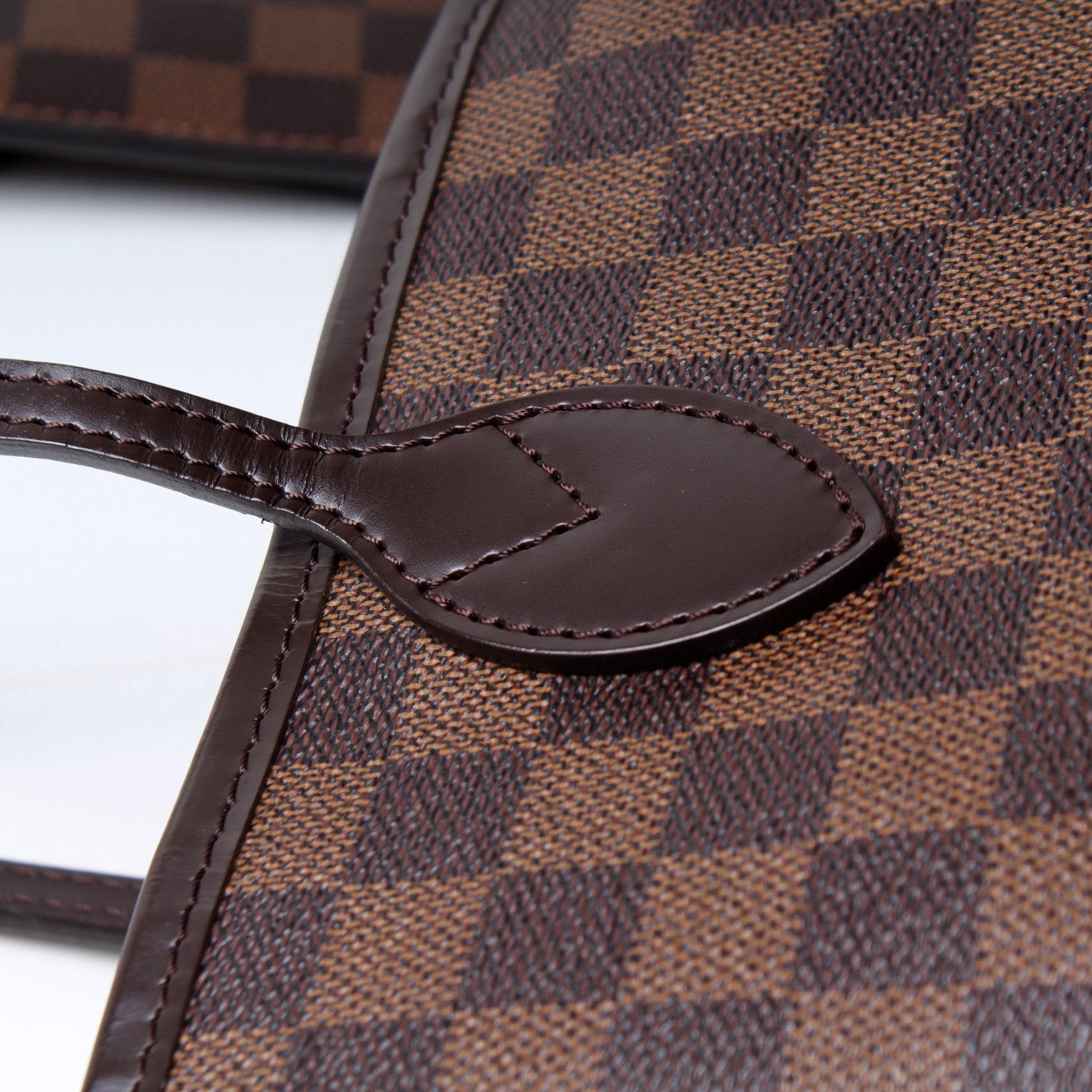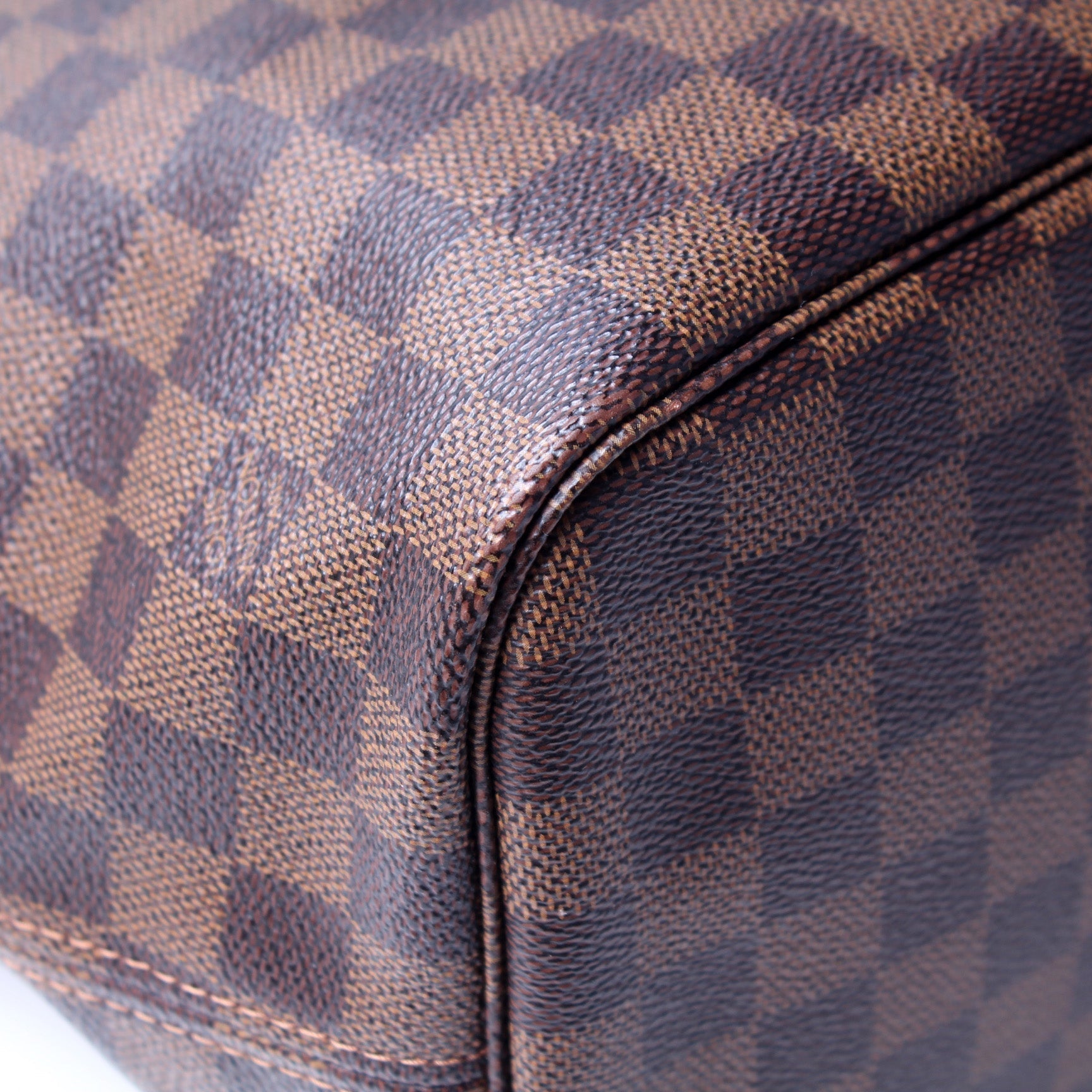 This Louis Vuitton Neverfull MM W/ Wallet is guaranteed 100% . The exterior is in the classic Louis Vuitton Damier Ebene coated canvas.