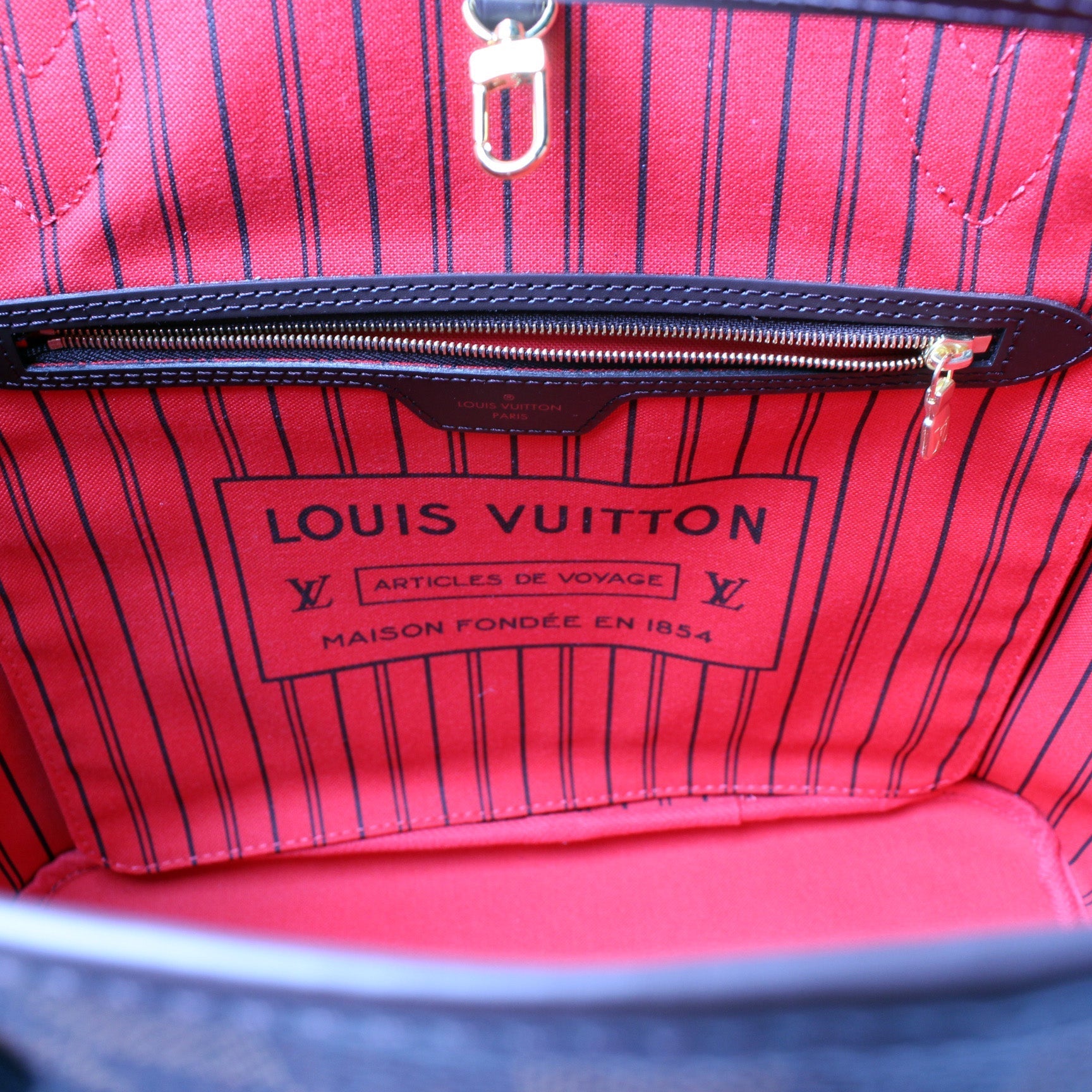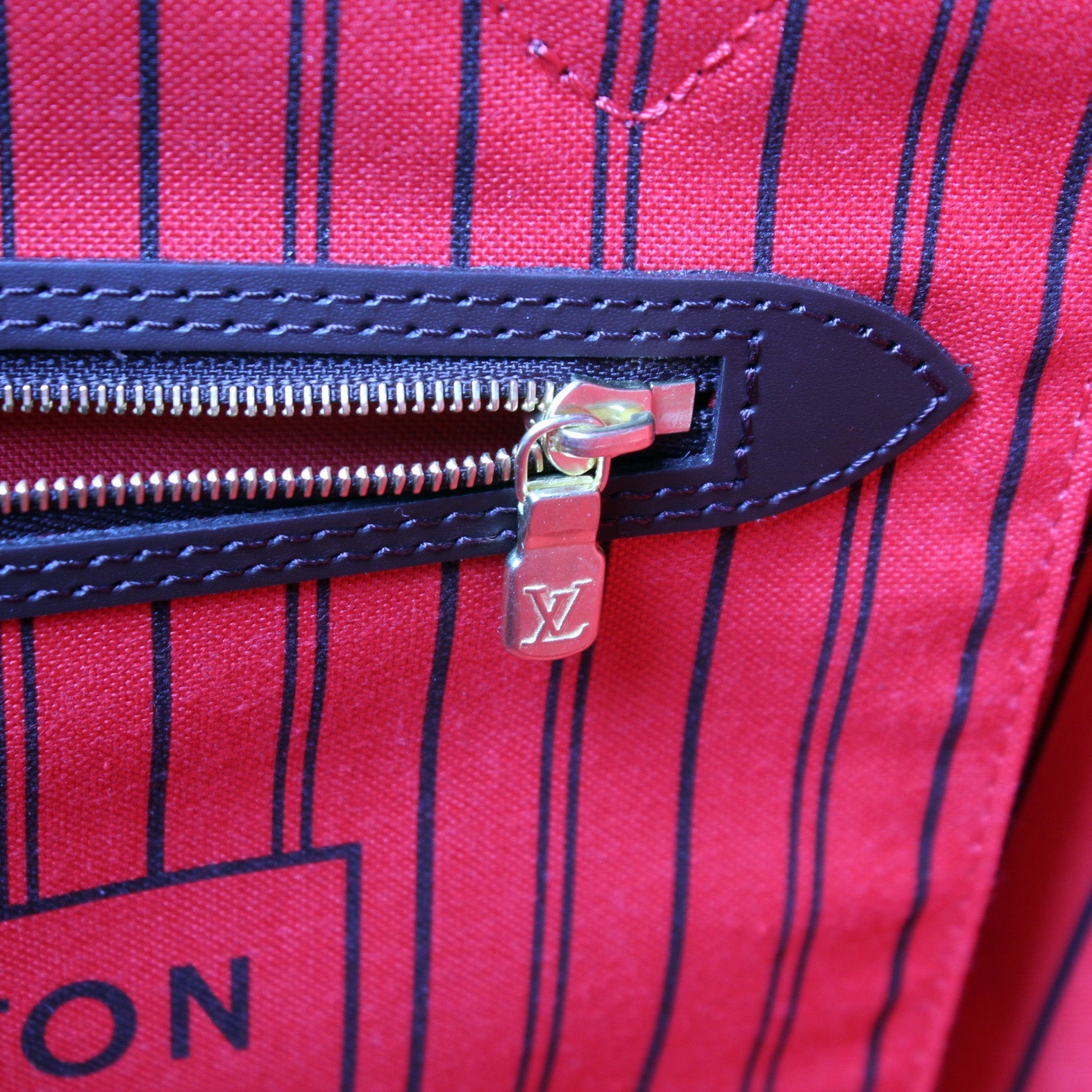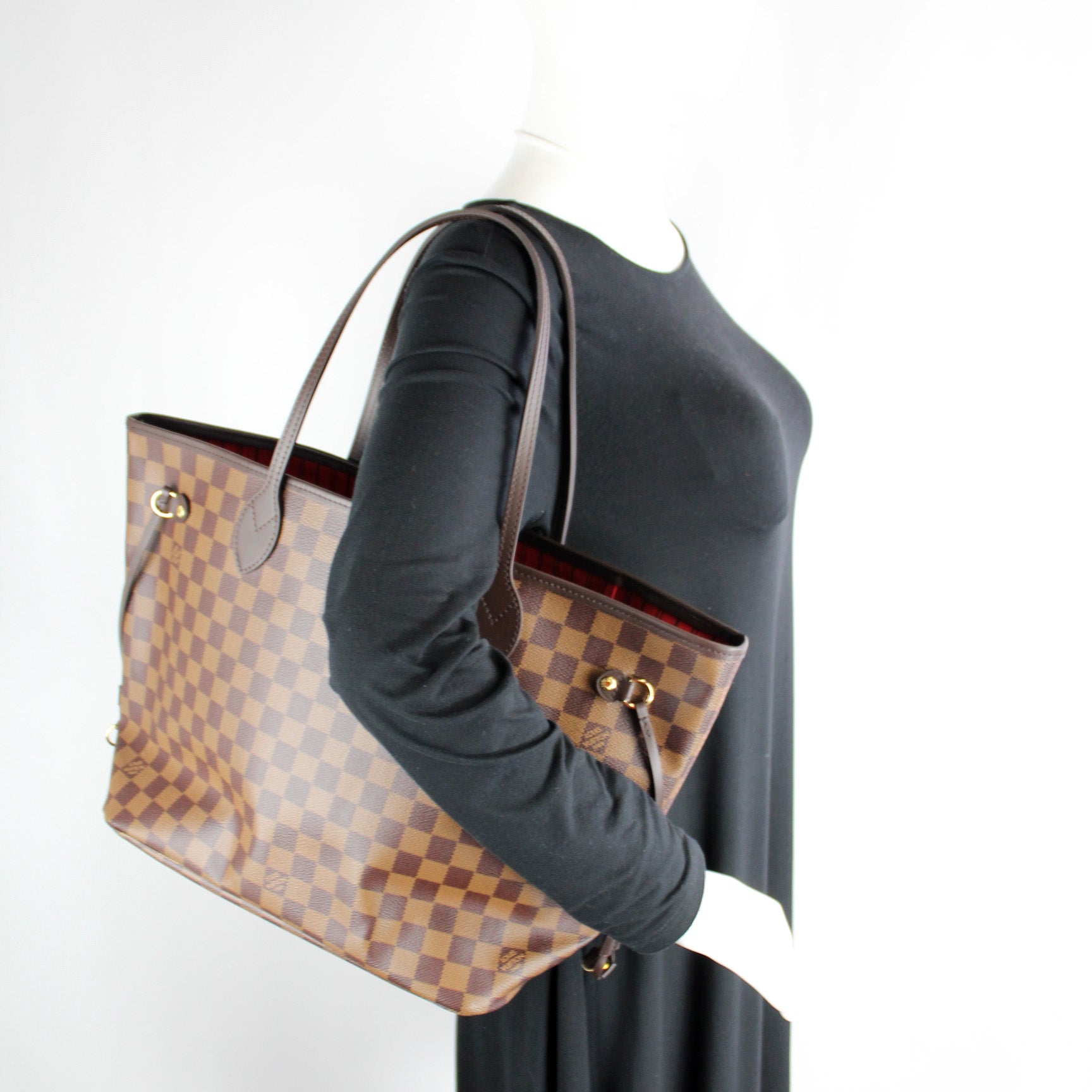 This Louis Vuitton Neverfull MM is guaranteed 100% . The exterior is in the classic Louis Vuitton Damier Ebene coated canvas.