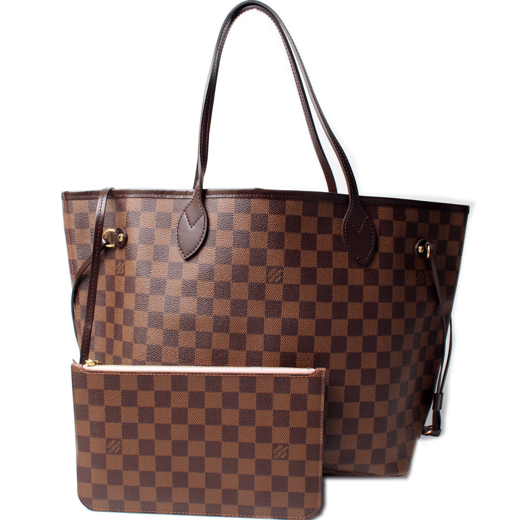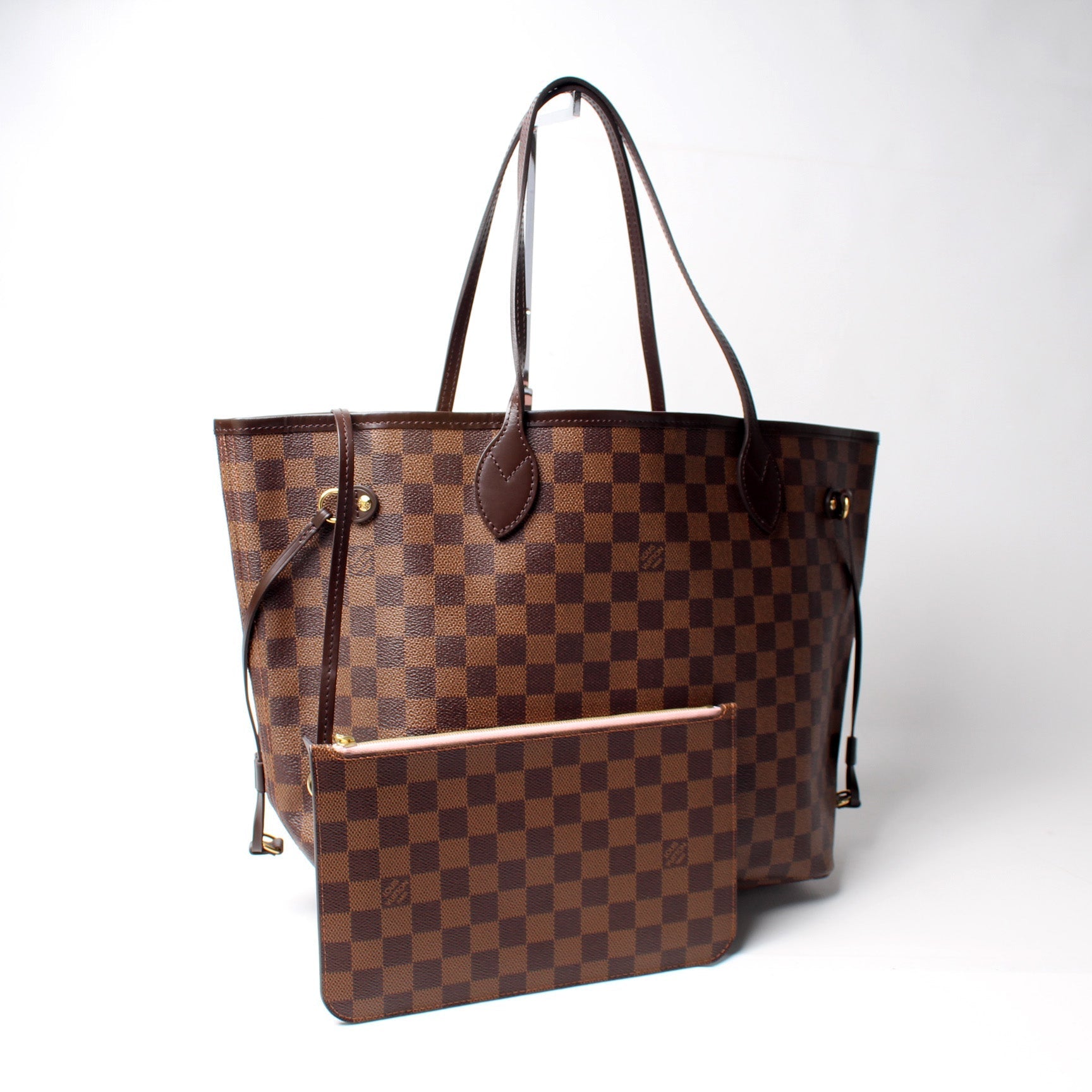 This Louis Vuitton Neverfull MM is guaranteed 100% . The exterior is in the classic Louis Vuitton Damier Ebene coated canvas.