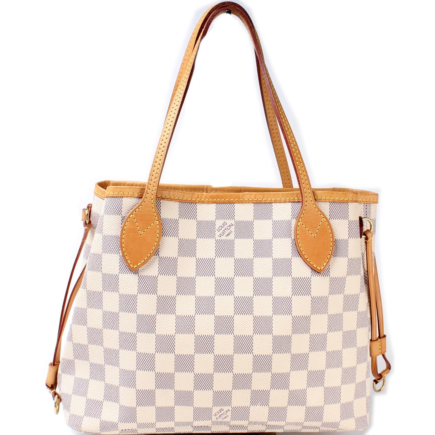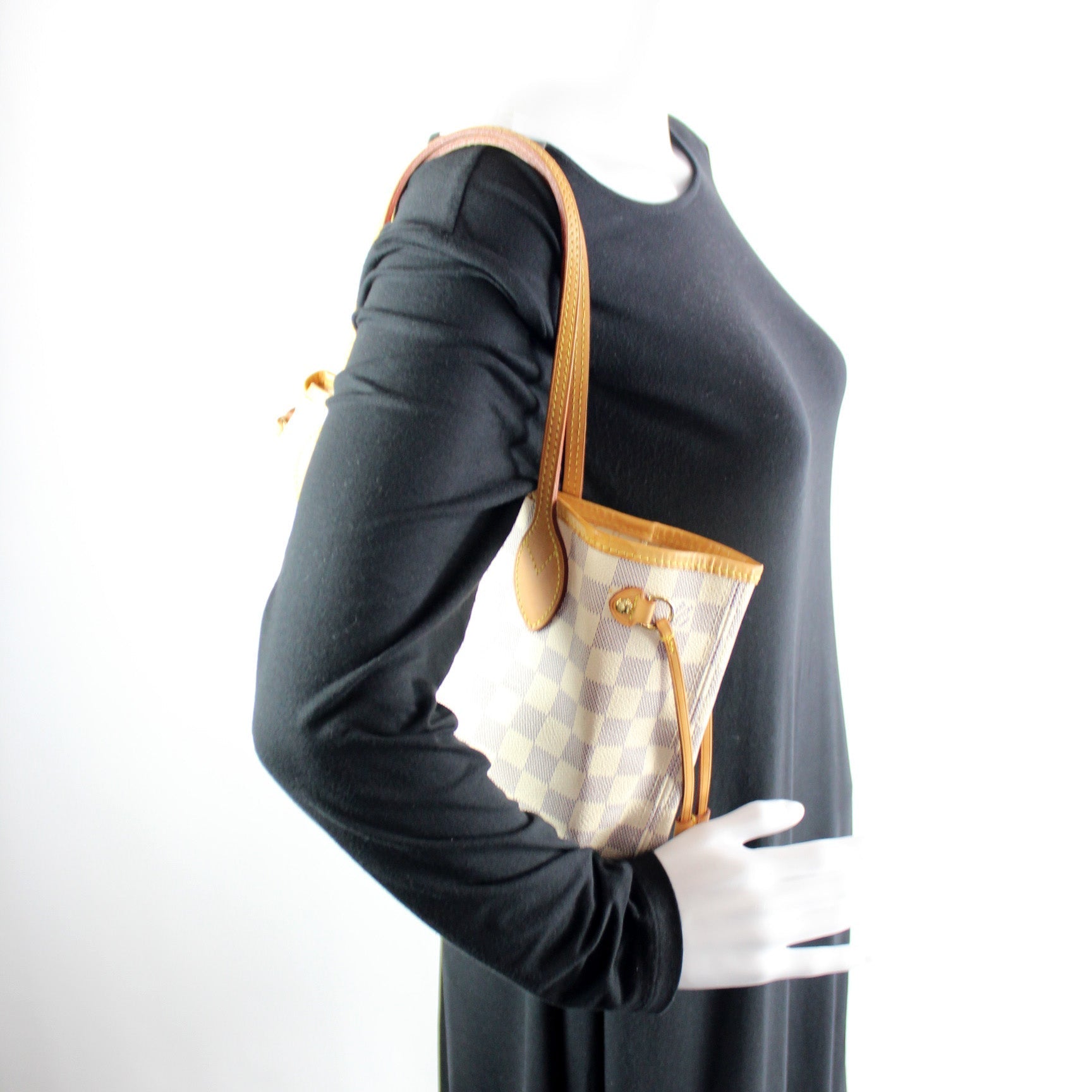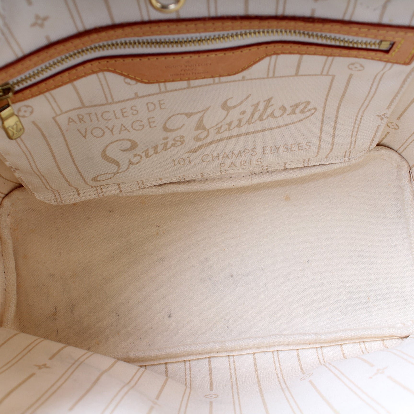 This Louis Vuitton Neverfull PM is guaranteed 100% . The exterior is in the classic Louis Vuitton Damier Azur coated canvas.