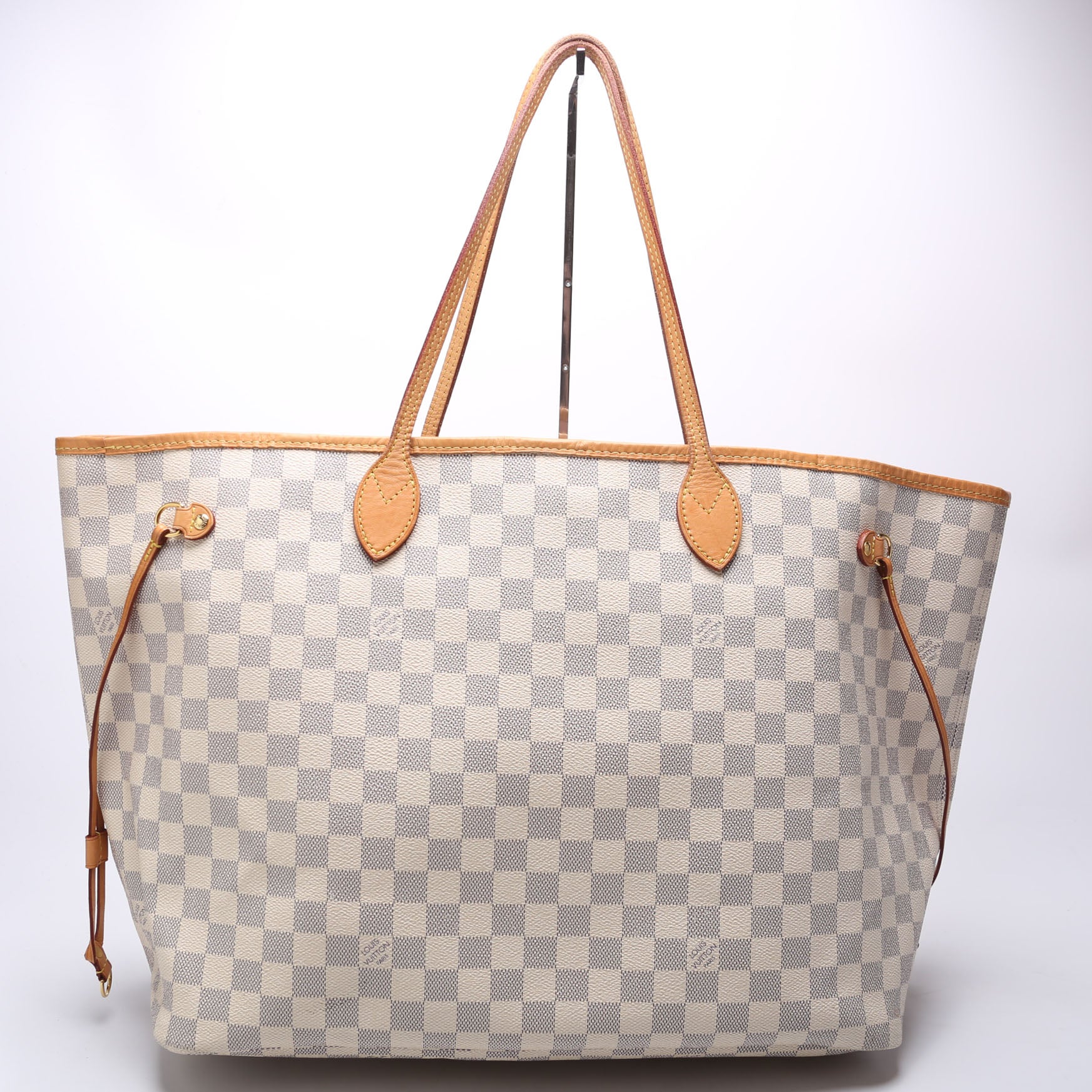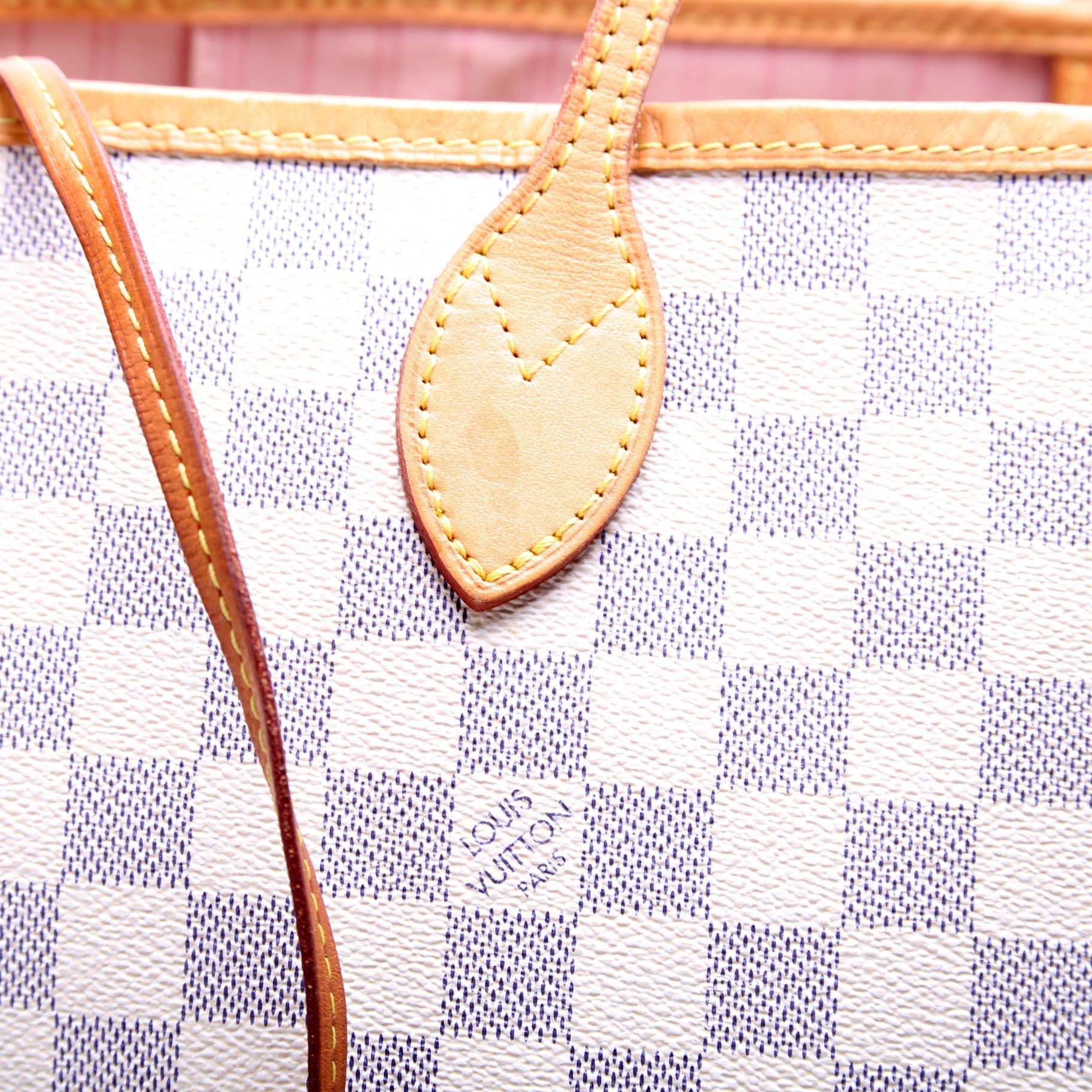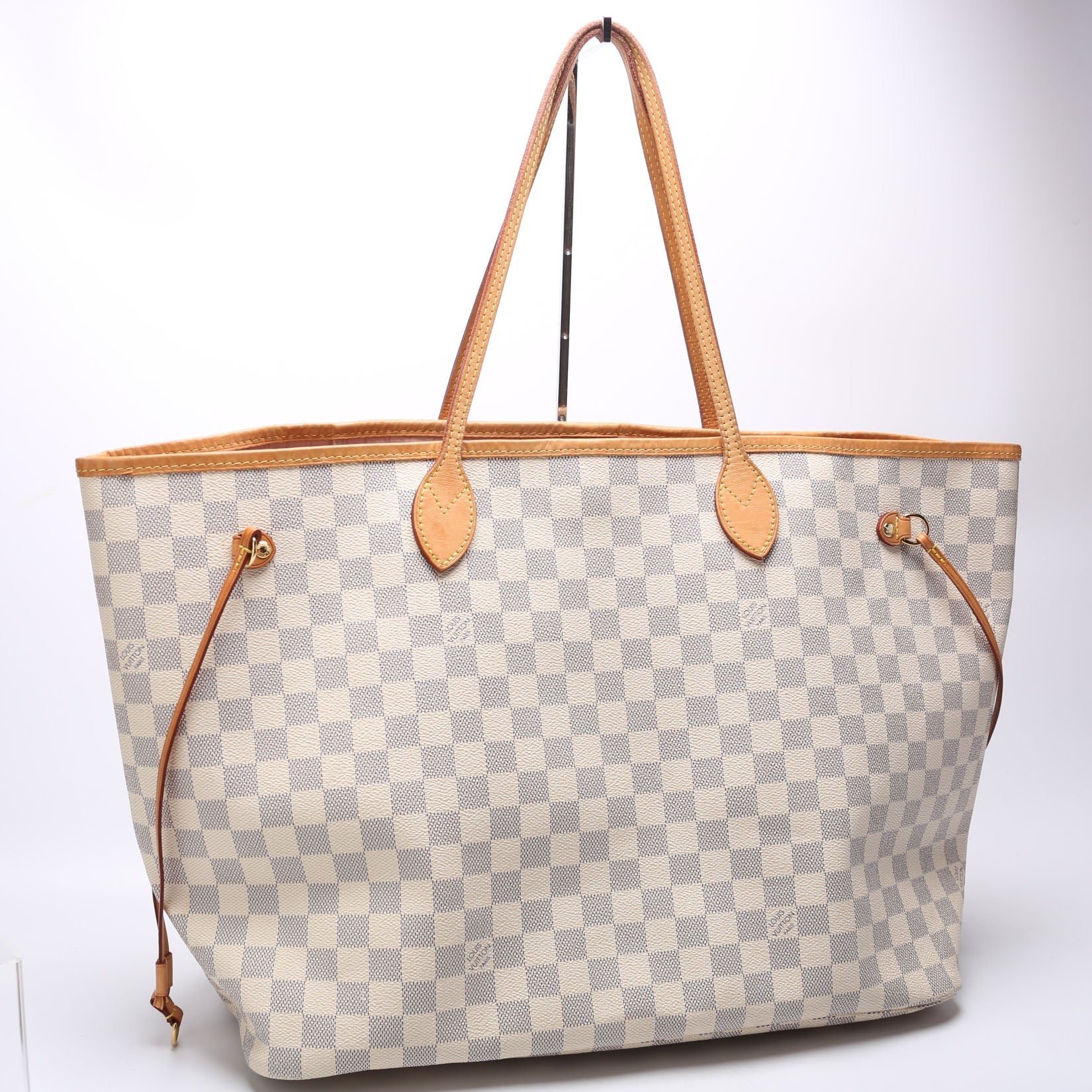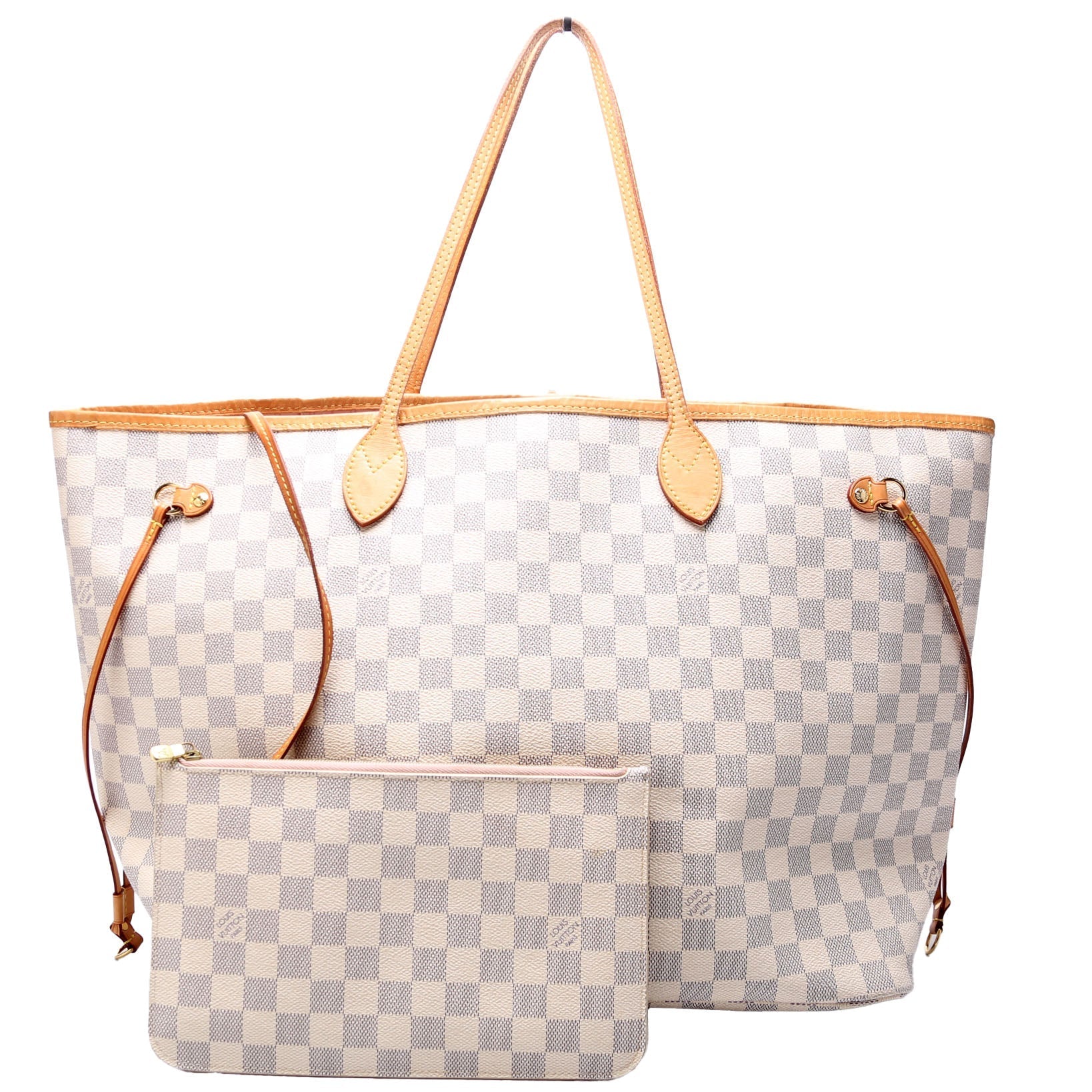 This Louis Vuitton Neverfull GM W/Wallet is guaranteed 100% . The exterior is in the classic Louis Vuitton Damier Azur coated canvas.
