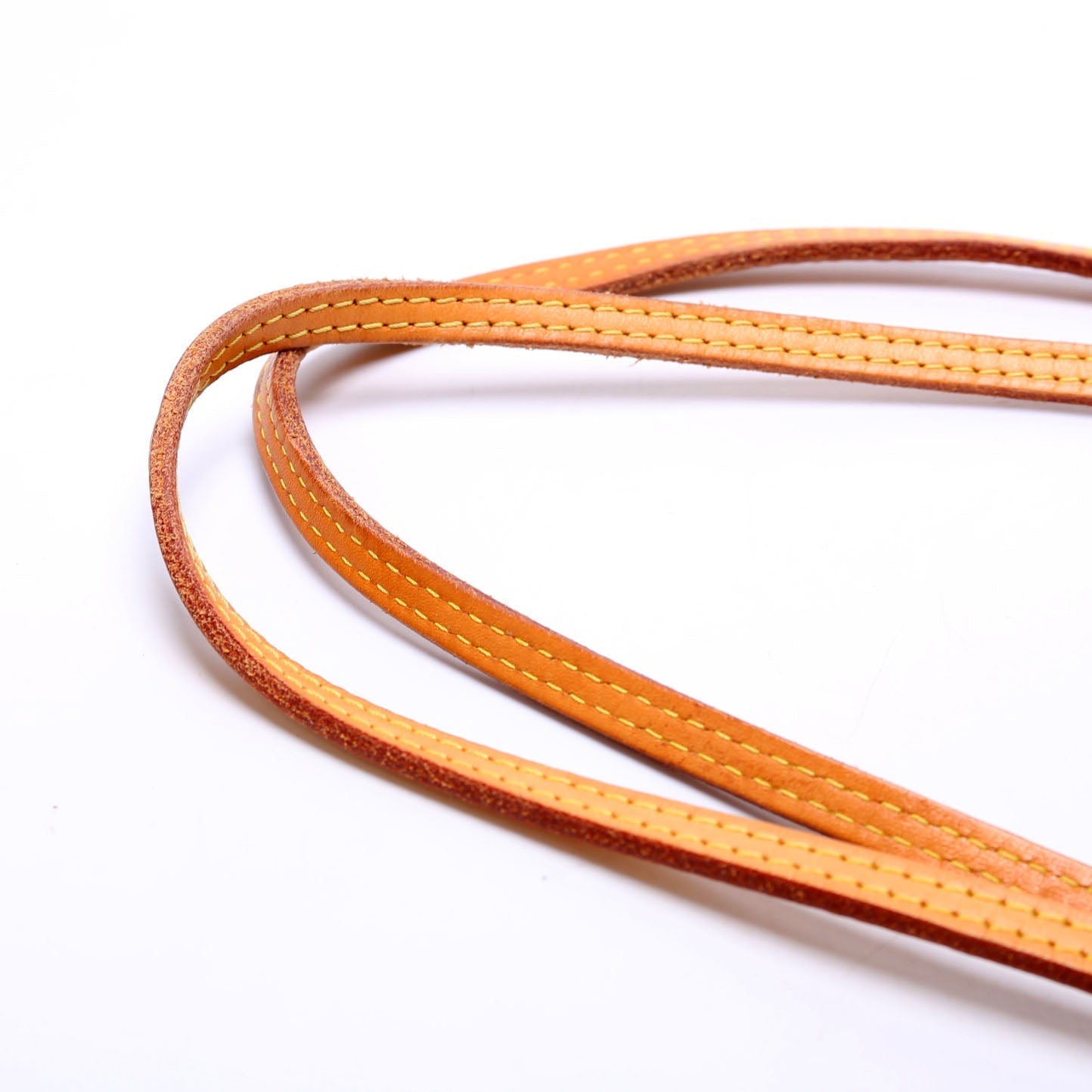 Exterior: The exterior coated canvas is free of any rips or cracks. The leather trim shows minor wear and discoloration.