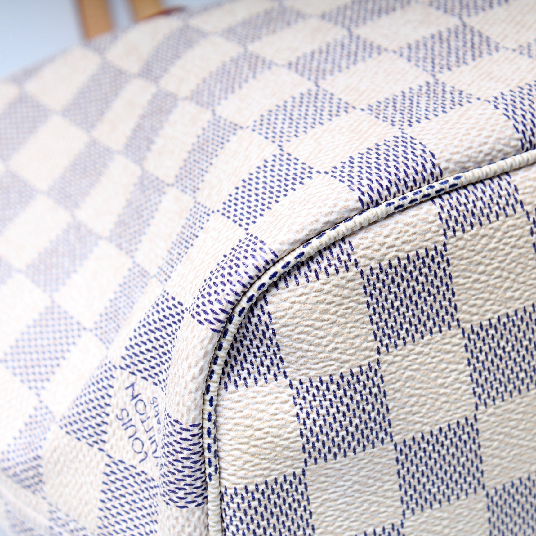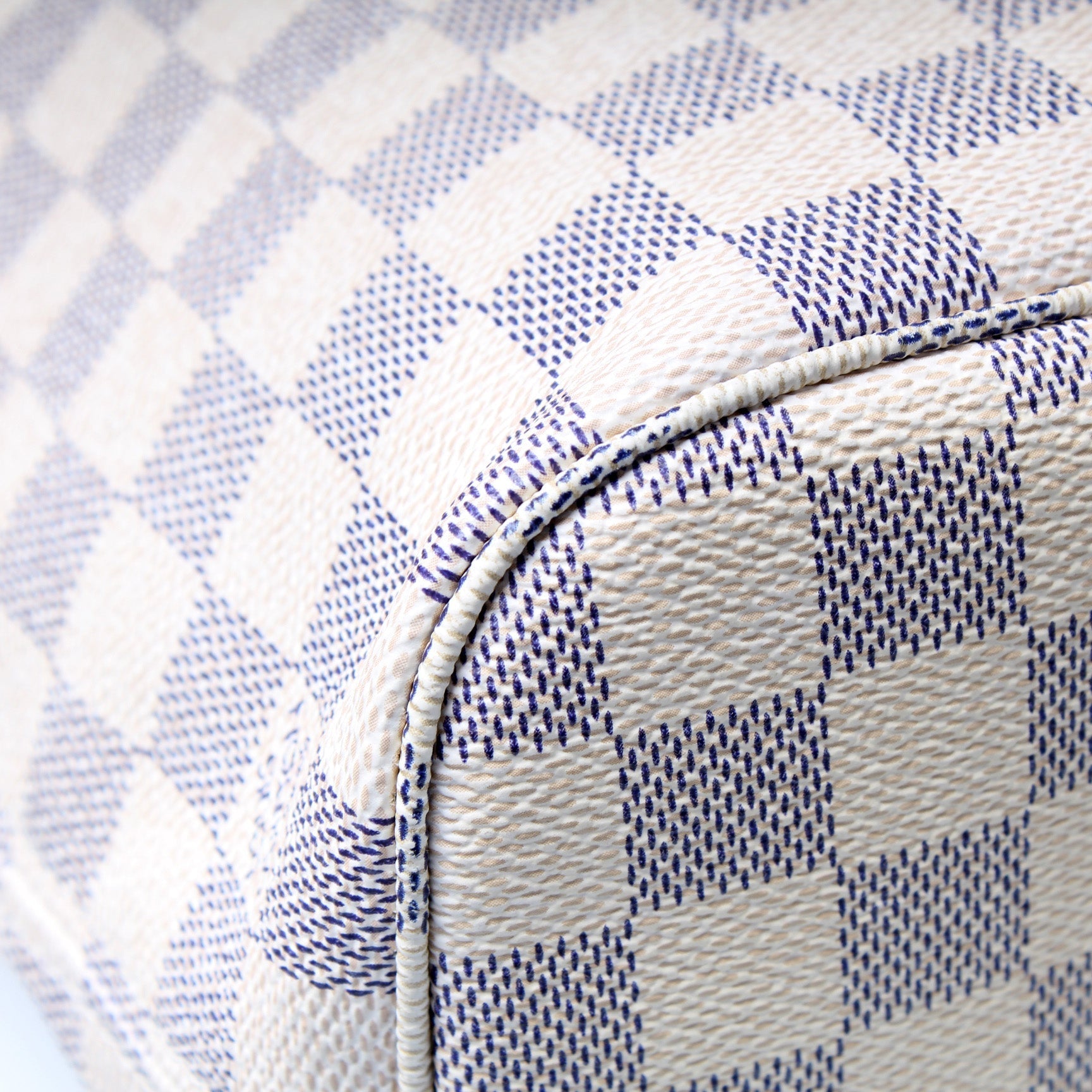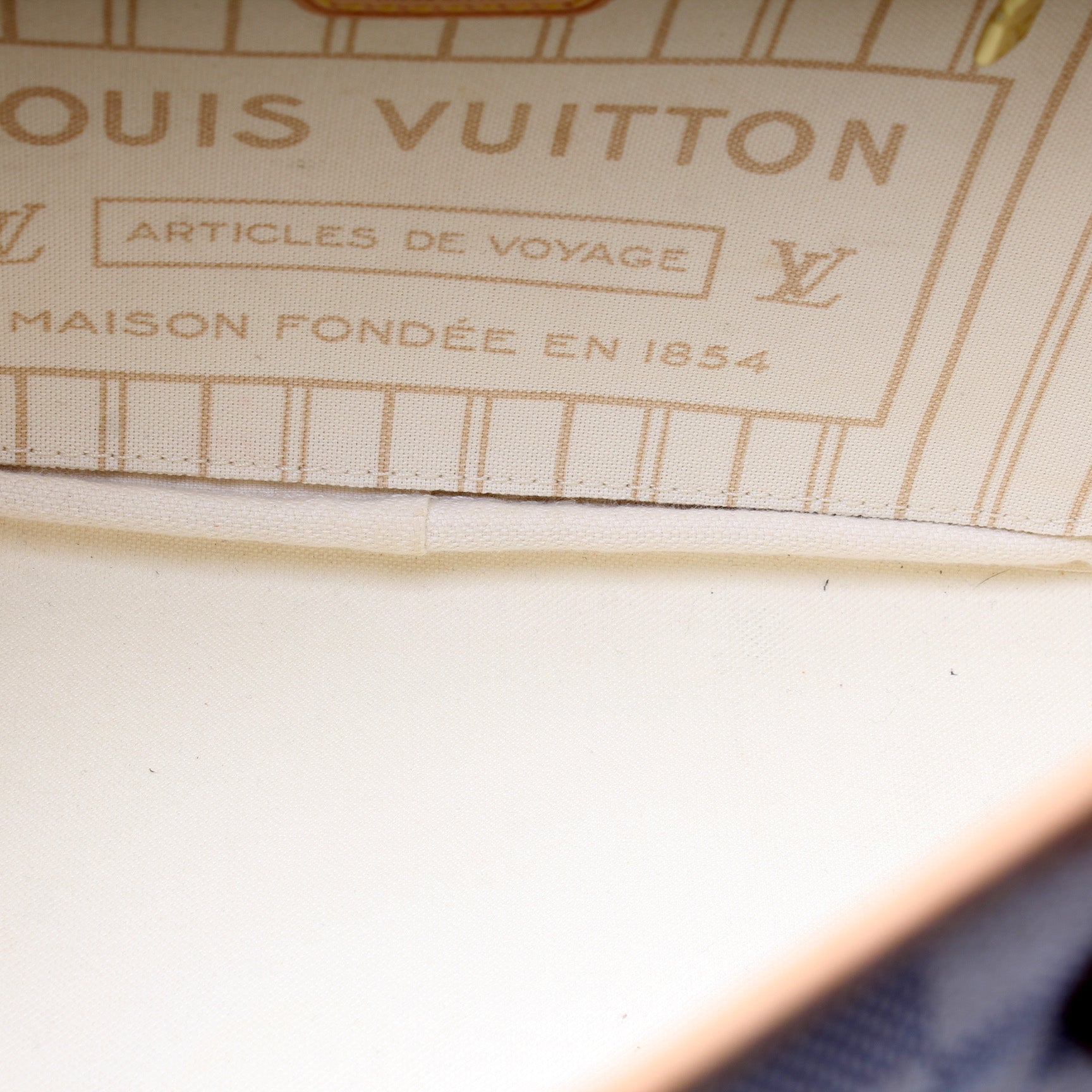 This Louis Vuitton Neverfull PM is guaranteed 100% . The exterior is in the classic Louis Vuitton Damier Azur coated canvas.