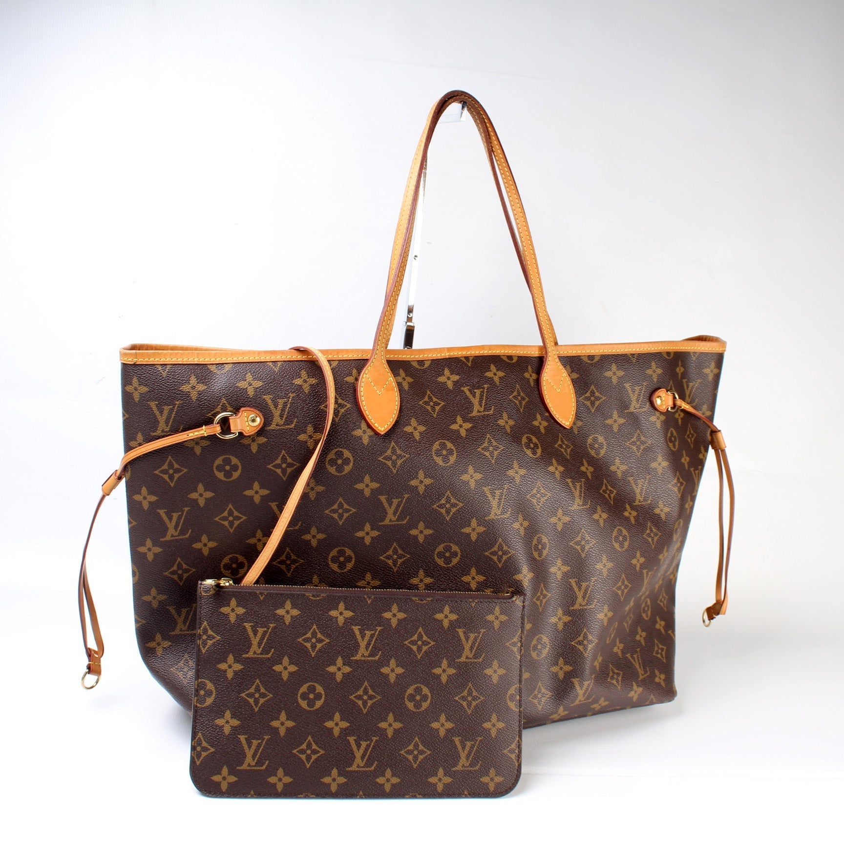 This Louis Vuitton Neverfull GM With Wallet is guaranteed 100% . The exterior is in the classic Louis Vuitton Monogram coated canvas.