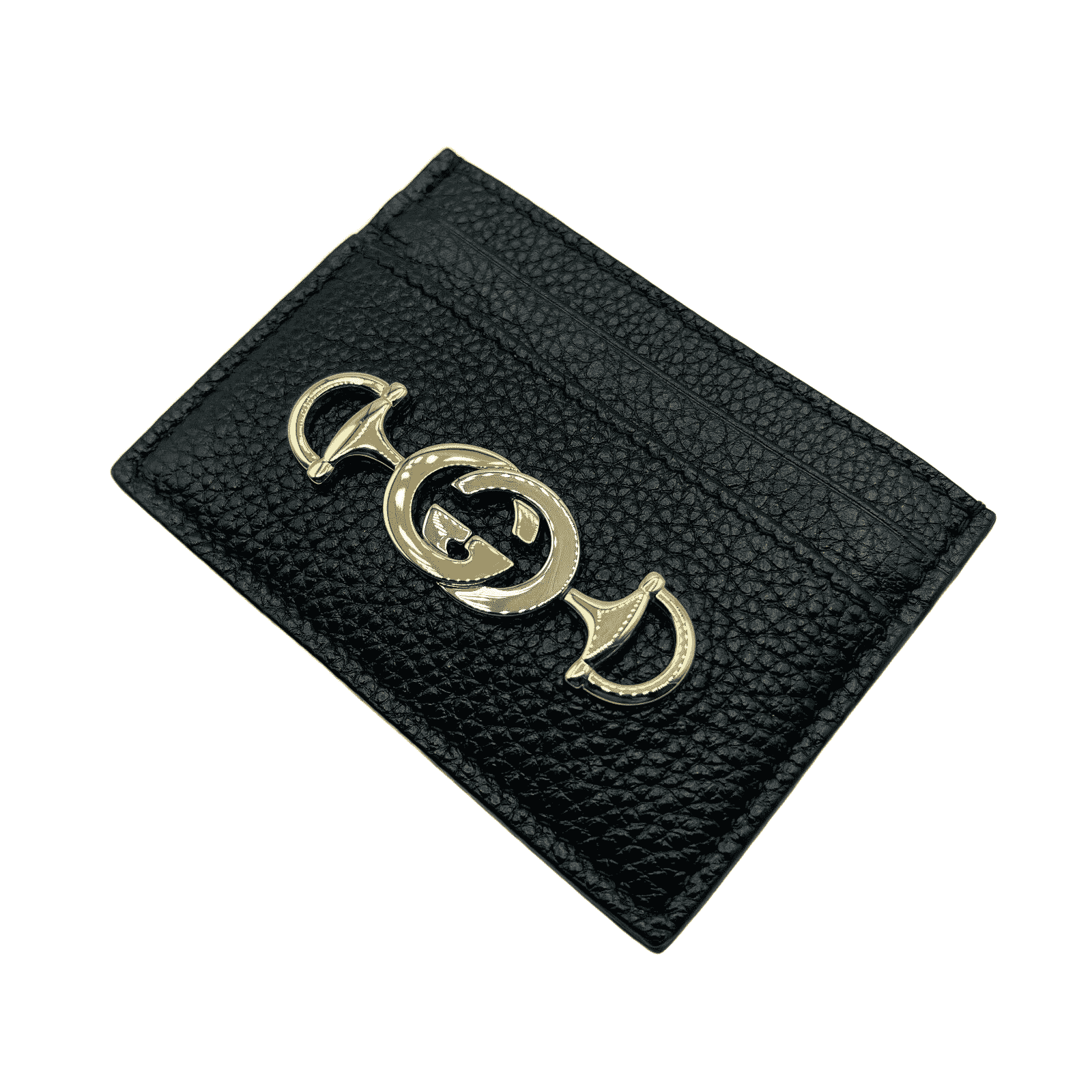 New Women's Gucci Zumi Black Leather Card Holder Wallet Metal GG Logo w/Box