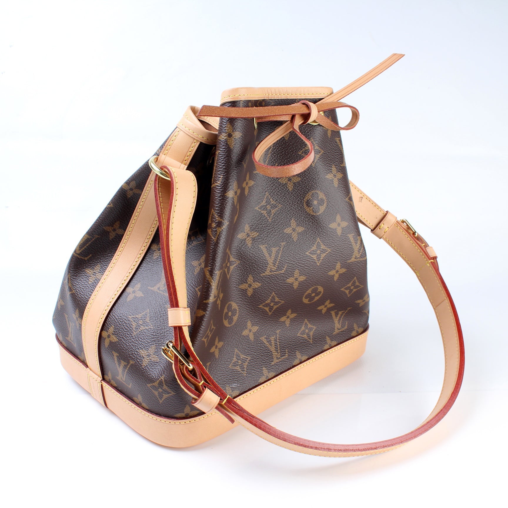 This Louis Vuitton Noe Petit NM is guaranteed 100% . The exterior is in the classic Louis Vuitton Monogram coated canvas.