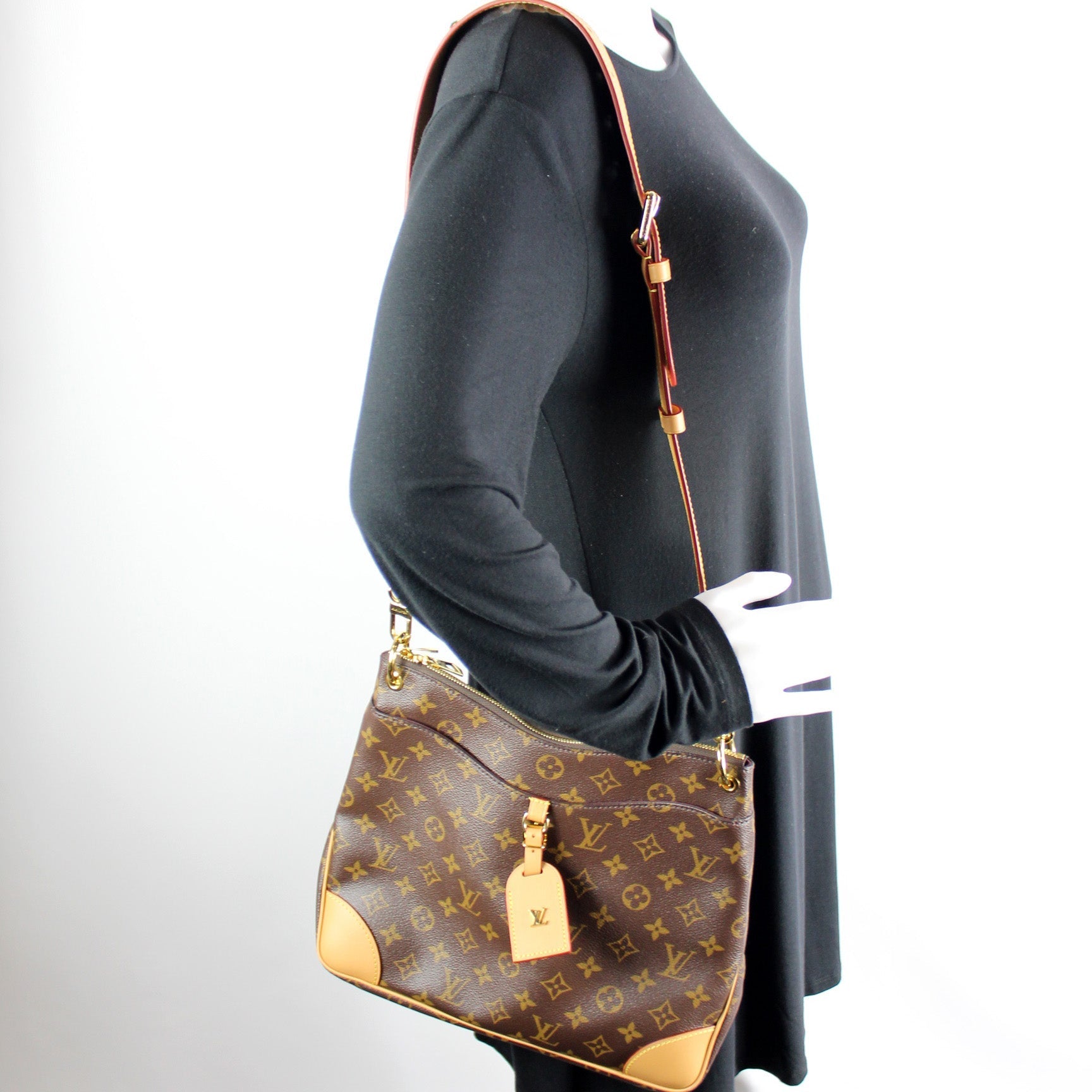 This Louis Vuitton Odeon MM NM is guaranteed 100% . The exterior is in the classic Monogram coated canvas.