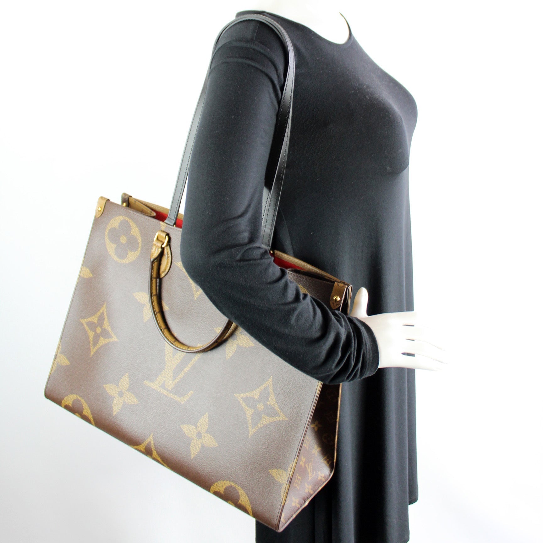 This Louis Vuitton Onthego GM is guaranteed 100% . The exterior is in the classic Louis Vuitton Giant Monogram coated canvas.
