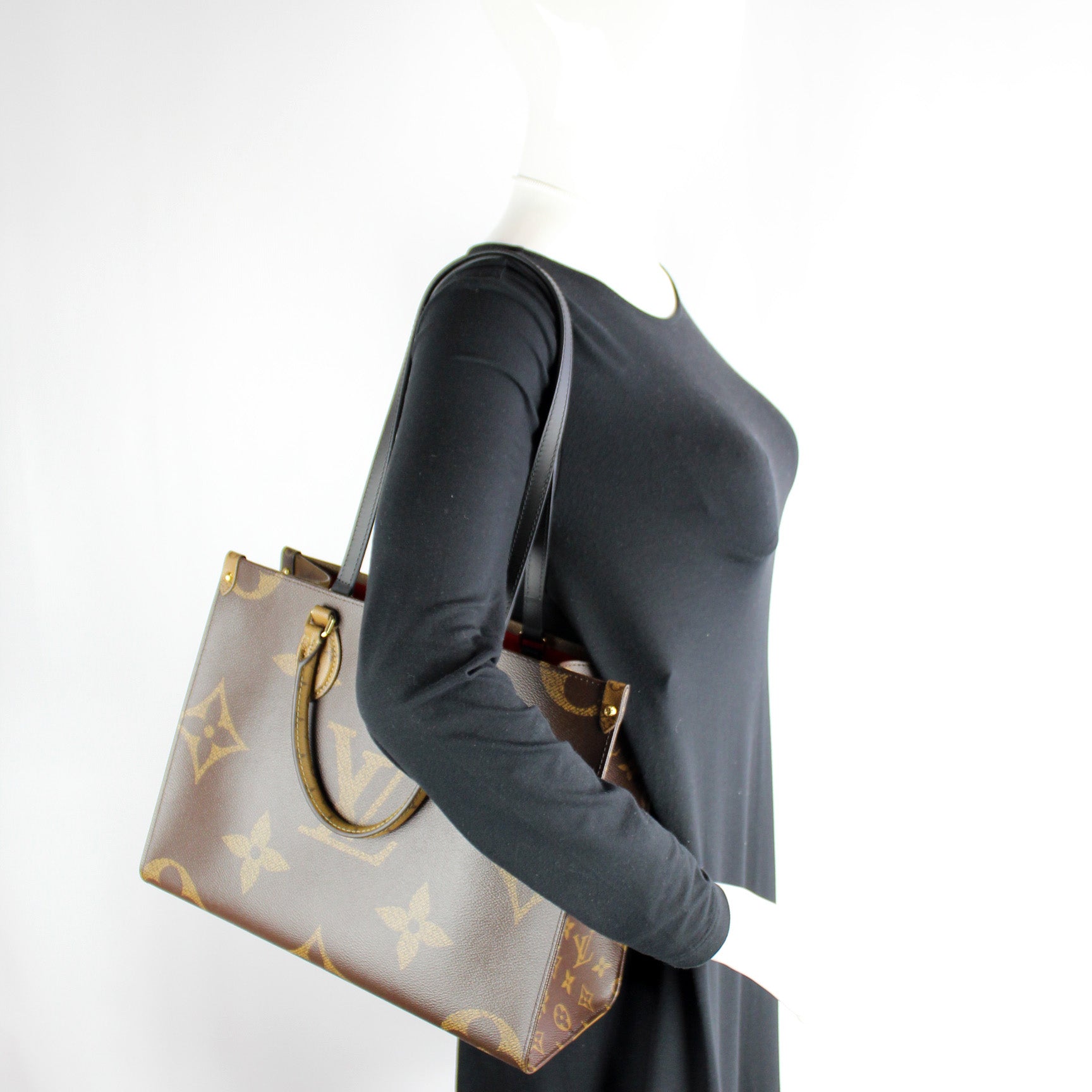 This Louis Vuitton ONTHEGO MM is guaranteed 100% . The exterior is in the classic Louis Vuitton Giant Monogram coated canvas.