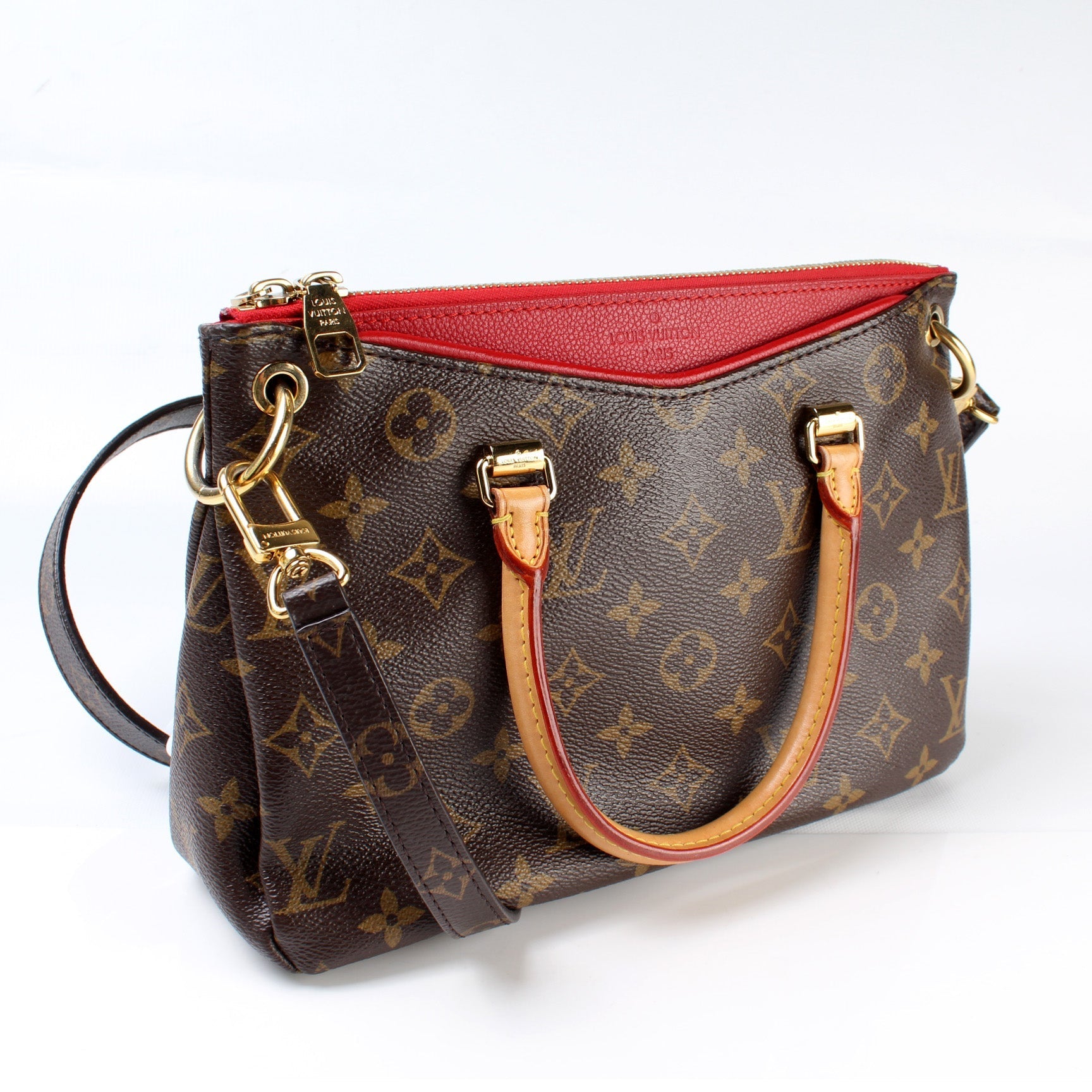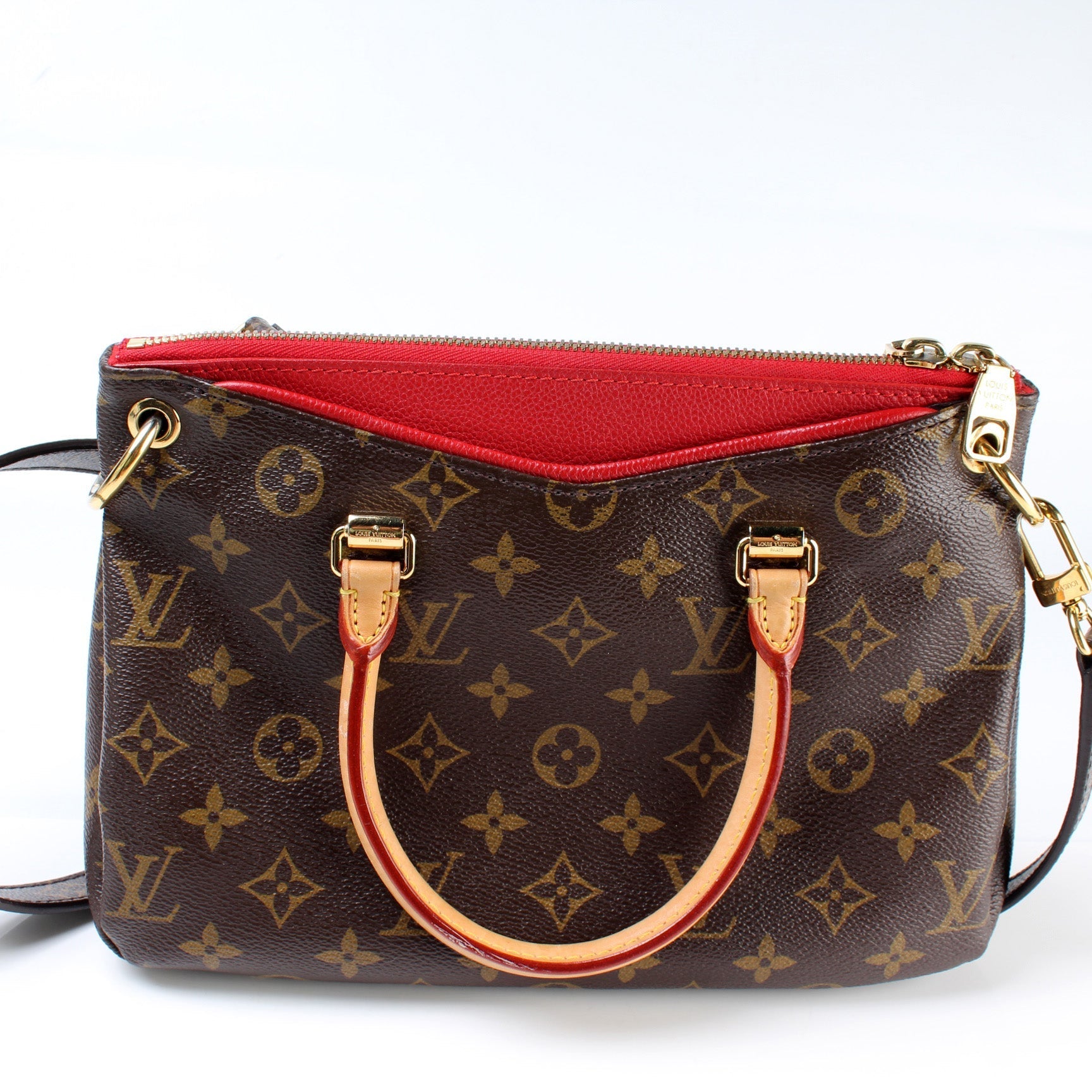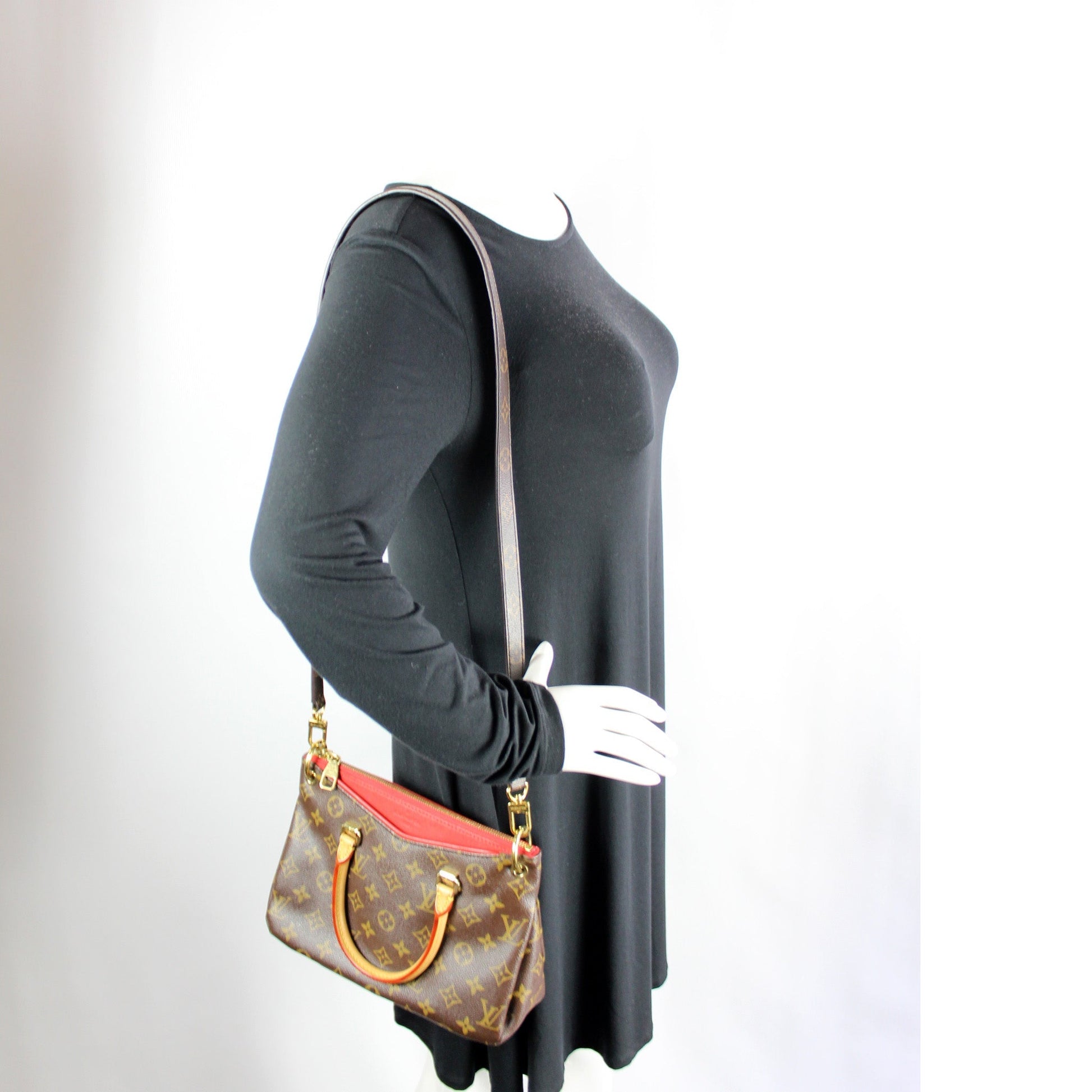 This Louis Vuitton Pallas BB Monogram is guaranteed 100% . The exterior is in the classic Louis Vuitton Monogram coated canvas.