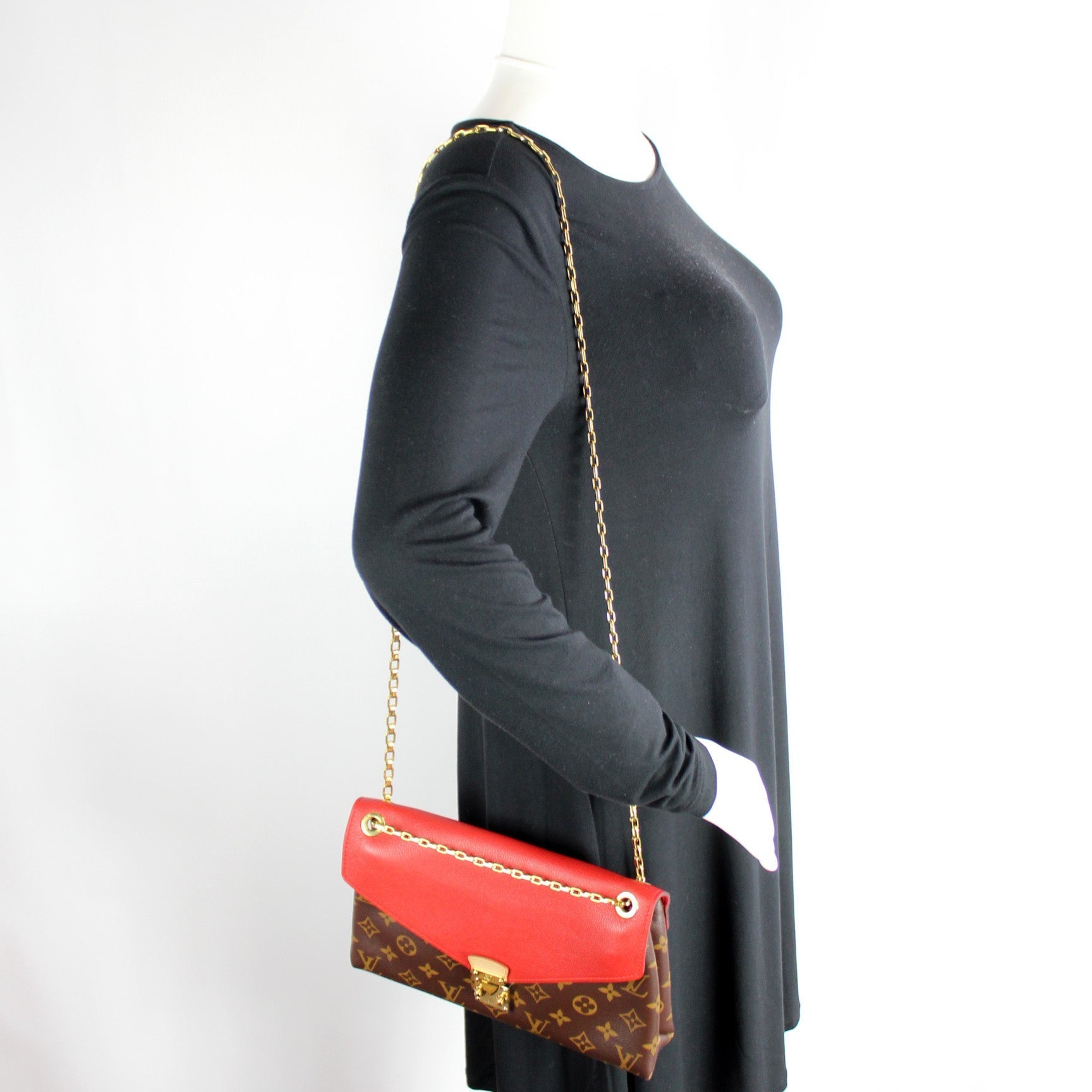 This Louis Vuitton Pallas Chain is guaranteed 100% . The exterior is in the classic Louis Vuitton Monogram coated canvas.