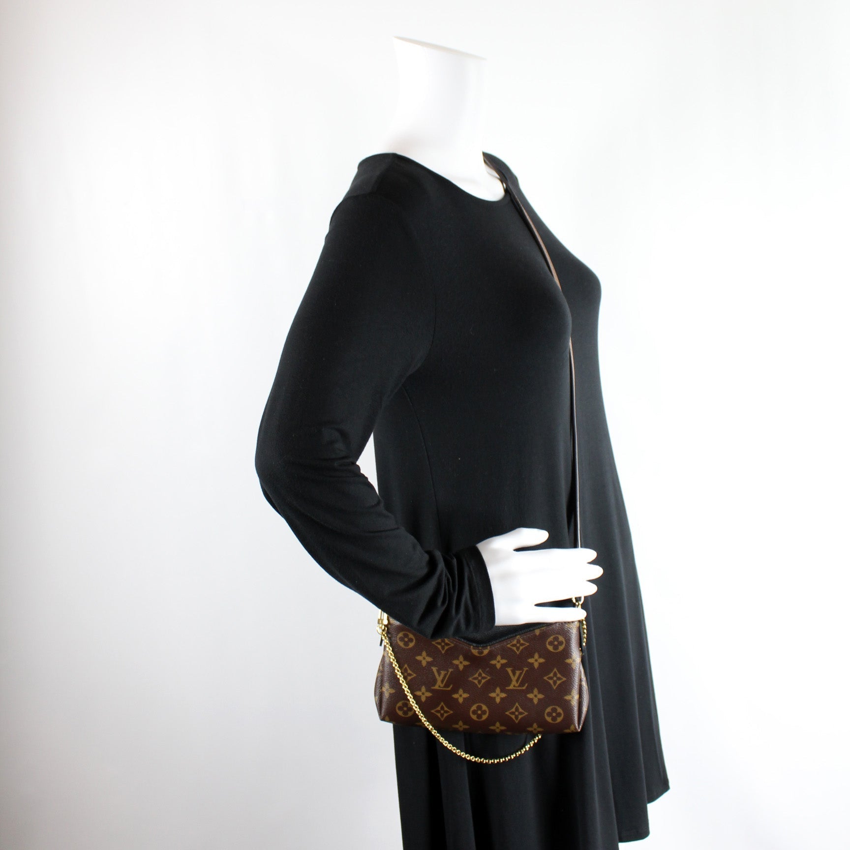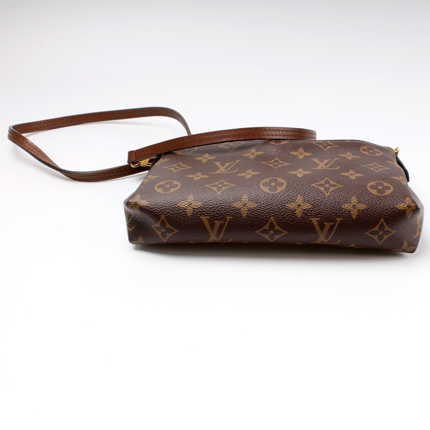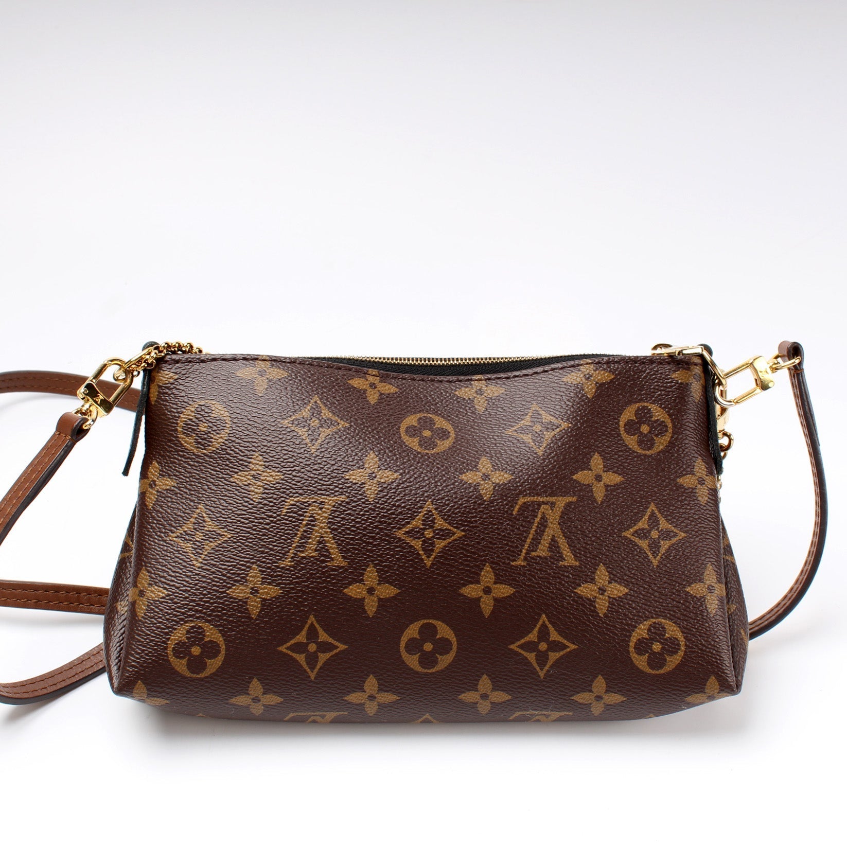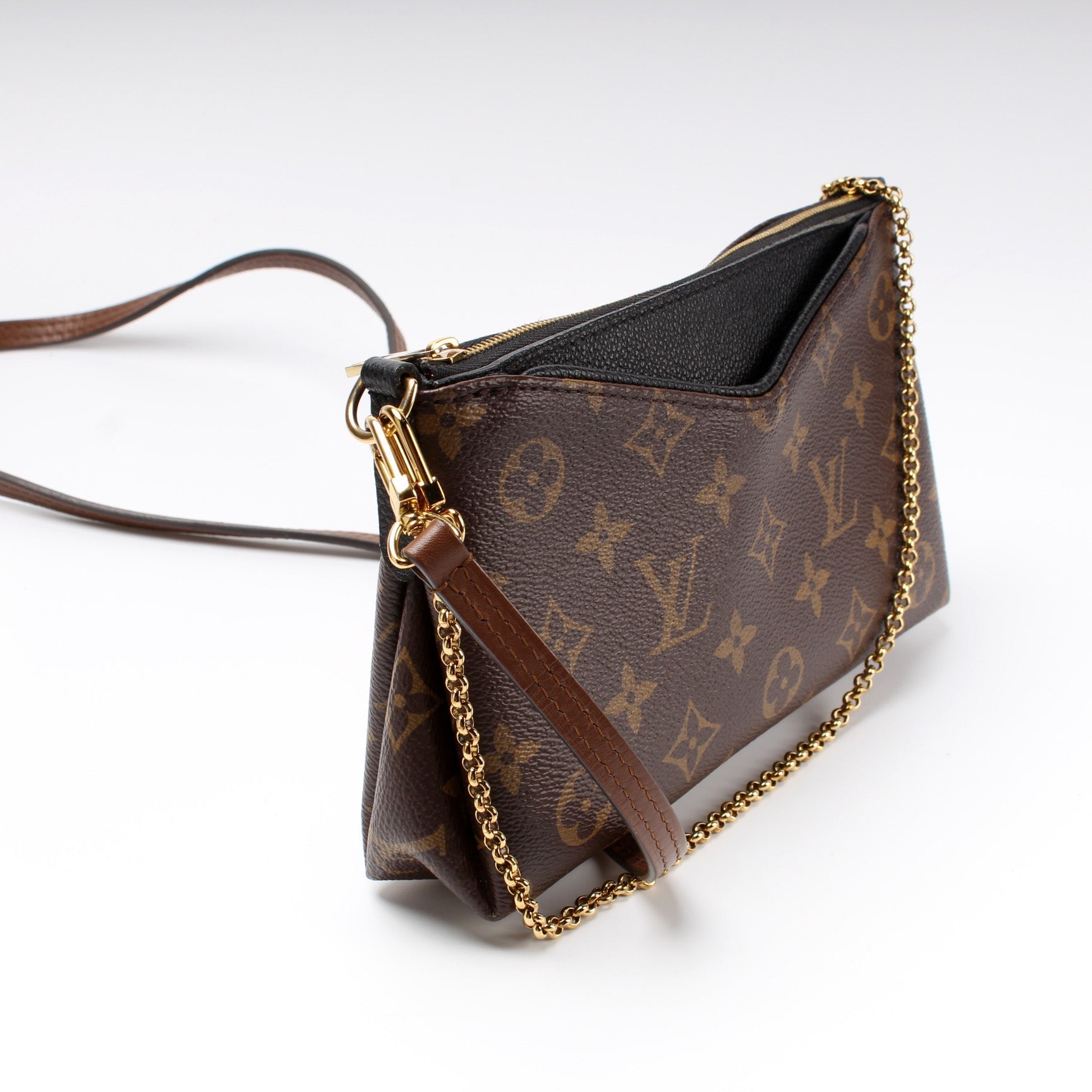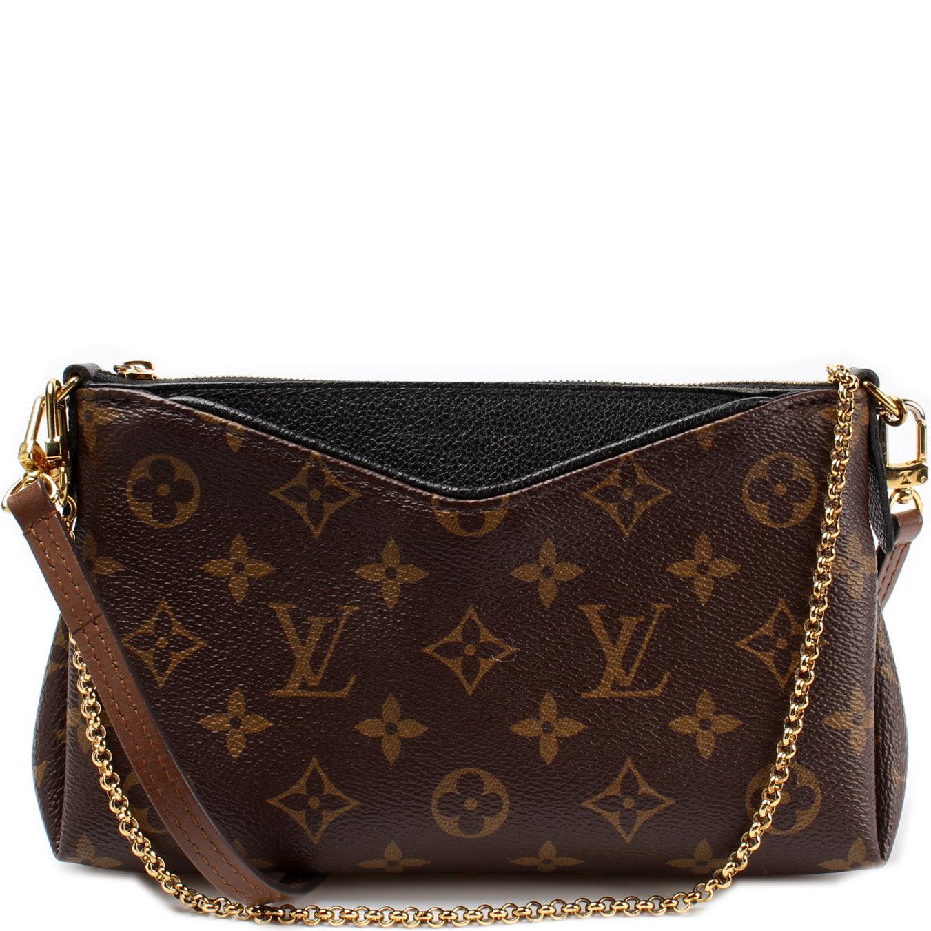 This Louis Vuitton Pallas Clutch is guaranteed 100% . The exterior is in the classic Louis Vuitton Monogram coated canvas.