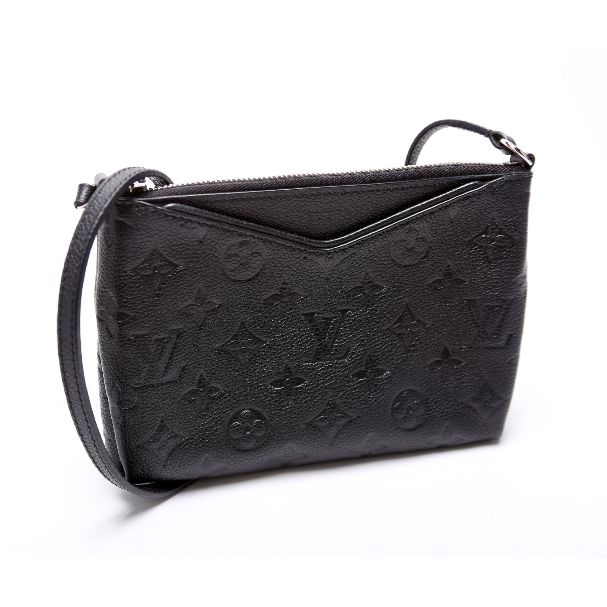 This Louis Vuitton Pallas Clutch Uniformes is guaranteed 100% . The exterior is in the classic Louis Vuitton Empreinte leather.